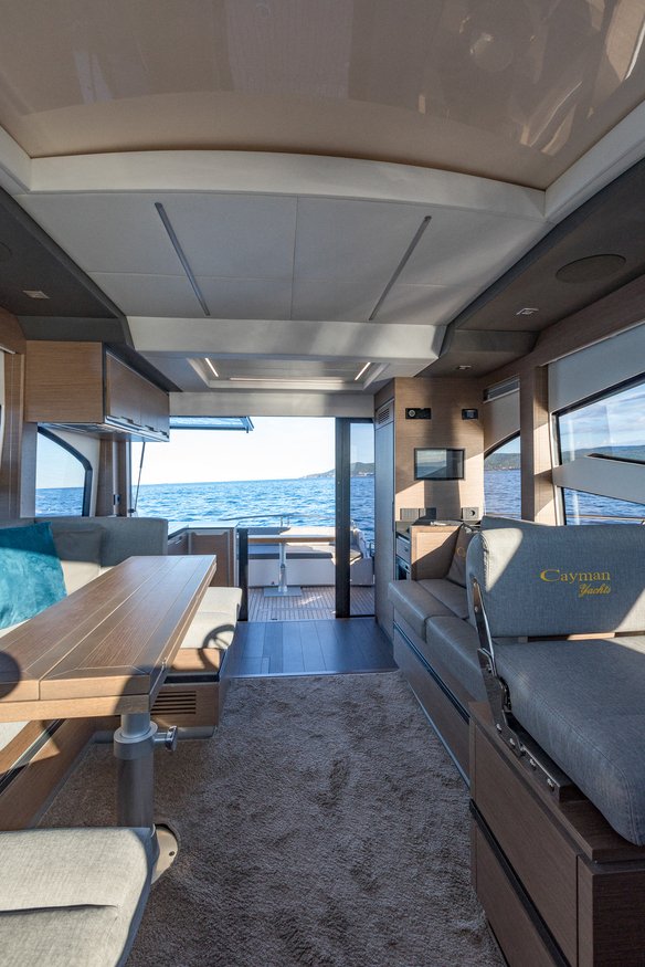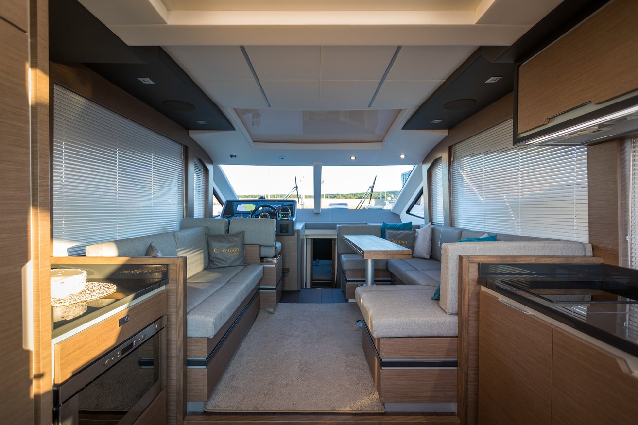 Inside, the Cayman S520 boasts an exquisite interior designed by renowned Italian artisans, featuring luxurious accommodations for up to 8 guests. The spacious layout includes two elegantly appointed cabins, ensuring a comfortable stay for all aboard. The open-plan living area is perfect for entertaining, while the state-of-the-art galley provides all the amenities needed for gourmet dining experiences.