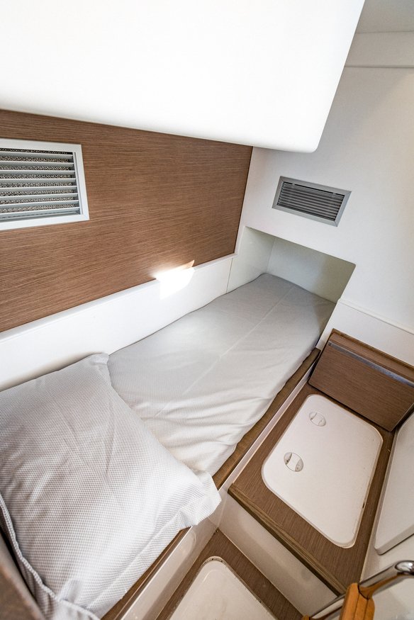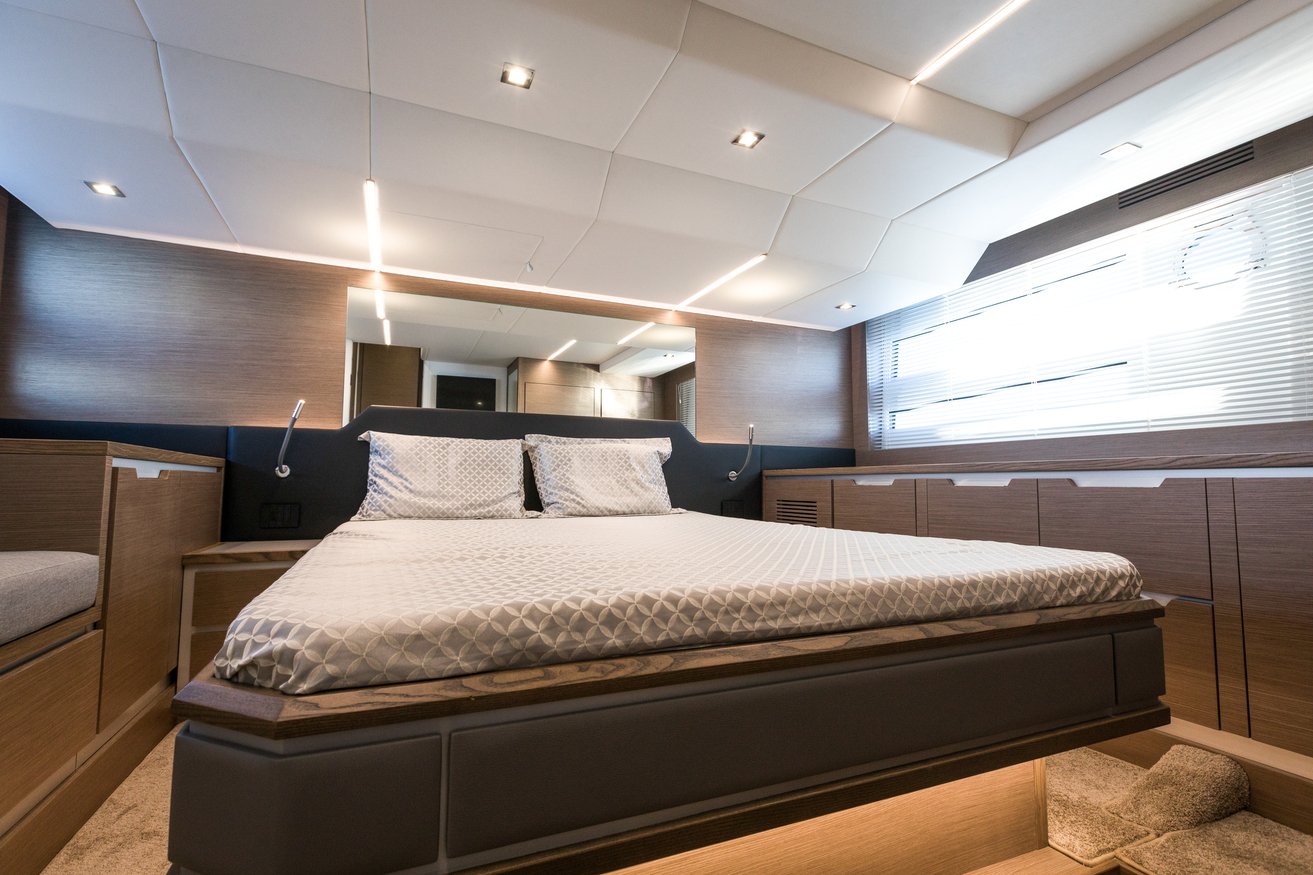 The S520 is powered by robust inboard engines, offering a cruising speed of around 25 knots and a top speed of 30 knots, providing ample power for both leisurely cruises and exhilarating journeys. With a fuel capacity of 2000 liters, this yacht has an impressive range, allowing you to explore distant shores with confidence.
