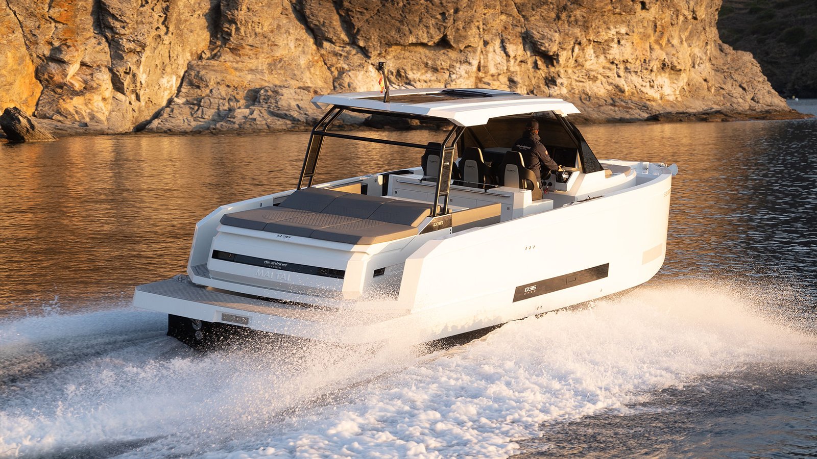 The de Antonio D36 embodies the perfect blend of modern design and exceptional performance, making it a standout choice for yachting enthusiasts. Crafted with precision, this open yacht features a sleek and cutting-edge design that is both functional and visually stunning. Its open deck layout offers ample space for relaxation and entertainment, accommodating up to 12 guests comfortably during day trips. The D36’s interior is tastefully appointed, providing luxury and comfort with high-quality finishes and intelligent use of space. Under the hood, the yacht is powered by twin inboard engines, delivering impressive performance with a cruising speed of 25 knots and a top speed of 40 knots. This ensures swift and smooth sailing, whether you are exploring the coastline or cruising across open waters. With a length of 11 meters, the D36 offers a spacious beam of 3.6 meters, enhancing stability and providing a comfortable ride even in choppy conditions. Designed with the customer in mind, the D36 includes a range of customizable options to fit personal preferences, from engine configurations to interior finishes. It also boasts a robust GRP hull and a planning hull configuration, ensuring durability and efficiency. The de Antonio D36 is not just a yacht; it’s a statement of style and sophistication, epitomizing the best of modern maritime architecture.