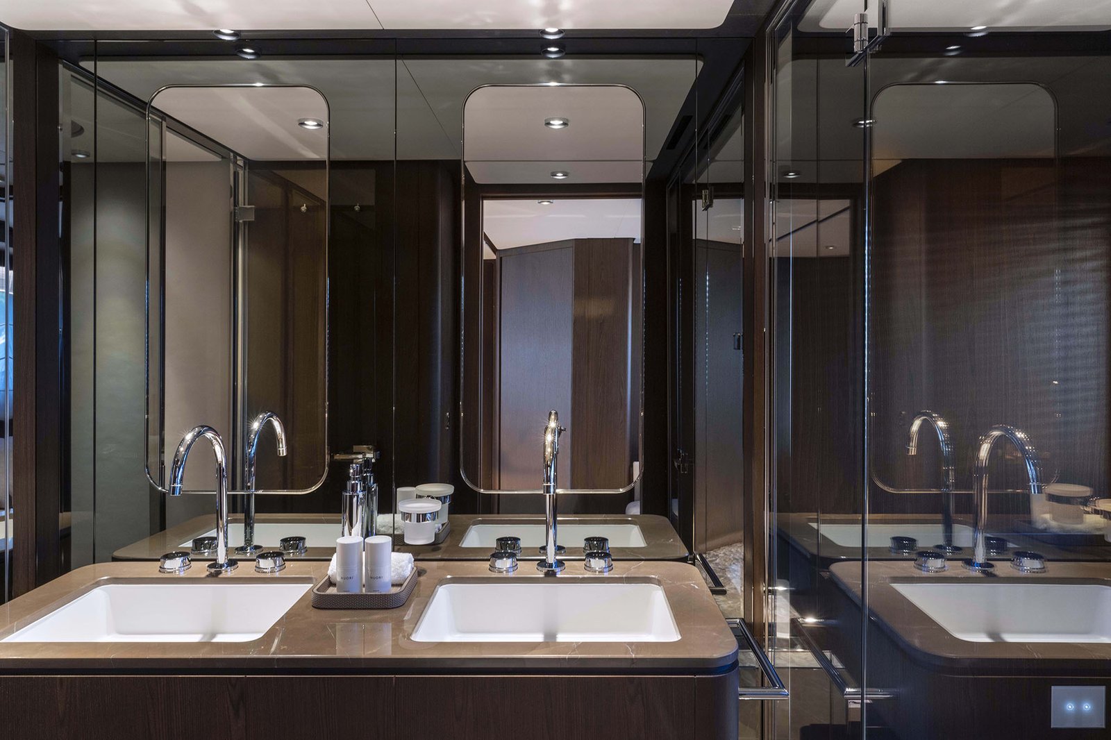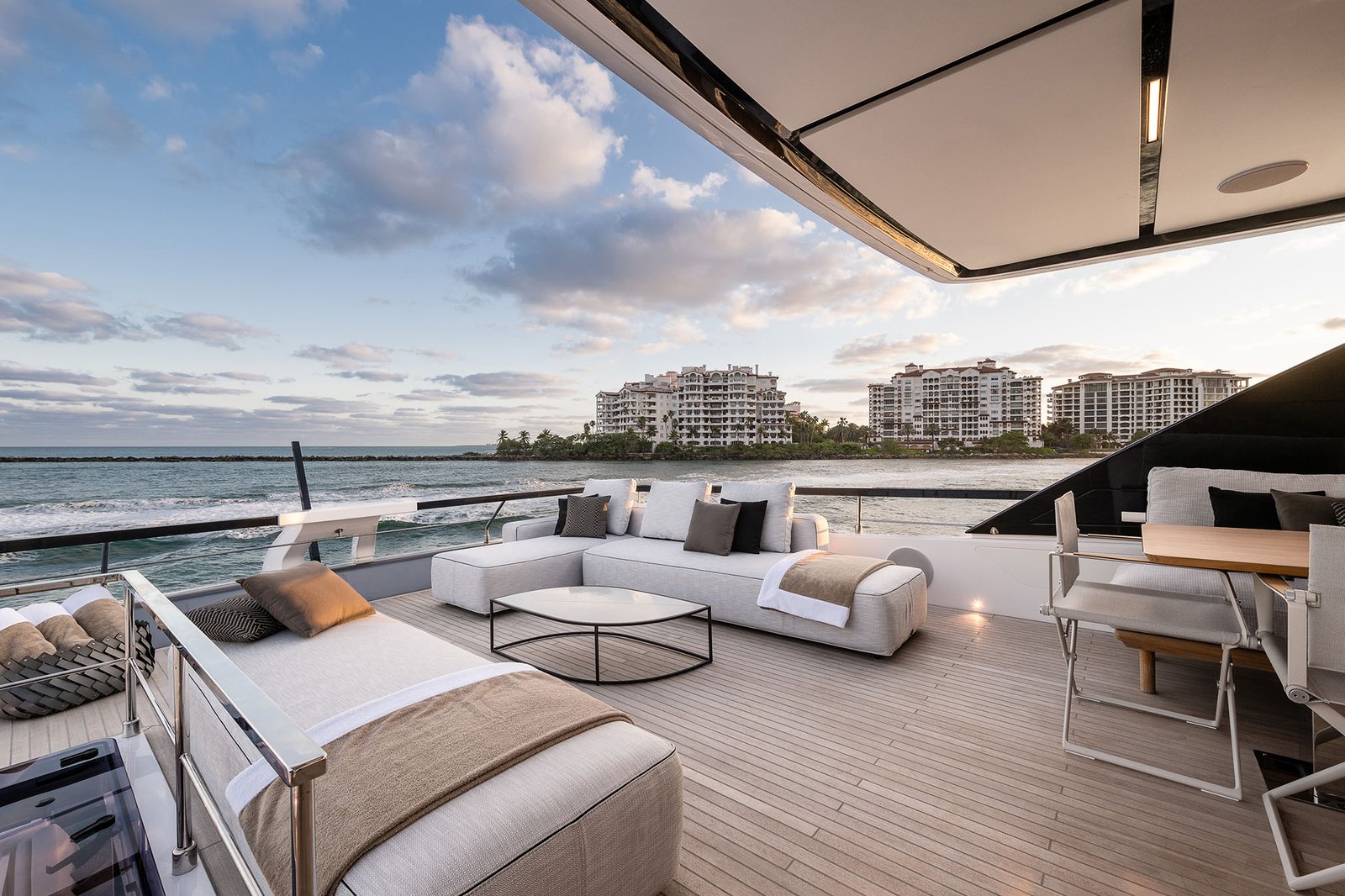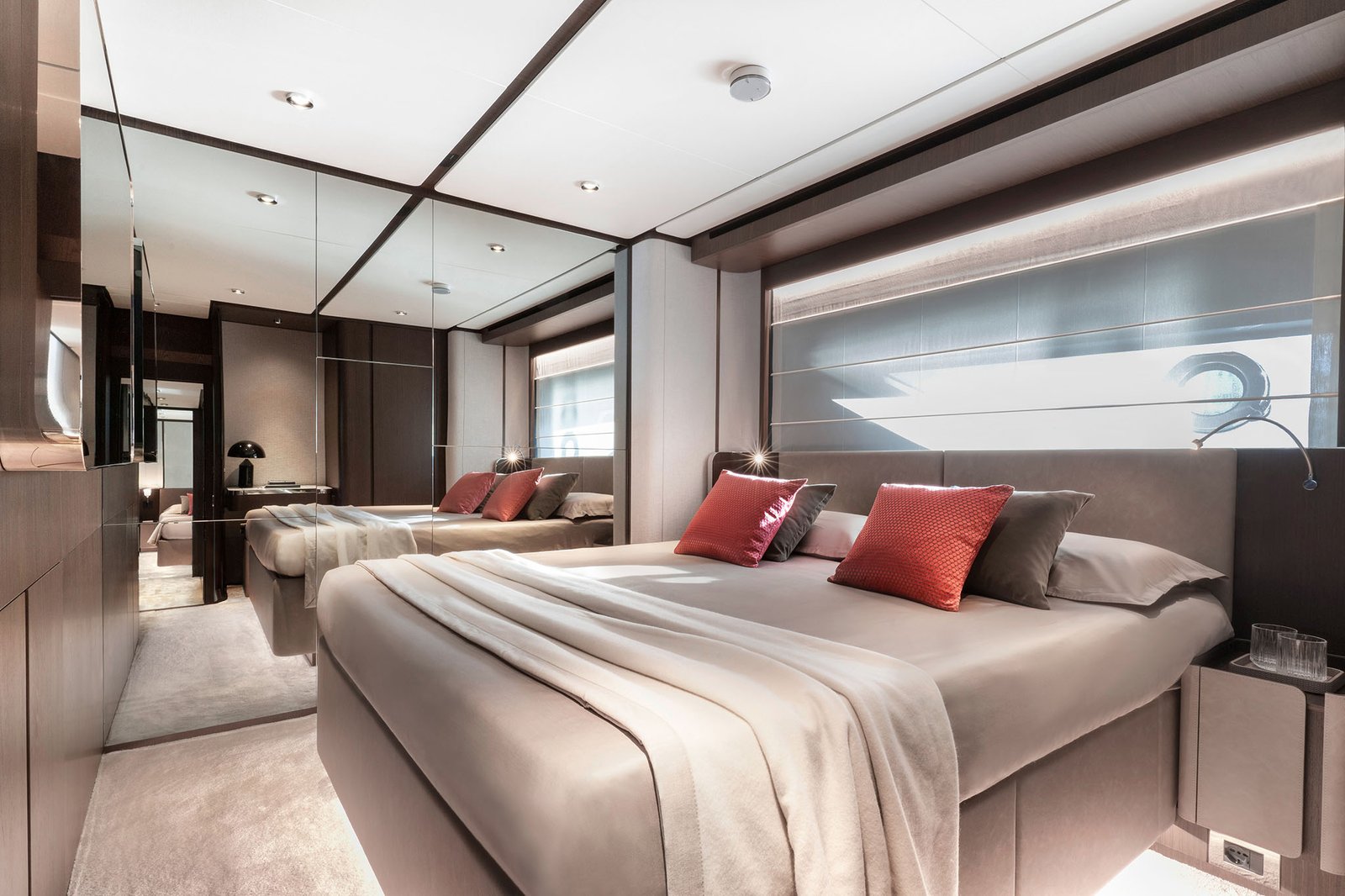 The Ferretti Yachts 860 is a masterpiece of Italian engineering and design, crafted to deliver an elite yachting experience. This remarkable yacht measures approximately 26.95 meters in length, making it a commanding presence on the water. Designed for both comfort and performance, the 860 boasts a sleek, modern exterior crafted by the renowned designer Filippo Salvetti, while the interior is designed by Ideaeitalia, offering a sumptuous living space that radiates elegance and sophistication. The yacht’s naval architecture is developed by the in-house Ferretti Group Engineering Department, ensuring a seamless integration of style and functionality. Powered by twin MAN V12 engines, the Ferretti Yachts 860 delivers a cruising speed of 27 knots and can reach a maximum speed of 32 knots, making it an ideal choice for those who appreciate both speed and luxury. The planning hull design ensures smooth and efficient navigation across the waves, while the GRP construction provides a sturdy and reliable structure. With a beam of 6.22 meters, the yacht offers spacious interiors and ample outdoor areas for relaxation and entertainment. The Ferretti Yachts 860 can accommodate up to 8 guests in 4 well-appointed cabins, each equipped with luxurious amenities to ensure a comfortable stay. The crew quarters are designed to house 3 crew members, ensuring top-notch service and a seamless yachting experience. With a fuel capacity of 7,400 liters, the yacht offers a substantial cruising range, making it perfect for extended voyages. This luxurious vessel is a testament to Ferretti Yachts’ commitment to excellence and innovation in the world of luxury yachting.