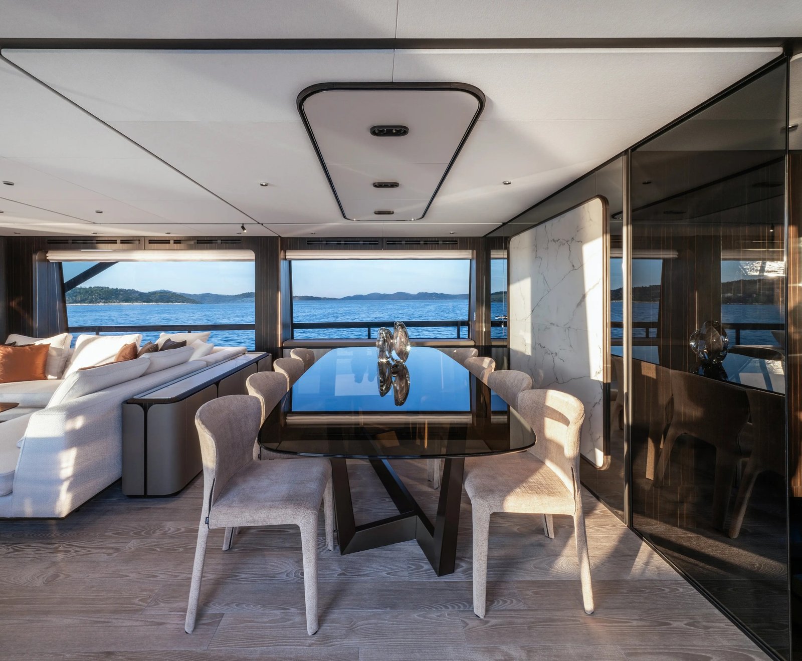 The Ferretti Yachts Infynito 80 represents a pinnacle of Italian craftsmanship, blending cutting-edge technology with timeless elegance. This 24-meter yacht is designed to offer exceptional comfort and performance on the water, with a sleek exterior that turns heads and an interior that pampers. The hull is crafted from high-quality GRP, ensuring a sturdy yet lightweight structure that enhances speed and efficiency. The planning hull configuration allows for smooth cruising even in challenging conditions. Powered by a pair of advanced inboard engines, the Infynito 80 reaches a cruising speed of 25 knots and can achieve a maximum speed of around 30 knots, offering a thrilling yet stable ride. The interior, designed by Ferretti’s in-house team, emphasizes luxury and functionality, featuring three spacious cabins that can accommodate up to eight guests comfortably. The main deck provides a seamless transition from the salon to the expansive aft deck, perfect for entertaining or enjoying the sea breezes. The flybridge offers an additional outdoor space for relaxation and panoramic views. With a fuel capacity of 5,000 liters, this yacht has an impressive range, making it suitable for extended voyages. The Infynito 80 is a testament to Ferretti’s commitment to innovation and excellence, offering a yachting experience that is both luxurious and exhilarating.