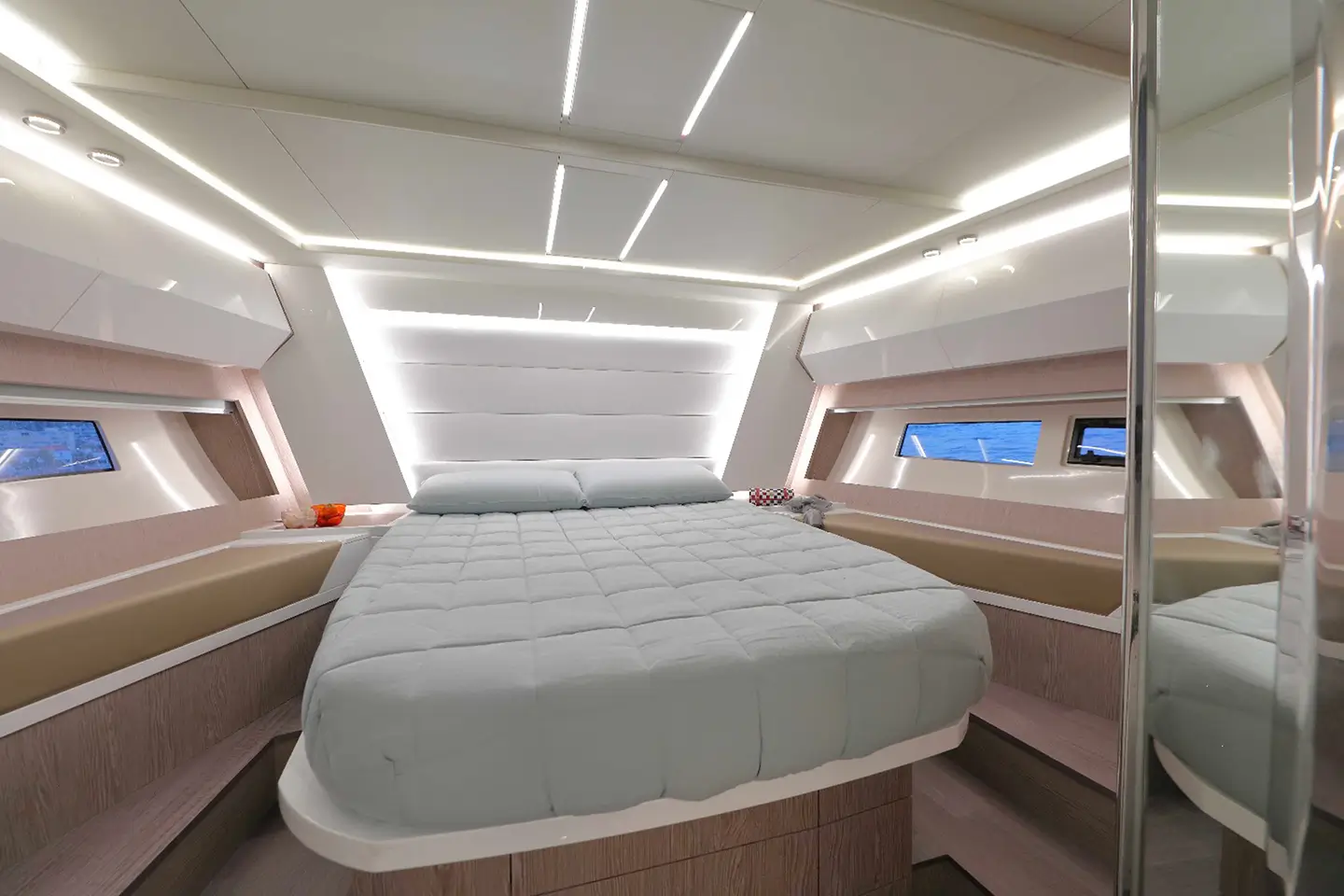 The Fiart Classic 52 is a testament to Italian craftsmanship and nautical expertise, delivering a yacht that merges luxury with high-performance capabilities. Known for its sleek and timeless design, the exterior of the Classic 52 embodies a sense of elegance that is sure to turn heads in any marina. The yacht is constructed using high-quality GRP materials, ensuring durability and a lightweight structure that enhances speed and fuel efficiency. The planning hull configuration allows for smooth navigation and a stable ride, even in challenging sea conditions. Powered by robust inboard engines, the Fiart Classic 52 achieves impressive cruising and maximum speeds, providing thrilling yet safe journeys across the open water. The spacious deck layout is designed for relaxation and socializing, featuring an expansive sunbathing area and a well-appointed cockpit. Below deck, the interior is crafted with premium materials and finishes, offering a luxurious retreat with comfortable accommodations for up to 8 guests in 2 well-appointed cabins. The intelligent use of space provides ample storage and living areas, making extended stays onboard a pleasure. The Fiart Classic 52 is engineered by Fiart’s renowned in-house team, ensuring that every detail meets the highest standards of quality and performance. Whether you’re exploring coastal waters or embarking on a longer voyage, the Fiart Classic 52 promises an unparalleled yachting experience.