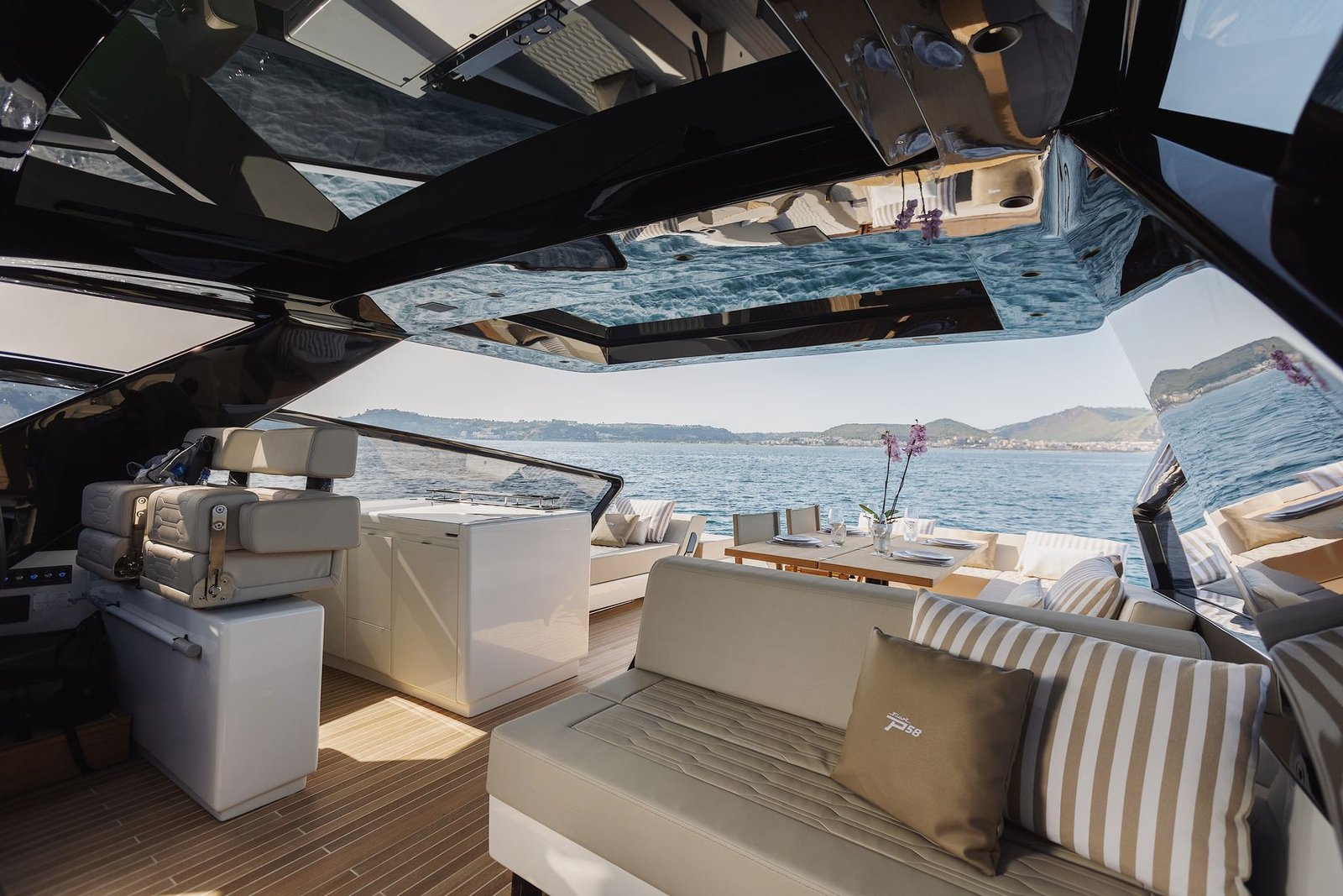 The Fiart P58 is a masterpiece of Italian nautical engineering, designed for those who desire the perfect blend of luxury and performance on the open sea. This stunning 58-foot yacht represents the epitome of elegance and innovation, featuring a sleek design that is both sophisticated and sporty. With a length of 18 meters, the P58 offers ample space for relaxation and entertainment, making it ideal for both short cruises and extended voyages. Constructed with a GRP hull, it ensures a smooth and efficient ride, powered by robust inboard engines that deliver a thrilling top speed of around 35 knots. The P58’s planning hull configuration enhances its performance, allowing it to glide effortlessly through the water with stability and precision. Inside, the P58 boasts a meticulously crafted interior, with accommodations for up to eight guests in two luxurious cabins, ensuring a comfortable stay for everyone on board. The yacht’s spacious salon and open deck areas provide the perfect setting for socializing and enjoying the breathtaking views of the sea. Designed by Fiart’s in-house team, every detail has been carefully considered to maximize comfort and functionality, while maintaining the yacht’s striking aesthetic appeal. With a fuel capacity of 2,500 liters, the P58 offers an impressive range, making it an excellent choice for long-distance cruising. Whether you’re cruising along the Amalfi Coast or exploring the islands of the Mediterranean, the Fiart P58 promises an unforgettable yachting experience.