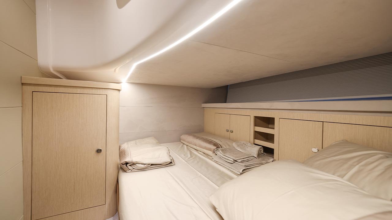The Focus Power 44 is a testament to modern yacht engineering, marrying striking design with remarkable performance capabilities. Crafted in Italy, this yacht embodies the essence of luxury combined with superior functionality, making it a perfect choice for those who desire both style and substance. Its sleek monohull design, constructed from high-quality GRP, ensures not only durability but also a streamlined profile that cuts through water with ease. The planning hull configuration guarantees a smooth and efficient ride, whether you’re navigating coastal waters or venturing further afield. Powered by inboard engines, the Focus Power 44 delivers an impressive top speed, while maintaining a comfortable cruising speed for extended voyages. With a length of 13 meters, it offers a spacious deck and interior layout, accommodating up to 8 guests for day trips and providing sleeping quarters for up to 4 guests across 2 well-appointed cabins. The yacht’s interior, designed with meticulous attention to detail, provides a perfect blend of comfort and elegance, ensuring a cozy retreat on the water. The exterior spaces are equally inviting, with ample room for relaxation and socializing. The Focus Power 44 is ideal for those who appreciate the finer things in life, with every element crafted to enhance your maritime experience. From leisurely cruises to adventurous explorations, this yacht stands ready to deliver unparalleled enjoyment on the open seas.