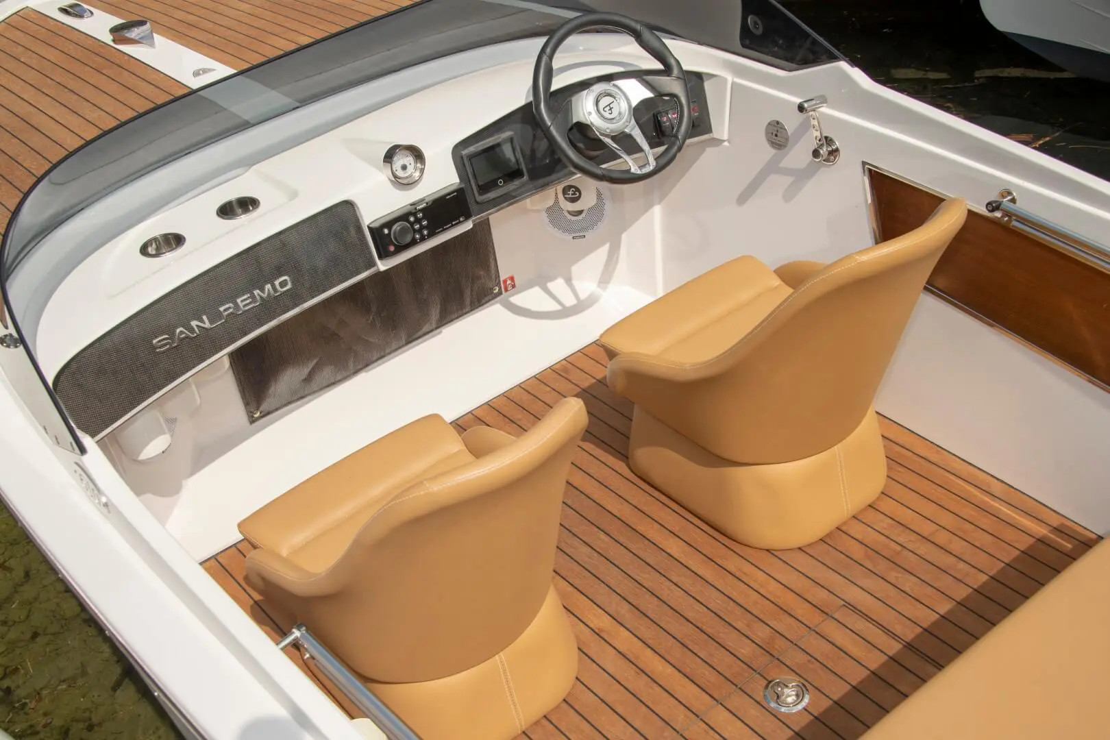 The Frauscher 610 San Remo is a stunning day cruiser that offers both style and substance, making it an excellent choice for those who appreciate quality craftsmanship and timeless design. This vessel measures 6.1 meters in length, making it compact yet spacious enough to comfortably accommodate up to eight guests. Its sleek and modern design is characterized by clean lines and a sophisticated finish, making it an eye-catching choice on any waterway. Built with a GRP hull, the 610 San Remo provides excellent durability and a smooth ride, even in choppier waters. The planning hull configuration ensures efficient performance, allowing for thrilling speeds and responsive handling. Under the hood, this model is powered by a robust inboard engine, delivering a cruising speed of 25 knots and a maximum speed of 35 knots, making it perfect for quick getaways or leisurely cruises. The open deck layout is designed for socializing and relaxation, with ample seating and sunbathing areas. The interior, while minimalistic, offers practical storage solutions and a small cabin for changing or storing essentials. Designed by the in-house team at Frauscher, the 610 San Remo is a testament to the brand’s commitment to quality engineering and innovative design. Whether you’re entertaining guests or enjoying a solo escape, this boat promises a memorable experience on the water. The new price for the Frauscher 610 San Remo starts at approximately 60,000 EUR, with used models ranging between 40,000 and 50,000 EUR, depending on condition and year.