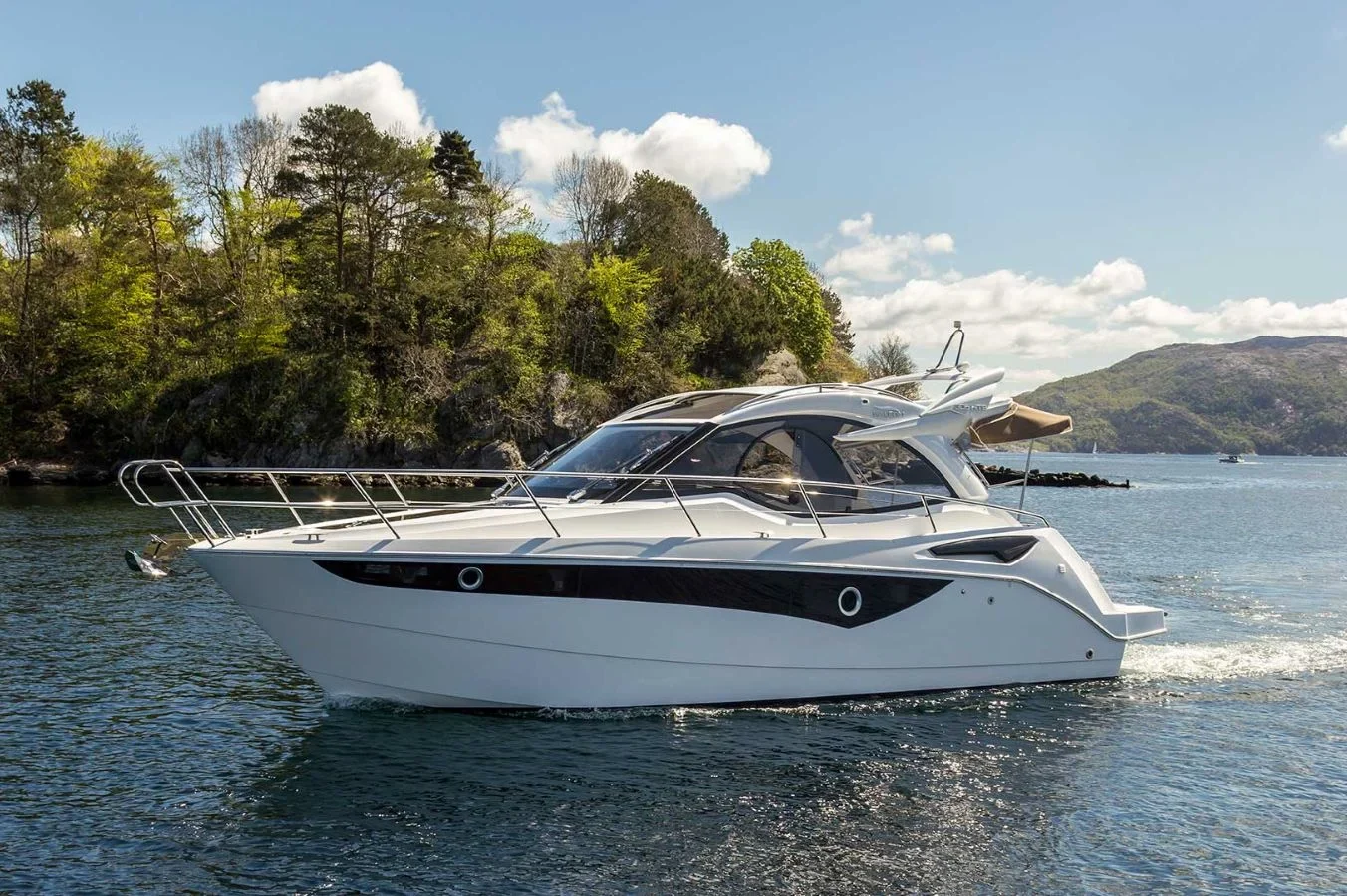 The Galeon 305 HTS is a sophisticated and powerful motor yacht that combines luxurious comfort with exceptional performance. Built by Galeon, renowned for their innovative designs and superior craftsmanship, this model exemplifies the brand’s commitment to quality and functionality. Measuring approximately 10 meters in length, the 305 HTS is designed to offer an unforgettable cruising experience. Its sleek and contemporary exterior is complemented by a spacious and thoughtfully designed interior, featuring high-quality materials and modern amenities. The yacht’s open-plan layout ensures a seamless transition from outdoor to indoor living, making it ideal for socializing and entertaining guests. Powered by inboard engines, the Galeon 305 HTS delivers impressive speed and agility on the water. The standard engine configuration usually includes twin Volvo Penta engines, providing reliable and efficient performance. With a cruising speed of around 25 knots and a maximum speed of 35 knots, this yacht is perfect for both leisurely voyages and thrilling adventures. The planning hull configuration ensures smooth and stable navigation, while the state-of-the-art navigation systems enhance safety and ease of operation. Inside, the 305 HTS accommodates up to four guests in two well-appointed cabins, offering a comfortable retreat after a day of exploration. The interior design, crafted by Galeon’s in-house team, emphasizes elegance and functionality, creating a welcoming atmosphere that rivals luxury hotels. With ample storage, a fully equipped galley, and a stylish saloon, the yacht offers all the conveniences needed for extended stays at sea. The Galeon 305 HTS is not just a yacht; it’s an embodiment of luxury and performance, offering an unparalleled yachting experience.