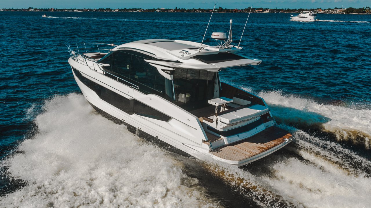 The Galeon 410 HTC is a masterpiece of maritime engineering, blending luxury with performance in a design that is both sleek and functional. Measuring approximately 12.5 meters in length, this yacht is crafted with a GRP hull and features a planning hull configuration, ensuring stability and speed on the open water. Designed by the renowned Galeon in-house team, the 410 HTC boasts a monohull design powered by inboard engines, offering excellent maneuverability and reliability. The interior is thoughtfully designed to maximize comfort, featuring two spacious cabins that accommodate up to four sleeping guests. With a beam of 3.9 meters, the yacht provides ample space for entertaining, allowing it to host up to 8 day guests comfortably. The yacht is fitted with a standard engine option of twin Volvo Penta D6-370s, which deliver a cruising speed of 25 knots and a top speed of 32 knots, making it perfect for those who enjoy swift, smooth sailing. The fuel capacity of 1,100 liters ensures an impressive range, allowing for extended journeys without frequent refueling stops. The Galeon 410 HTC is an epitome of luxury, designed for those who appreciate the finer things in life and seek adventure on the high seas. Whether for a day trip or a longer voyage, this yacht offers everything you need for an unforgettable experience, from its state-of-the-art navigation systems to its plush interiors. Priced competitively in the luxury yacht market, the Galeon 410 HTC represents excellent value for those seeking a premium boating experience.