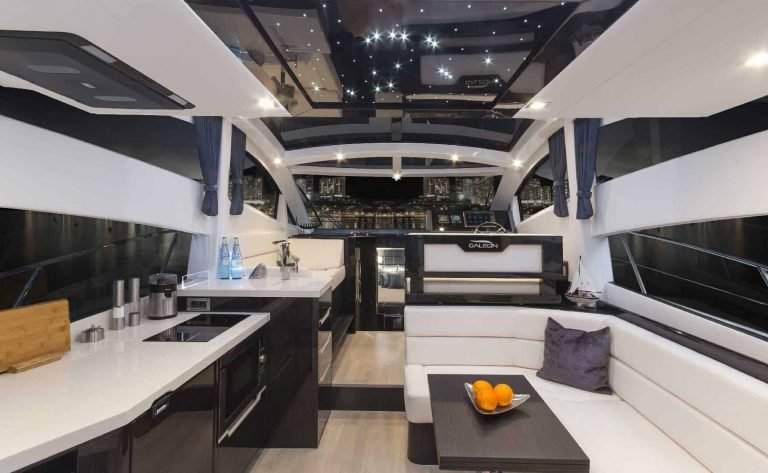 The Galeon 430 Skydeck is a testament to innovative yacht design and luxury craftsmanship. This model stands out with its unique skydeck, offering an elevated helm station and additional seating area that provides panoramic views and added space for relaxation. The yacht measures approximately 13 meters in length, making it a versatile choice for both short cruises and longer voyages. Equipped with a sleek monohull design and a planning hull configuration, the 430 Skydeck ensures smooth and efficient navigation across various sea conditions. The interior is elegantly designed, featuring high-quality materials and finishes that reflect Galeon’s commitment to luxury. The spacious main deck includes a well-appointed salon and a fully equipped galley, perfect for entertaining guests or enjoying a family meal. Below deck, the yacht offers comfortable accommodations with two cabins that can sleep up to four guests, plus additional space for day guests. The Galeon 430 Skydeck is powered by inboard engines, offering reliable performance with a cruising speed of approximately 26 knots and a maximum speed of 31 knots. This yacht also boasts a substantial fuel capacity, allowing for extended cruising without frequent refueling stops. Designed by Galeon’s in-house team, the 430 Skydeck is a perfect blend of style, functionality, and performance. It caters to discerning yacht enthusiasts who value both comfort and adventure on the open sea.