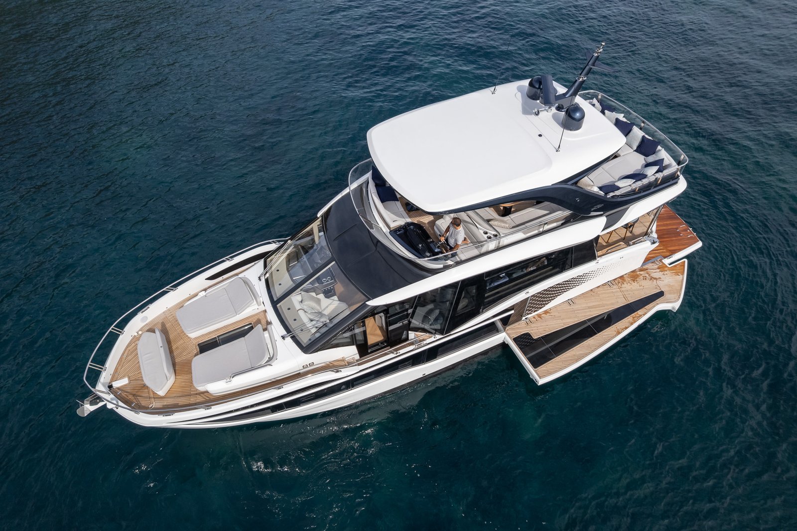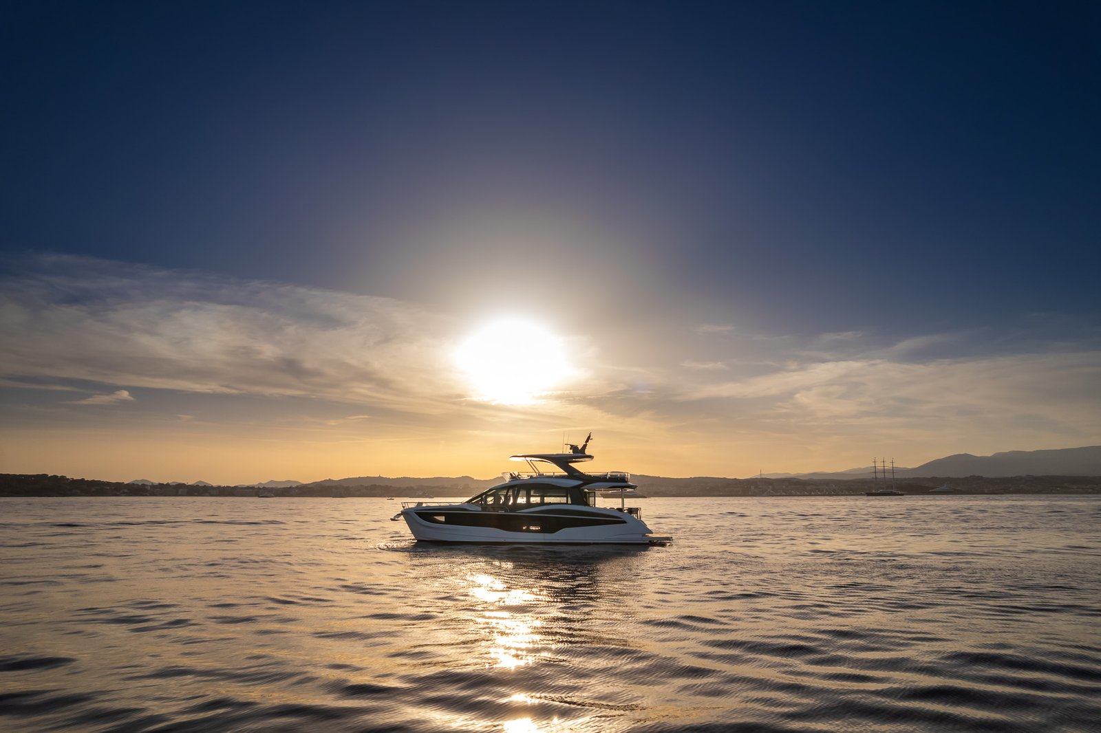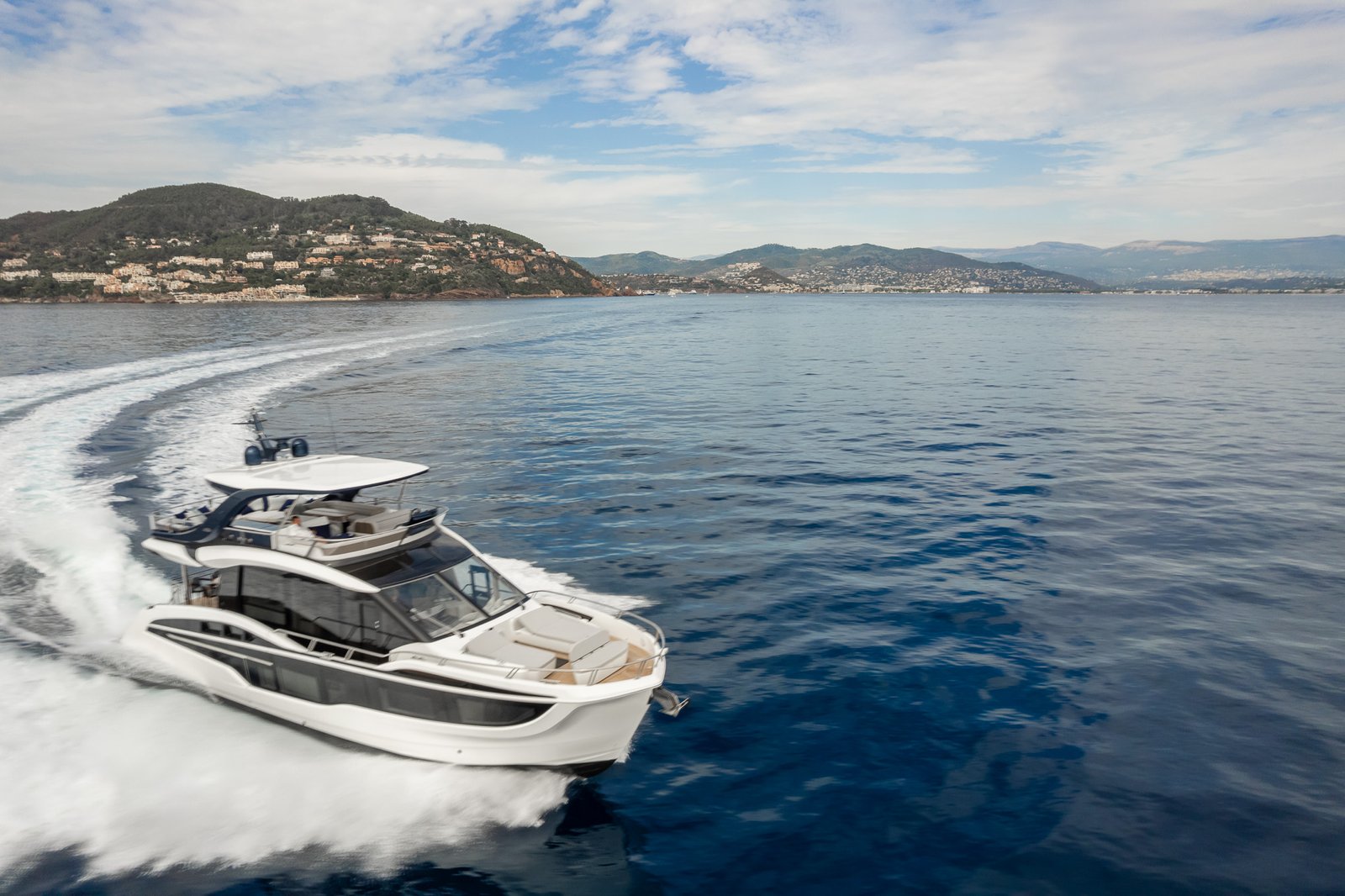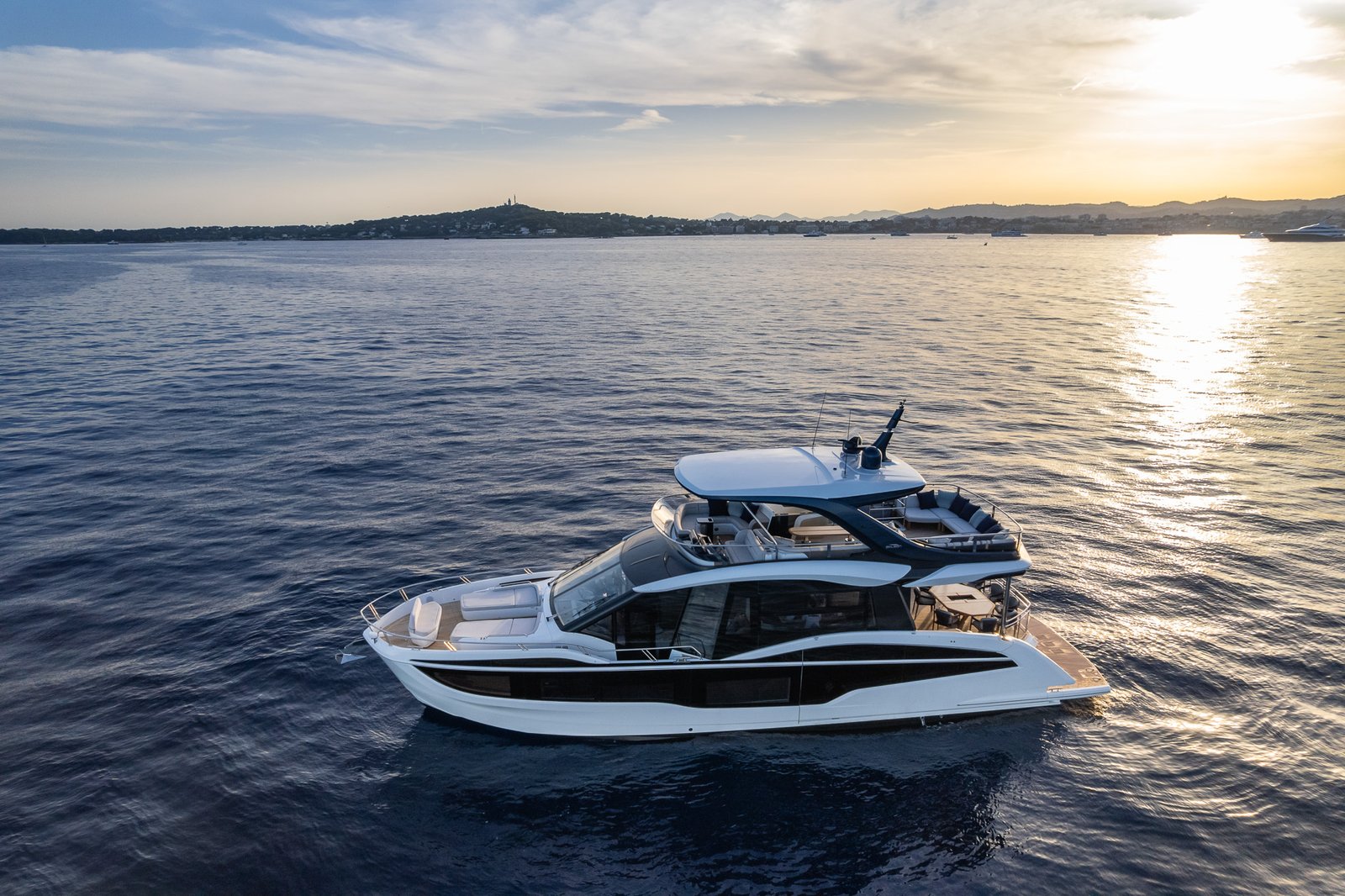 The Galeon 620 Fly is a masterpiece of marine engineering, blending luxurious amenities with cutting-edge technology to deliver an unrivaled yachting experience. With a length of 19.82 meters, this yacht offers ample space for relaxation and entertainment. The expansive flybridge is a standout feature, providing panoramic views and an ideal setting for social gatherings. The interior is meticulously crafted, featuring high-quality materials and elegant finishes that create a sophisticated ambiance. Accommodating up to six guests across three spacious cabins, the Galeon 620 Fly ensures comfort and privacy. The main deck is designed for seamless indoor-outdoor living, with a large salon, dining area, and a fully-equipped galley. Powered by twin MAN engines, this yacht delivers impressive performance, reaching a top speed of 32 knots and a comfortable cruising speed of 26 knots. Its planning hull configuration ensures a smooth ride, even in challenging conditions. With a fuel capacity of 3,000 liters, the Galeon 620 Fly offers a substantial range for extended cruising. Designed by Tony Castro, this yacht is a testament to innovative design and engineering excellence. Manufactured in Poland, the Galeon 620 Fly embodies the brand’s commitment to quality and craftsmanship, making it an exceptional choice for discerning yacht enthusiasts.