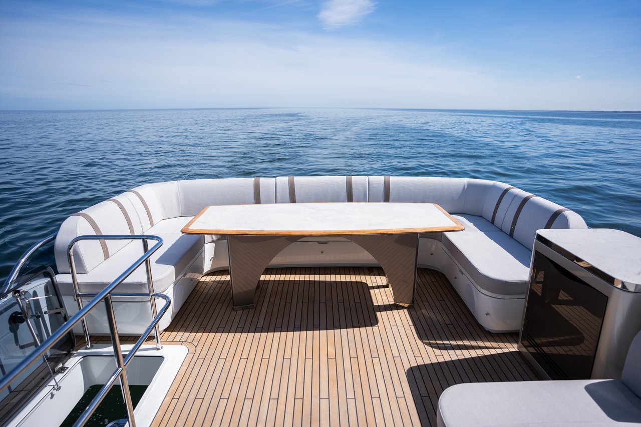 Equipped with dual inboard engines, the Galeon 640 Fly delivers impressive performance, achieving a cruising speed of 23 knots and a top speed of 31 knots. Its advanced hull design ensures a smooth and stable ride, even in challenging conditions. The yacht’s planning hull, constructed from high-quality GRP, is engineered for efficiency and durability. The 640 Fly boasts a generous fuel capacity of 3,800 liters, giving it a substantial range for extended voyages. Whether you’re hosting a lavish party or embarking on a serene getaway, the Galeon 640 Fly sets a new standard for flybridge yachts, making it the ultimate choice for discerning yacht enthusiasts seeking both style and substance.