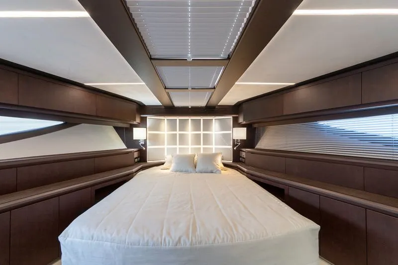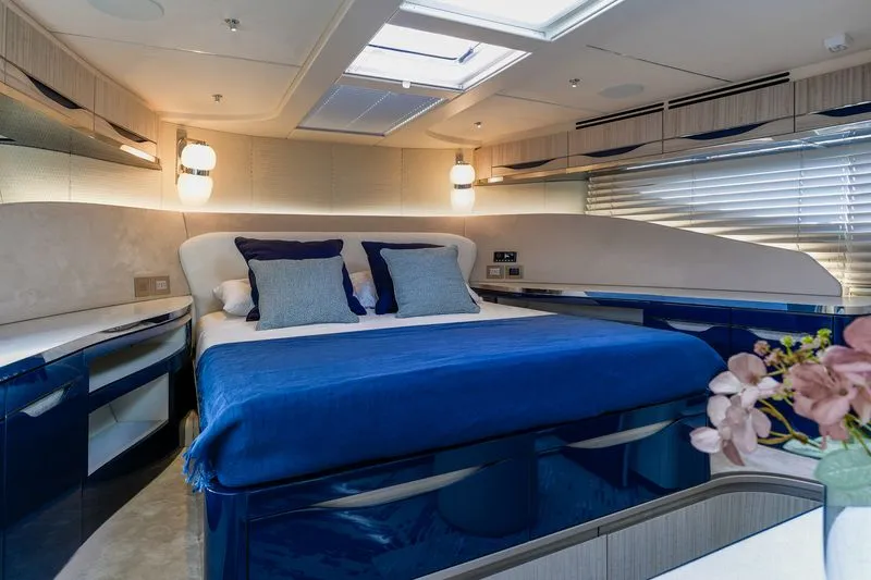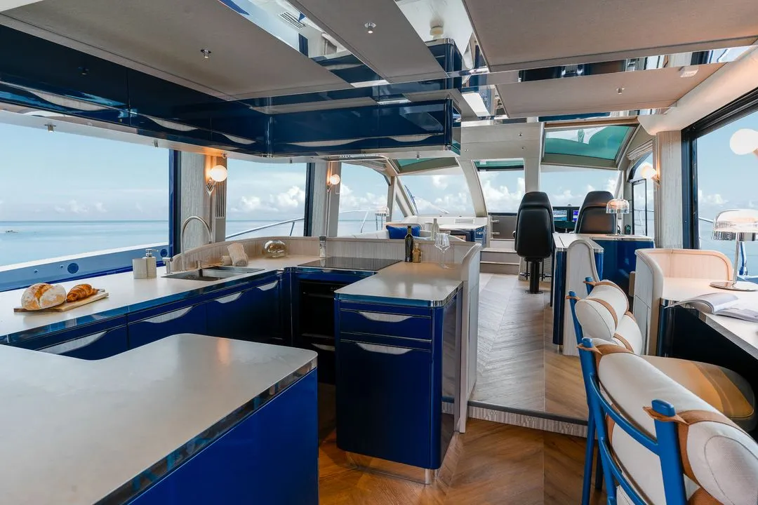 The Galeon 640 Fly is a masterpiece of modern yacht design, blending opulent luxury with innovative features to deliver a truly unique nautical experience. This flybridge yacht spans an impressive 20.8 meters in length, offering ample space for entertainment and relaxation. Its sleek exterior, crafted by renowned designers, ensures a commanding presence on the water, while the ingeniously designed flybridge offers panoramic views and abundant seating. The interior is a testament to Galeon’s commitment to quality and elegance, featuring premium materials and finishes throughout. With accommodations for up to eight guests, the 640 Fly provides four spacious cabins, each designed for maximum comfort. The owner’s suite is particularly luxurious, featuring a full-beam layout, a private en-suite bathroom, and large windows that flood the space with natural light.