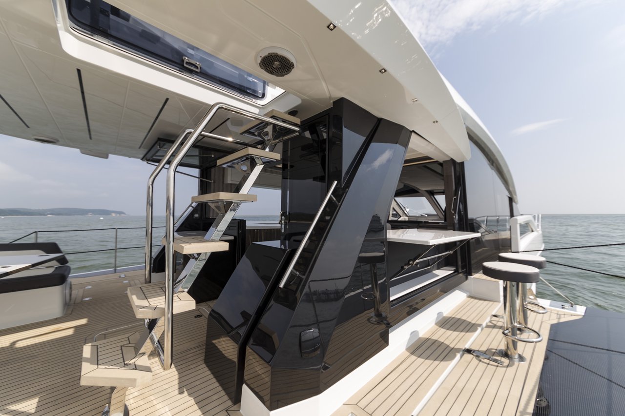 The Galeon 650 Skydeck is a masterpiece of modern yacht design, seamlessly blending cutting-edge technology with luxurious amenities. Built by the renowned shipyards of Galeon, this yacht features a sleek and stylish exterior crafted from high-quality GRP materials, ensuring both durability and elegance. With a length of 21.95 meters, it offers ample space for entertaining and relaxation. The Skydeck configuration provides an expansive upper deck area, perfect for enjoying panoramic views while cruising. Powered by robust inboard engines, the Galeon 650 Skydeck achieves impressive performance metrics, including a top speed of 30 knots and a comfortable cruising speed of 24 knots. Its planning hull design ensures smooth handling and efficiency, making it ideal for both leisurely trips and adventurous voyages. Inside, the yacht is designed to accommodate up to 8 guests in luxurious comfort, with 4 elegantly appointed cabins, each featuring en-suite facilities. The interior exudes sophistication, with high-end finishes and state-of-the-art entertainment systems. The thoughtful layout includes a spacious salon, a fully equipped galley, and a dining area, providing the perfect setting for socializing and fine dining. With a fuel capacity of 3,900 liters, this yacht offers an impressive range, allowing for extended journeys without frequent refueling. Designed by the acclaimed Tony Castro, the exterior and interior reflect a harmonious blend of aesthetics and functionality. The Galeon 650 Skydeck is not just a yacht; it’s a lifestyle statement, promising unforgettable experiences on the water.
