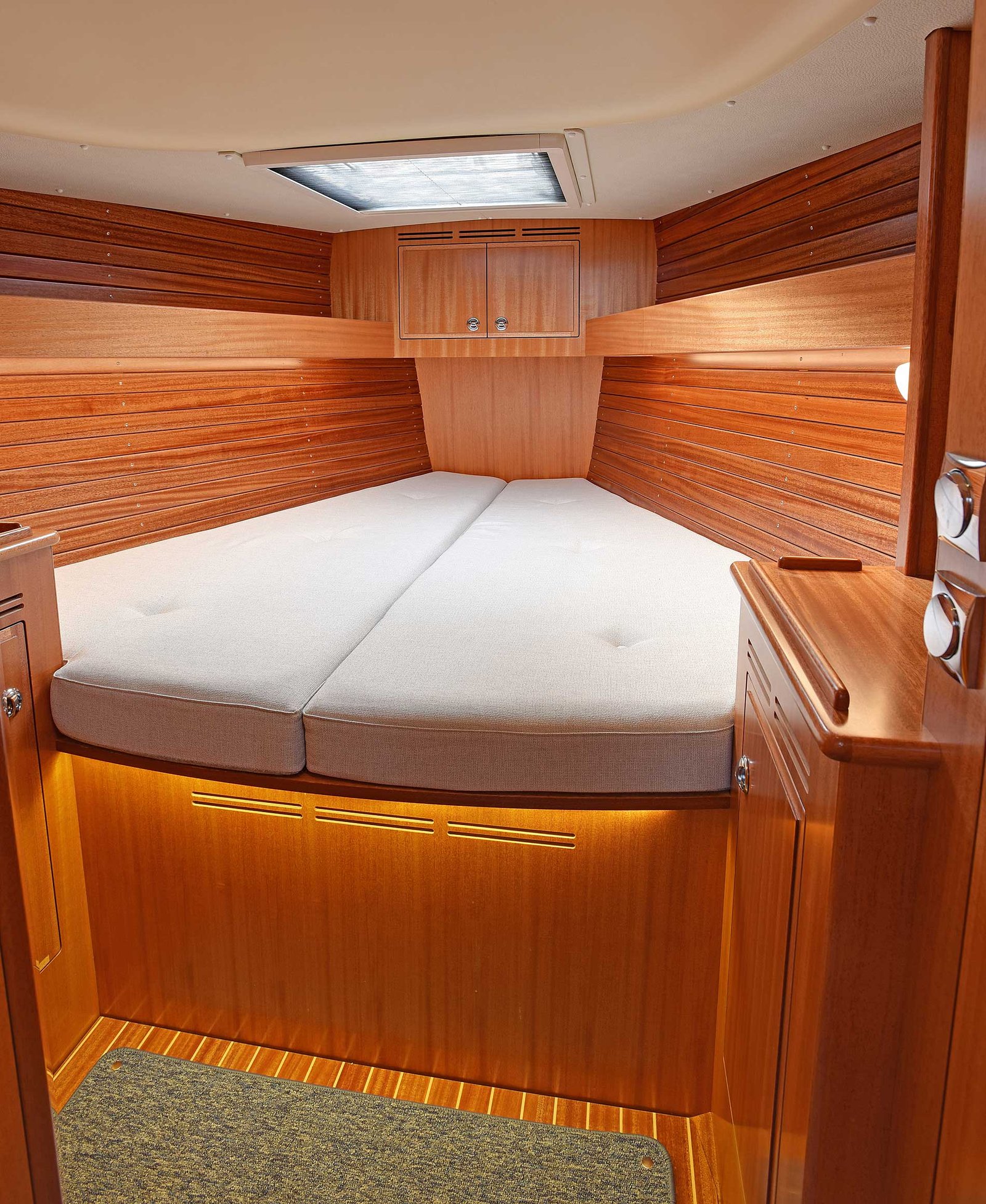 The Hallberg Rassy 340 is a distinctive sailing yacht that combines elegance with excellent performance at sea. Designed by the renowned naval architect Germán Frers, this yacht embodies the timeless quality and craftsmanship that Hallberg Rassy is known for. With a length of 10.36 meters (34 feet), the Hallberg Rassy 340 offers a spacious and comfortable interior, accommodating up to six sleeping guests in its two well-appointed cabins. The yacht’s deck layout is engineered for ease of use, featuring a self-tacking jib and a clean, uncluttered surface that enhances both safety and aesthetic appeal. Below deck, the interior is crafted with fine mahogany woodwork, offering a warm and inviting atmosphere. The living area is well-lit and ventilated, with large hatches and portlights ensuring ample natural light and air circulation. The galley is equipped with modern appliances, providing all the necessary amenities for extended voyages. Powered by a reliable Volvo Penta D1-30 engine, the Hallberg Rassy 340 ensures smooth sailing even in challenging conditions. This model also offers a variety of optional features, allowing owners to customize their yacht to suit their specific needs and preferences. With its proven bluewater capabilities, the Hallberg Rassy 340 is not only ideal for local cruising but also for long-distance voyages. This yacht delivers a perfect combination of innovative design, superior build quality, and exceptional comfort, making it an ideal choice for discerning sailors.