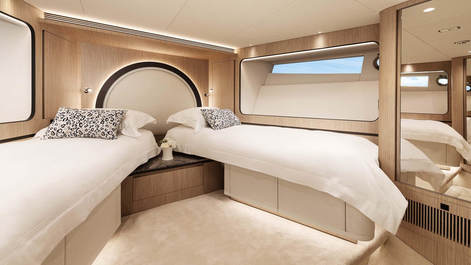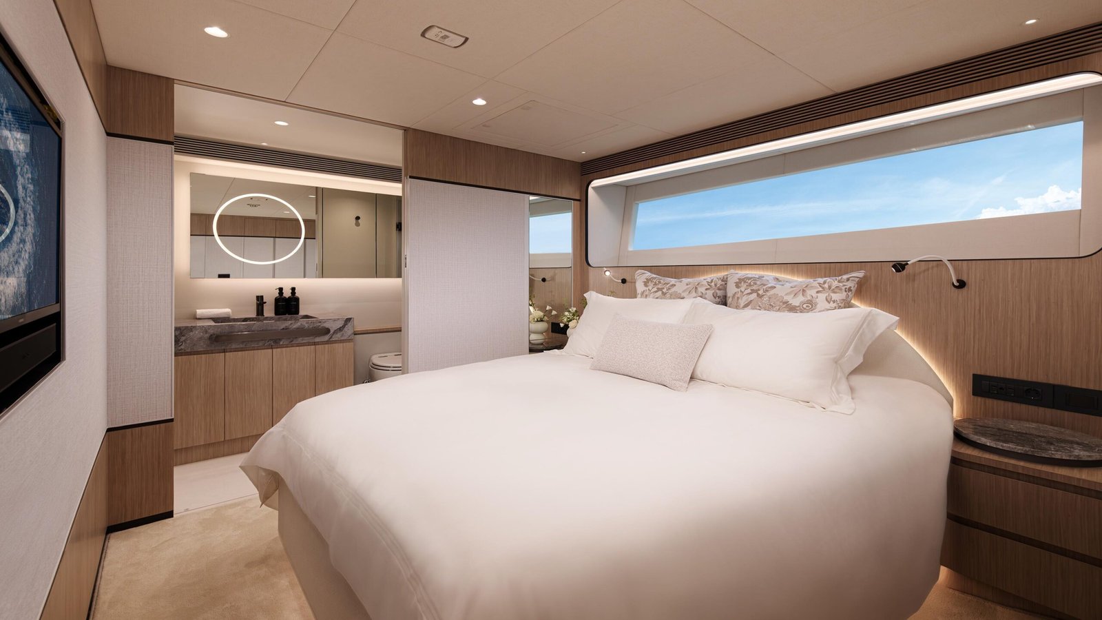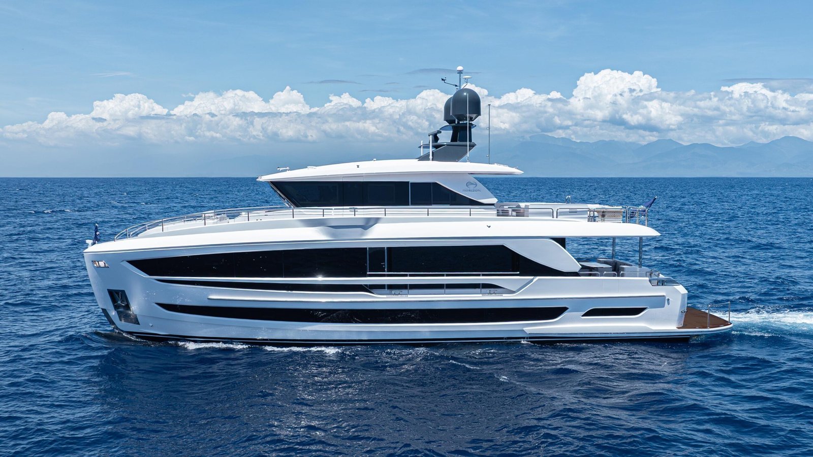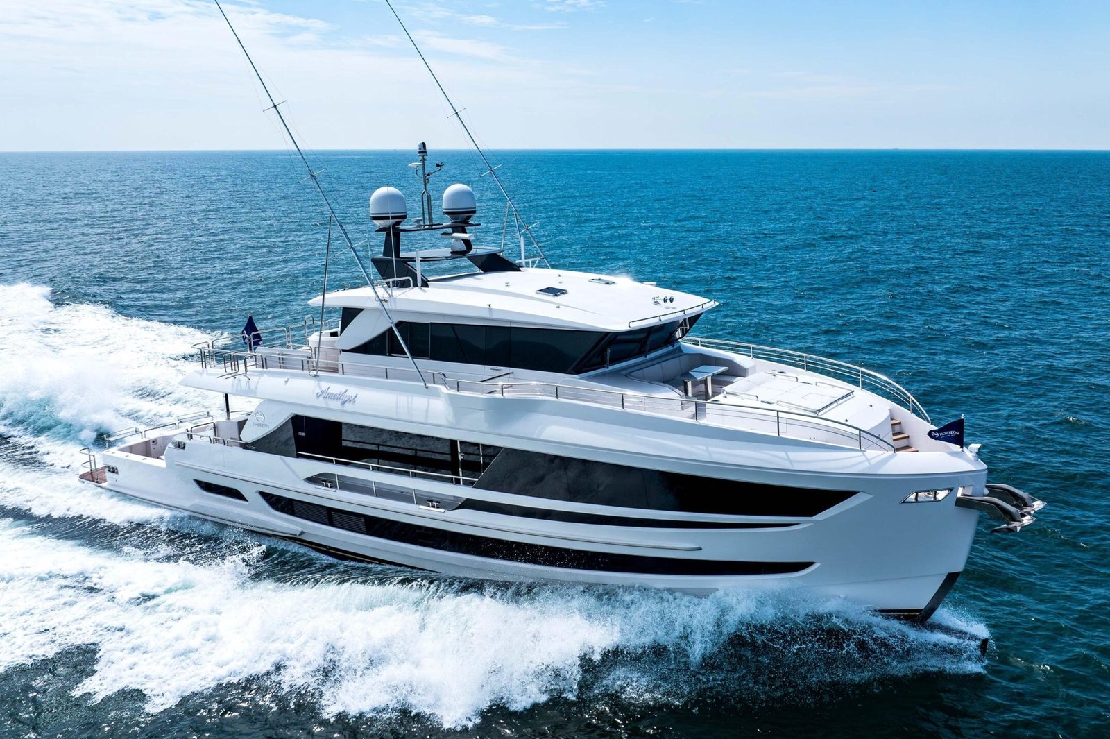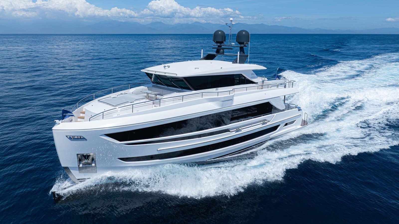 The Horizon Yachts FD80 is a masterpiece of marine engineering, offering an exceptional blend of luxury, performance, and innovative design. With a length overall of 24.57 meters, this yacht stands out for its spacious layout and cutting-edge amenities. Designed by Cor D. Rover, the FD80 boasts modern aesthetics and an intelligently planned interior that maximizes both comfort and functionality. The open-plan salon and dining area are bathed in natural light, providing a perfect setting for relaxation or entertaining guests. Below deck, the yacht accommodates up to eight guests across four well-appointed cabins, each featuring en-suite facilities that ensure privacy and comfort. Powered by twin MAN V8 engines, the FD80 delivers impressive performance with a cruising speed of 16 knots and a top speed of 21 knots. Its innovative hull design enhances stability and efficiency, making it suitable for both short coastal cruises and extended ocean crossings. The yacht’s flybridge is a highlight, offering an expansive space for sunbathing, alfresco dining, and enjoying panoramic views. State-of-the-art technology, including advanced navigation and entertainment systems, ensures a seamless onboard experience. Constructed with a GRP hull and superstructure, the FD80 combines durability with a sleek appearance. The yacht’s design prioritizes safety and ease of operation, making it an ideal choice for owner-operators or those with a small crew. With its exceptional craftsmanship and attention to detail, the Horizon Yachts FD80 represents the pinnacle of luxury yachting, catering to discerning owners looking for a vessel that embodies both style and substance.