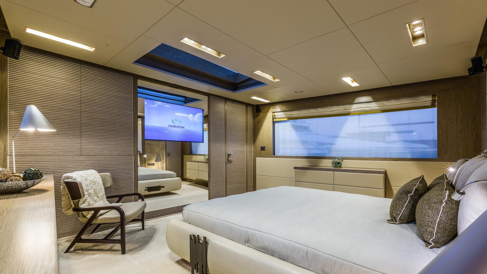 The Horizon RP120 is a masterpiece of engineering and design, tailored for those who demand luxury and performance on the open seas. This exquisite yacht stretches approximately 36.57 meters (120 feet) in length, providing ample space for relaxation and entertainment. Built with a GRP hull, the RP120 is a testament to Horizon Yachts’ commitment to quality and innovation. The yacht features a semi-displacement hull configuration, ensuring a smooth and stable ride even in choppy waters. Powered by twin MTU 16V 2000 M96L engines, the RP120 boasts a cruising speed of 16 knots and can reach a maximum speed of 22 knots. With a fuel capacity of 22,000 liters, it offers an impressive range, making it ideal for extended voyages. The RP120’s interior is a sanctuary of comfort and elegance, accommodating up to 10 guests in five lavish staterooms. The full-beam master suite is a highlight, featuring panoramic windows that flood the space with natural light. The interior design, crafted by the renowned Horizon in-house team, merges contemporary aesthetics with classic luxury, ensuring a timeless appeal. The yacht also accommodates a crew of six, ensuring personalized service for all guests. Designed by the esteemed naval architect John H. Lindblom, the RP120’s exterior lines are sleek and modern, with expansive outdoor spaces for alfresco dining and relaxation. The flybridge is equipped with a jacuzzi, sun loungers, and a wet bar, offering the perfect setting to enjoy the sea breeze. Whether you are cruising the Mediterranean or exploring exotic destinations, the Horizon RP120 promises an unforgettable yachting experience.