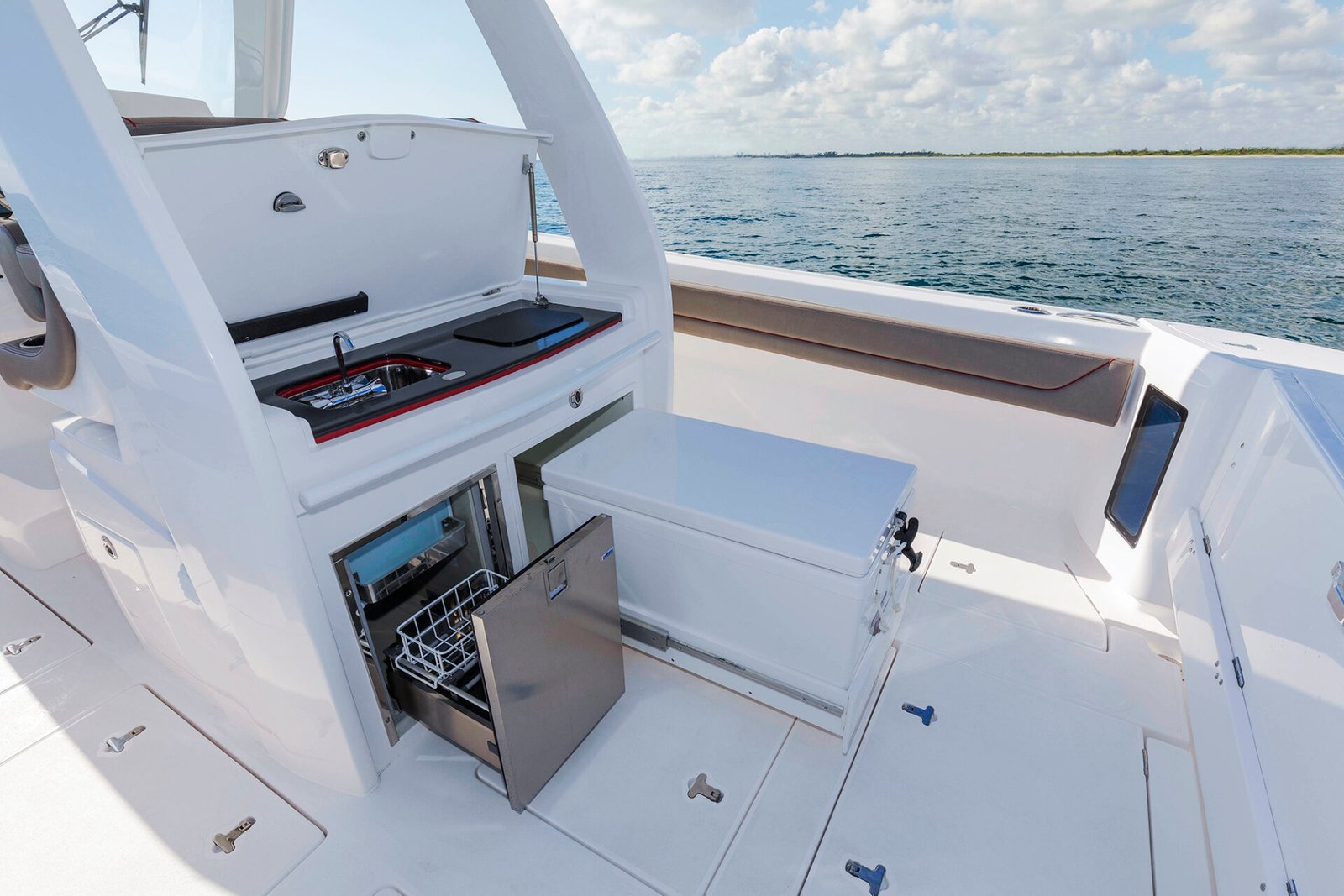 The Intrepid 345 Nomad SE stands as a testament to superior craftsmanship and innovative design in the realm of center console boats. This model is engineered to cater to both the thrill-seekers and the comfort enthusiasts, making it an ideal choice for varied maritime adventures. With a length of approximately 10.5 meters (34 feet 5 inches), the 345 Nomad SE offers ample space for relaxation and entertainment. Its sleek and modern design is complemented by high-quality materials and finishes, ensuring a luxurious experience on the water. This boat is powered by twin outboard engines, typically the Mercury Verado 400s, providing an impressive performance with a cruising speed of around 30 knots and a top speed exceeding 50 knots. The fuel capacity of 1,325 liters ensures a substantial range for extended trips. The 345 Nomad SE boasts a sophisticated layout featuring spacious seating arrangements, a well-equipped helm station, and a cabin with a berth, making it suitable for overnight stays. The generous beam of 3.2 meters (10 feet 6 inches) enhances stability and comfort, while the shallow draft allows for easy navigation in various water conditions. Designed with practicality in mind, the boat includes ample storage, a swim platform, and a variety of customization options to meet individual preferences. Whether you’re embarking on a deep-sea fishing expedition or a leisurely cruise, the Intrepid 345 Nomad SE promises a seamless blend of performance, style, and comfort.