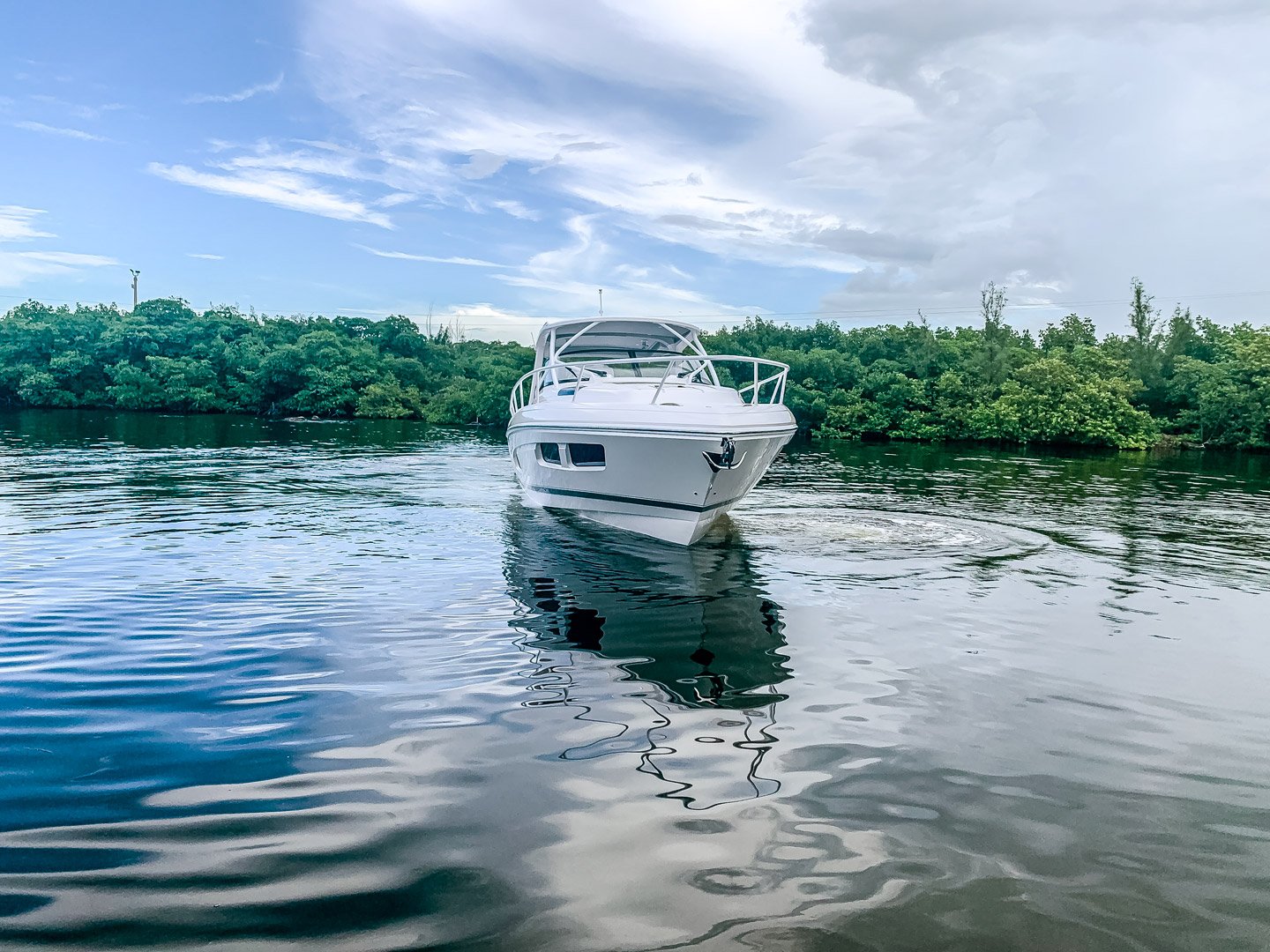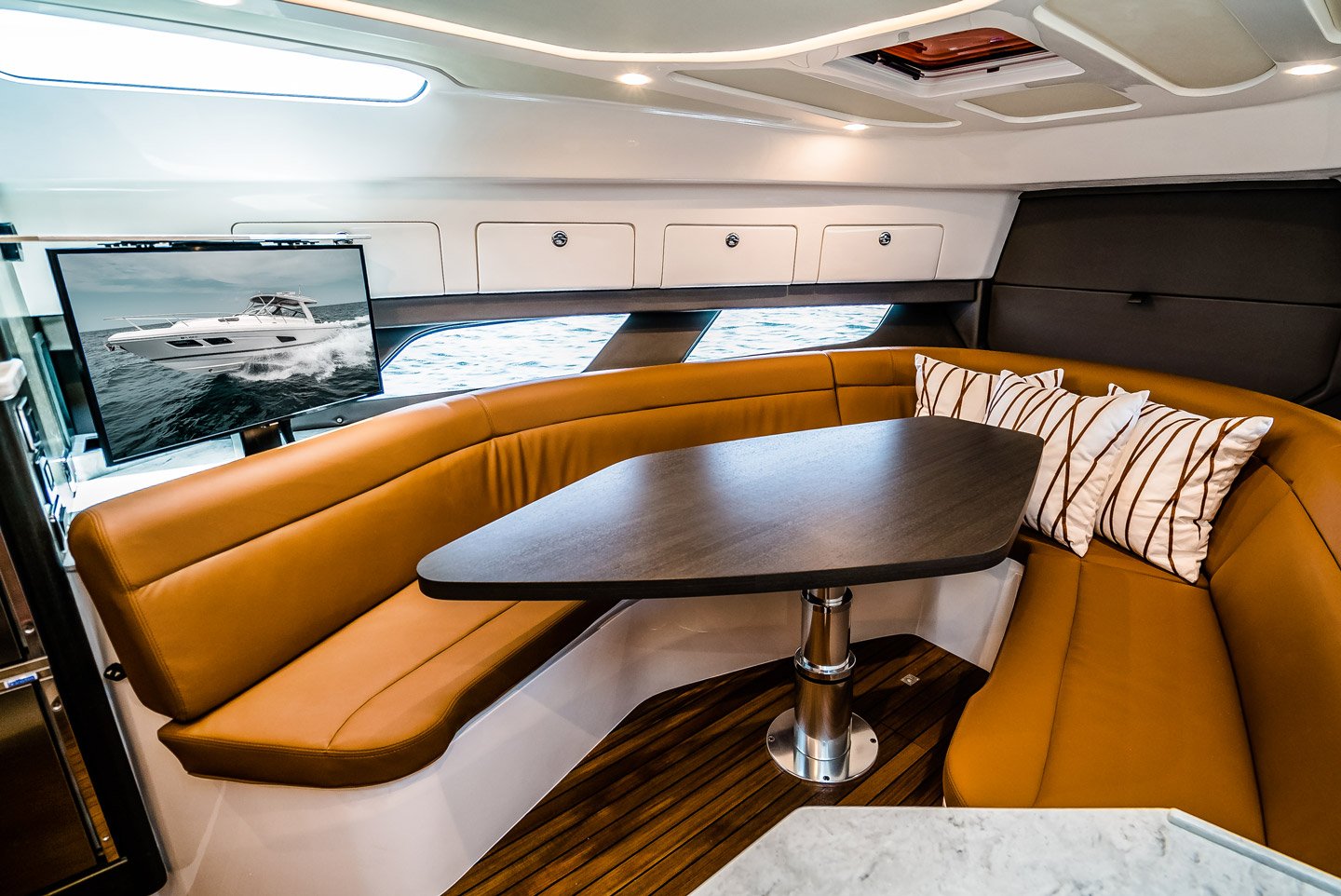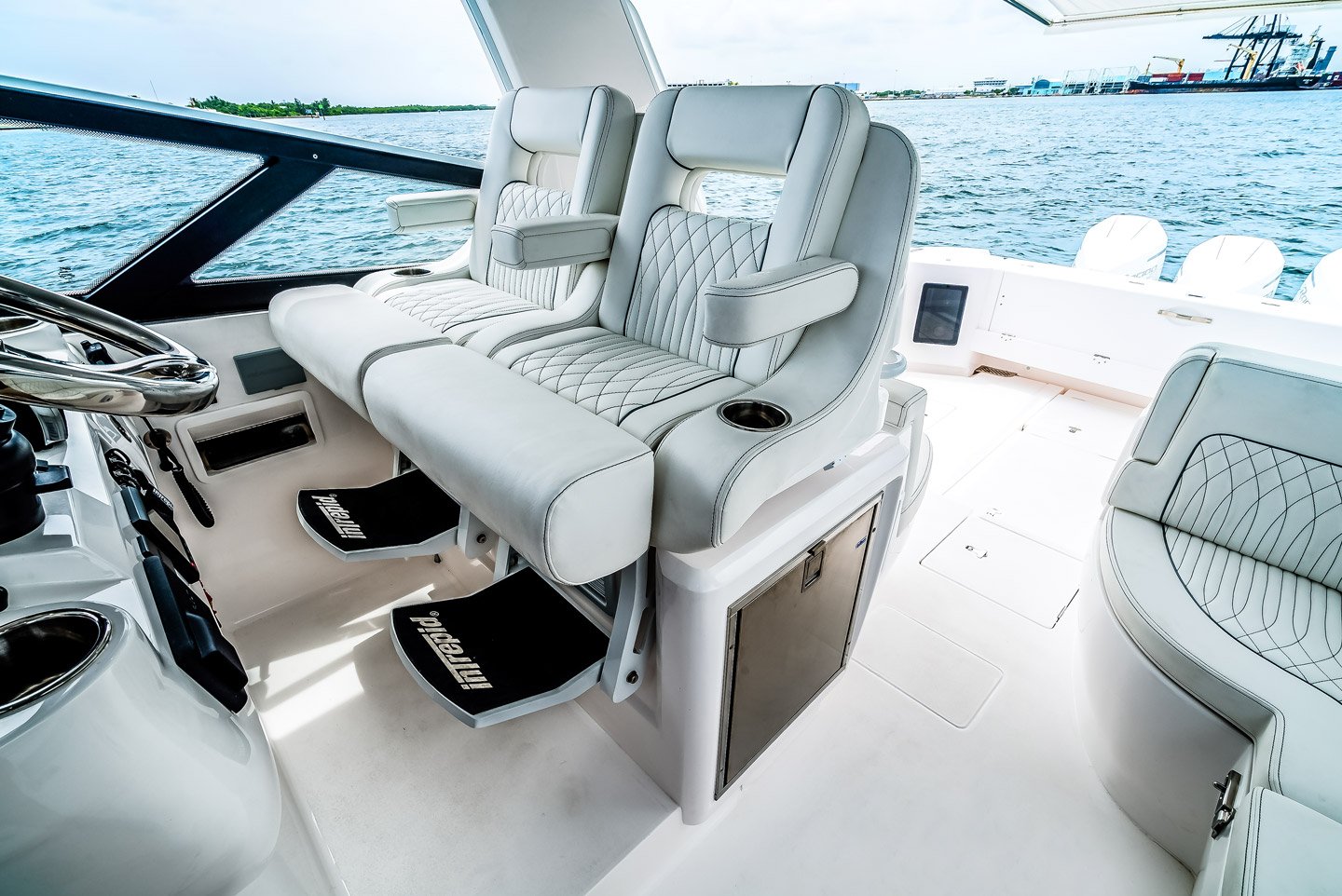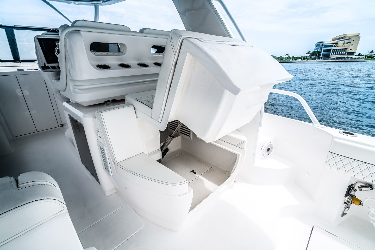Powered by inboard engines, the Intrepid 438 Evolution offers a cruising speed of 30 knots and can reach a maximum speed of 40 knots, delivering both efficiency and thrill. Its range is strategically optimized for extended adventures, ensuring you can explore more without frequent refueling stops. The yacht features a spacious beam of 4.14 meters (13.6 feet) and a draft of 0.86 meters (2.82 feet), allowing for easy navigation through various water depths.