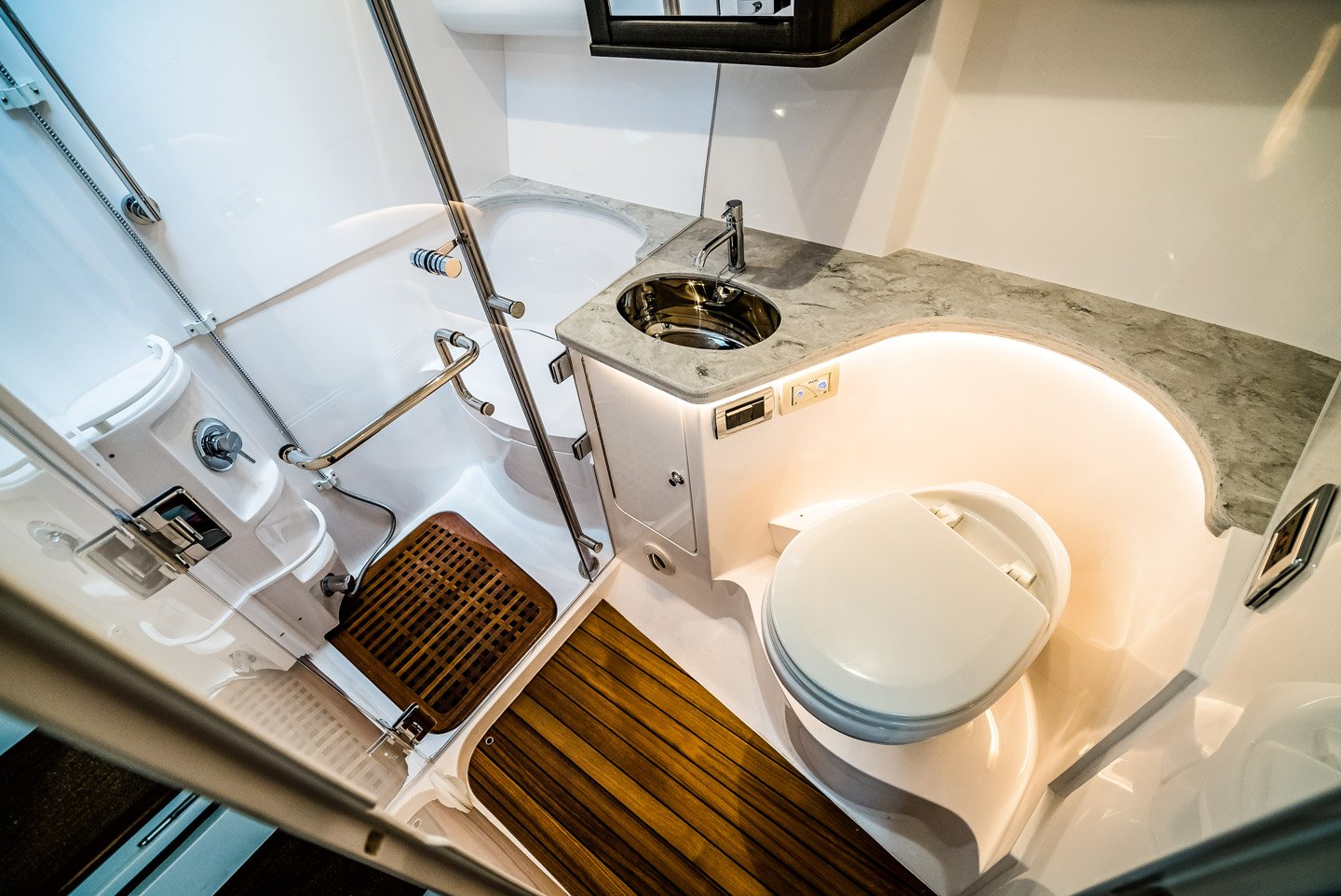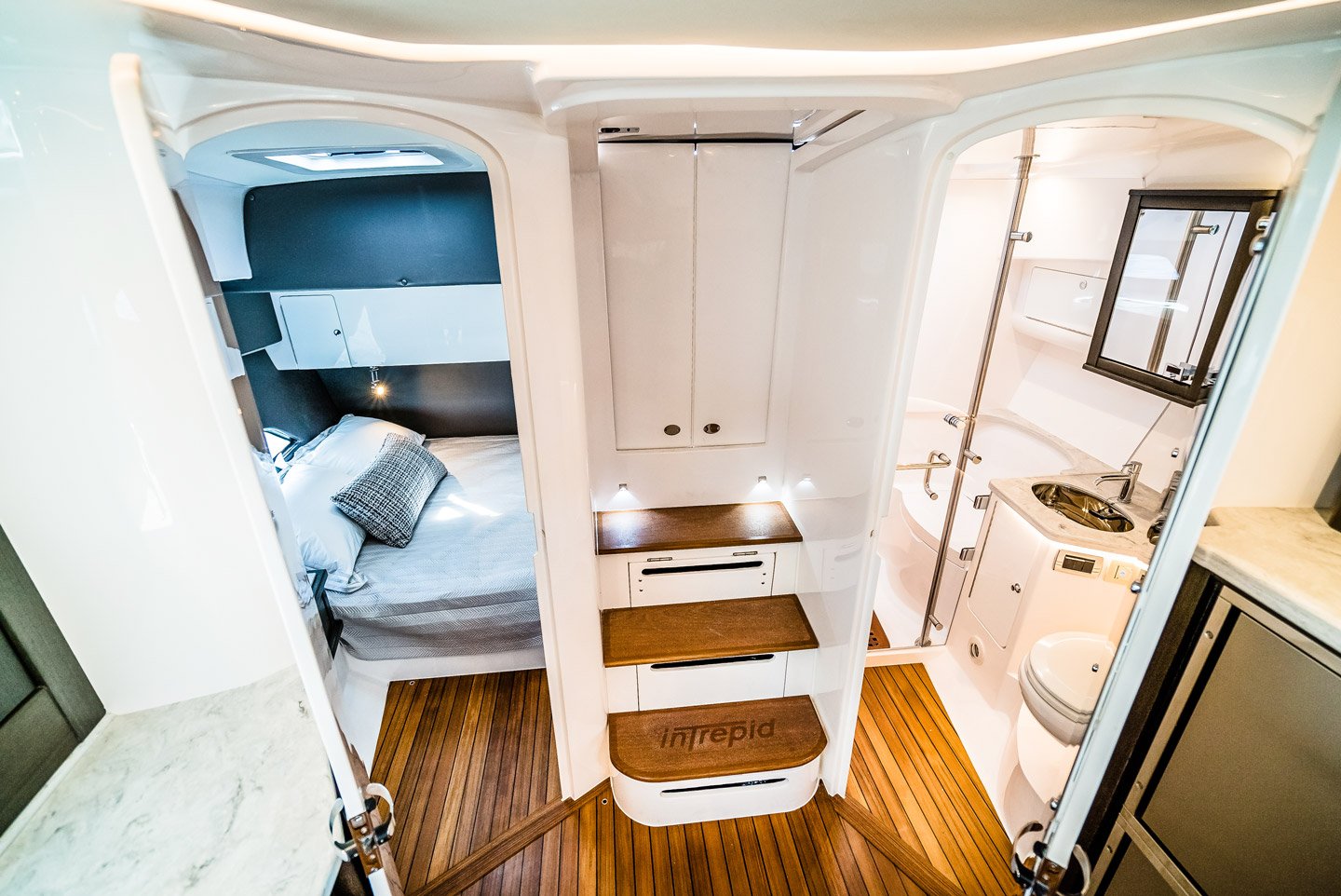 The interior design is expertly crafted to offer both comfort and luxury, with accommodations for up to 8 day guests and sleeping arrangements for 4 in 2 well-appointed cabins. The layout maximizes space and functionality, ensuring every journey is as comfortable as it is memorable. Designed by Intrepid’s in-house team, the 438 Evolution is a testament to their commitment to quality and innovation.