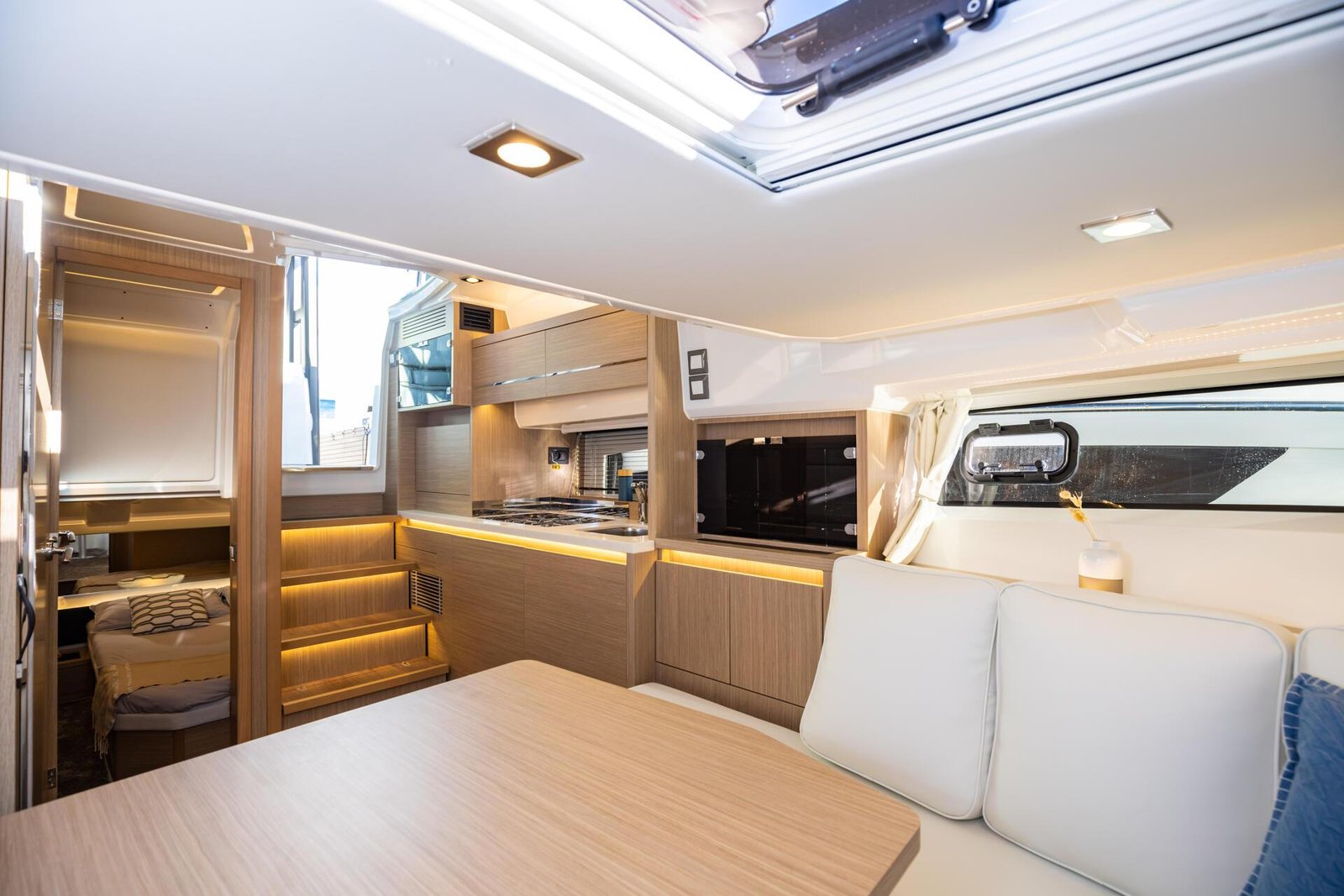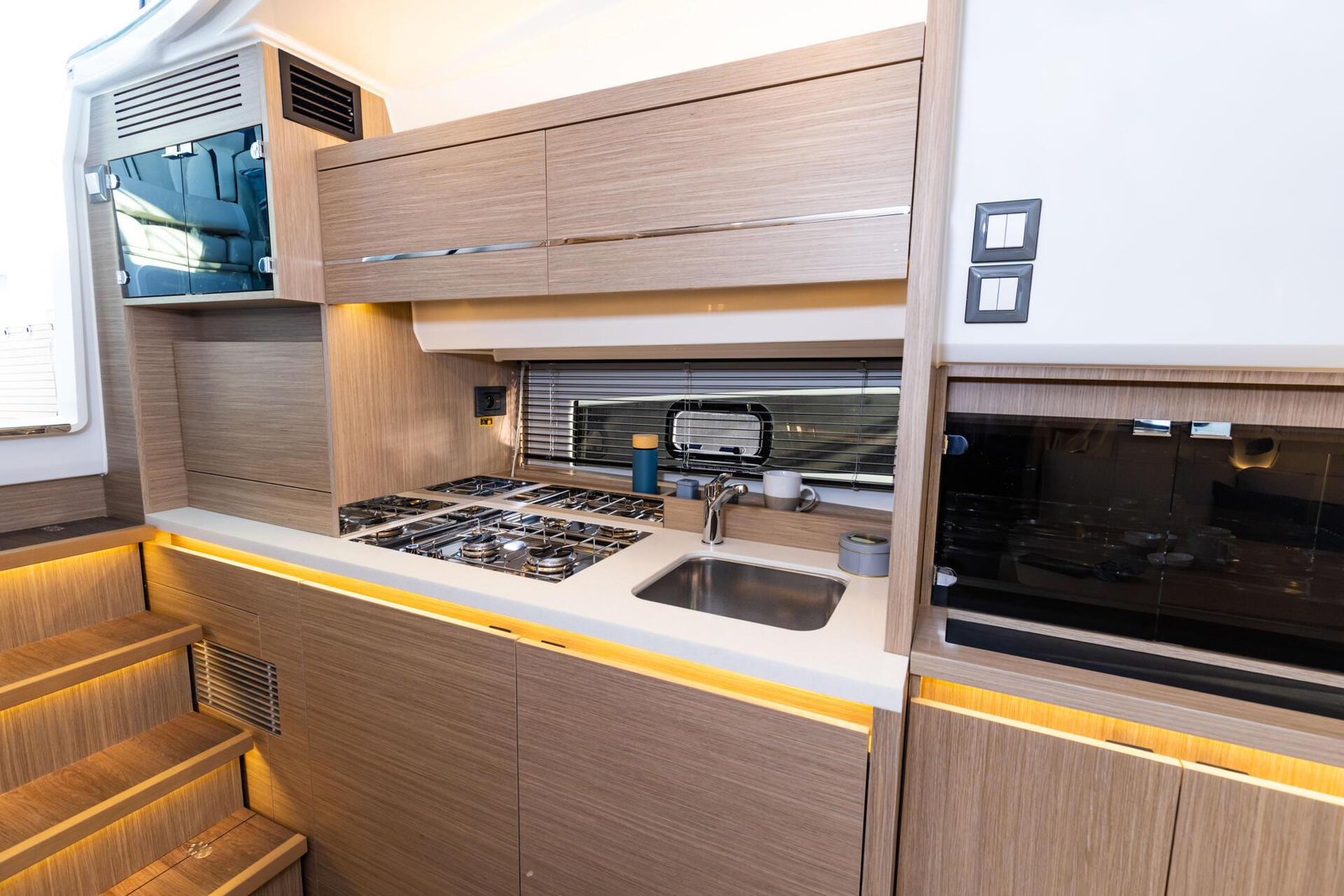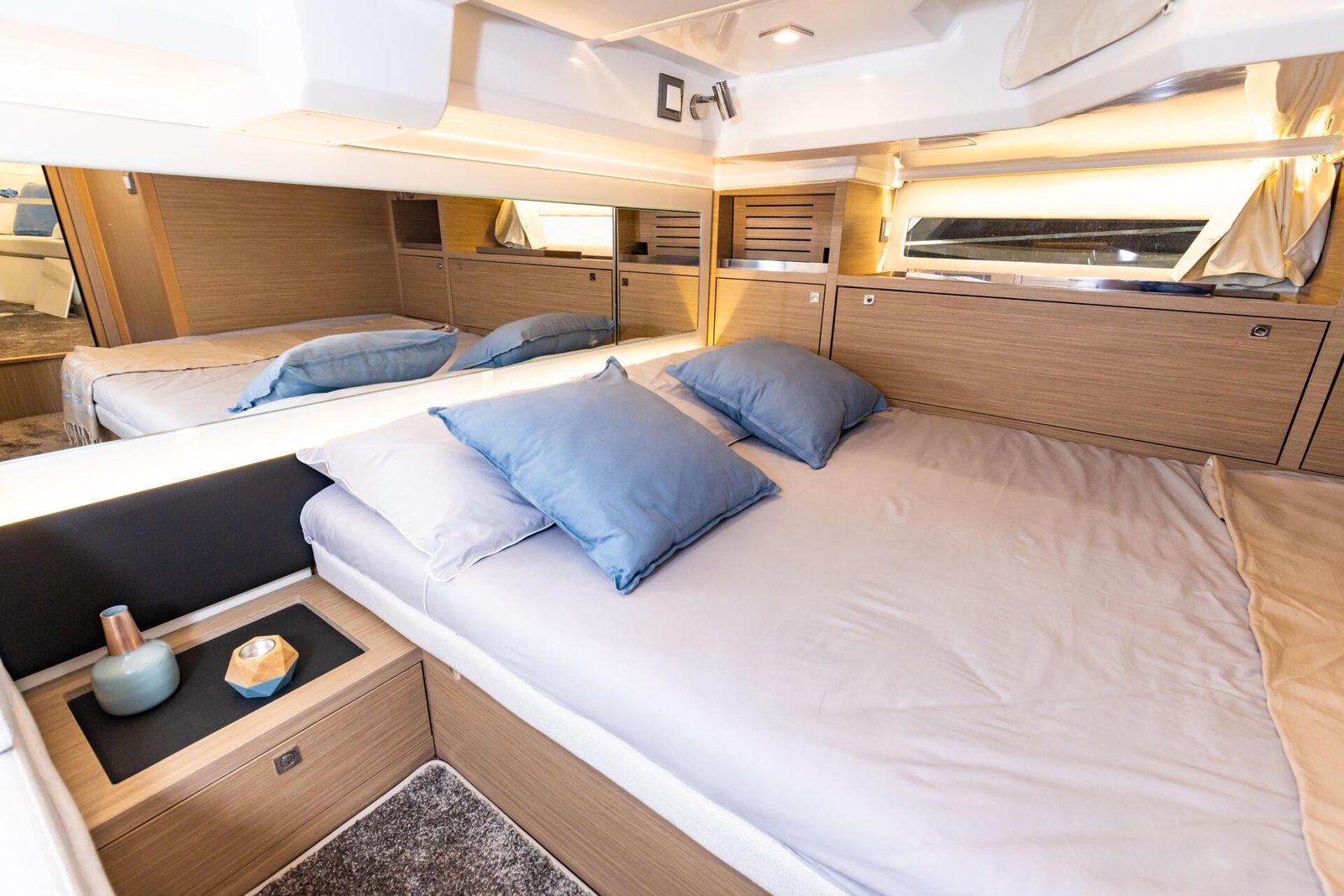 The Janneau Cap Camarat 12.5 WA is a remarkable example of modern yacht design, offering a combination of style, performance, and comfort. This versatile walkaround vessel is crafted to provide an exceptional on-water experience, whether you are looking for a day cruiser or a platform for extended adventures. With a length of 12.5 meters, the yacht features a spacious deck plan that optimizes both relaxation and functionality. The Cap Camarat 12.5 WA is powered by a choice of triple outboard engine configurations, ensuring a powerful and reliable performance with a top speed of around 50 knots, making it ideal for those who appreciate speed. The innovative hull design promises a smooth ride even in choppy waters, while the modern helm station is equipped with state-of-the-art navigation equipment to enhance safety and ease of use. Below deck, the yacht offers comfortable accommodations for up to four guests, with a double cabin and a convertible salon. The interior design is contemporary and elegant, featuring high-quality materials and finishes. The galley is well-equipped for preparing meals during longer stays. The cockpit is spacious and includes options for alfresco dining, sunbathing, and socializing, offering a seamless transition from water-based activities to leisure. This model represents Janneau’s commitment to quality and innovation, ensuring a memorable boating experience for all aboard. Whether you are entertaining guests or enjoying a tranquil day at sea, the Cap Camarat 12.5 WA is designed to exceed expectations.