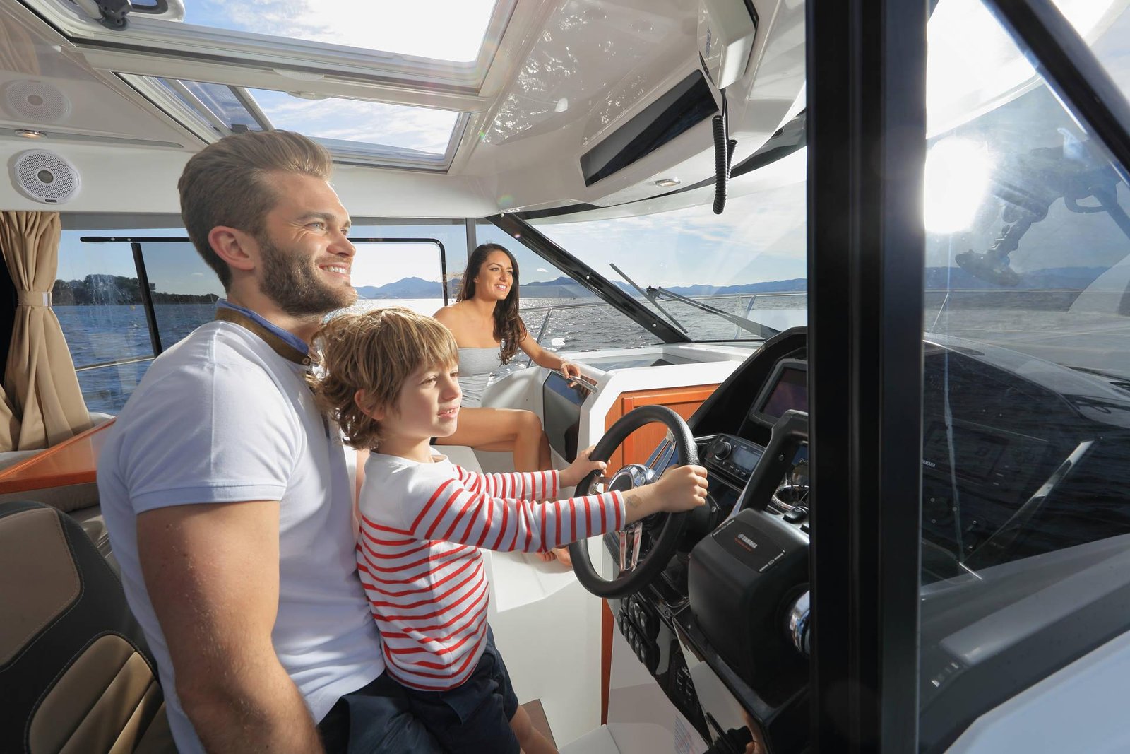 The Jeanneau Merry Fisher 895 is a remarkable motorboat that stands out in the world of family cruisers. With its thoughtful design and innovative features, this model is perfect for those who seek both performance and comfort on the water. The Merry Fisher 895 boasts an overall length of 8.9 meters and a beam of 2.99 meters, providing ample space for relaxation and entertainment. Its design includes a spacious cockpit with a U-shaped seating area that can be converted into a sun deck, offering versatility for various activities. Inside, the boat features a well-appointed salon with panoramic windows that ensure plenty of natural light and stunning views. The galley is equipped with all necessary amenities, making meal preparation a breeze. The sleeping accommodations include two double cabins, comfortably housing up to six guests overnight, making it ideal for family getaways or trips with friends. The boat is powered by twin outboard engines, providing a seamless blend of power and efficiency, with a cruising speed of 20 knots and a maximum speed of 30 knots. The hull is constructed from GRP, ensuring durability and a smooth ride even in challenging conditions. As part of Jeanneau’s commitment to quality and innovation, the Merry Fisher 895 features advanced navigation systems and modern amenities to enhance your boating experience. Whether you’re planning a coastal exploration or a quick weekend escape, the Merry Fisher 895 delivers an unrivaled blend of style, comfort, and performance.