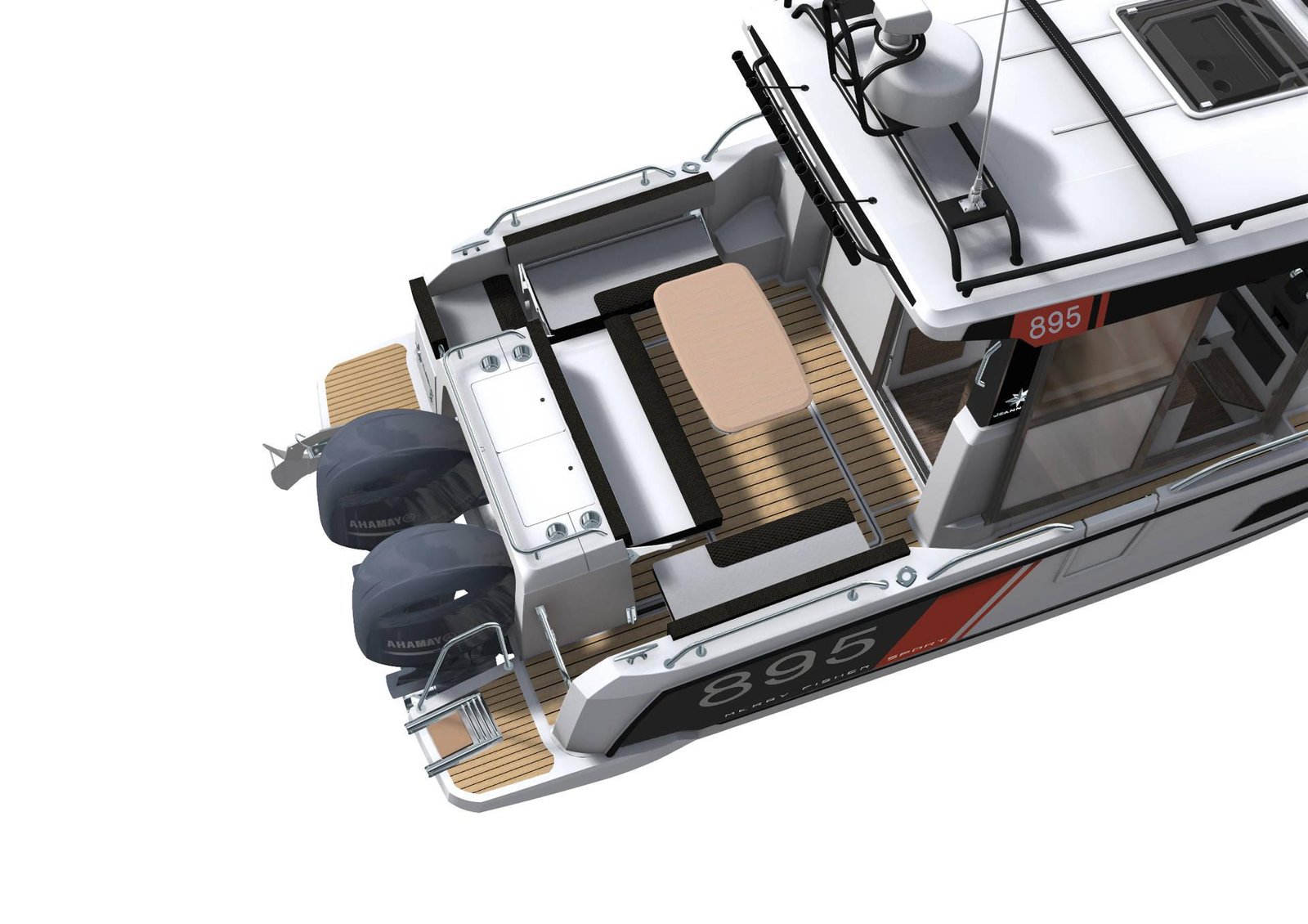 The Janneau Merry Fisher 895 Sport combines innovative design with exceptional performance, making it a standout in the world of motor yachts. Ideal for family outings or fishing adventures, this model offers versatility and comfort without compromising on style. With an overall length of 8.83 meters, it comfortably accommodates up to 8 guests during the day and provides sleeping arrangements for up to 4 people in its two well-appointed cabins. The yacht’s interior is designed to maximize space and light, featuring large windows that offer panoramic views and ample natural light. The cockpit is spacious and functional, equipped with a U-shaped seating area that easily converts into a sun deck for relaxation. The Merry Fisher 895 Sport is powered by twin outboard engines, providing a smooth and efficient ride. The standard engine option includes twin 200 HP outboards, capable of reaching a maximum speed of 35 knots and a cruising speed of around 22 knots. This ensures you have the power and speed necessary for a thrilling day on the water. Constructed from high-quality GRP, the hull is designed for planning, ensuring a stable ride even in choppy waters. Janneau’s in-house design team has crafted the exterior and interior to perfection, offering a seamless blend of functionality and aesthetics. With a fuel capacity of 400 liters, this yacht provides an impressive range, making it perfect for extended cruising trips. The Merry Fisher 895 Sport is an excellent choice for those seeking a practical yet luxurious boating experience. Its combination of performance, comfort, and style makes it a popular choice among boating enthusiasts.