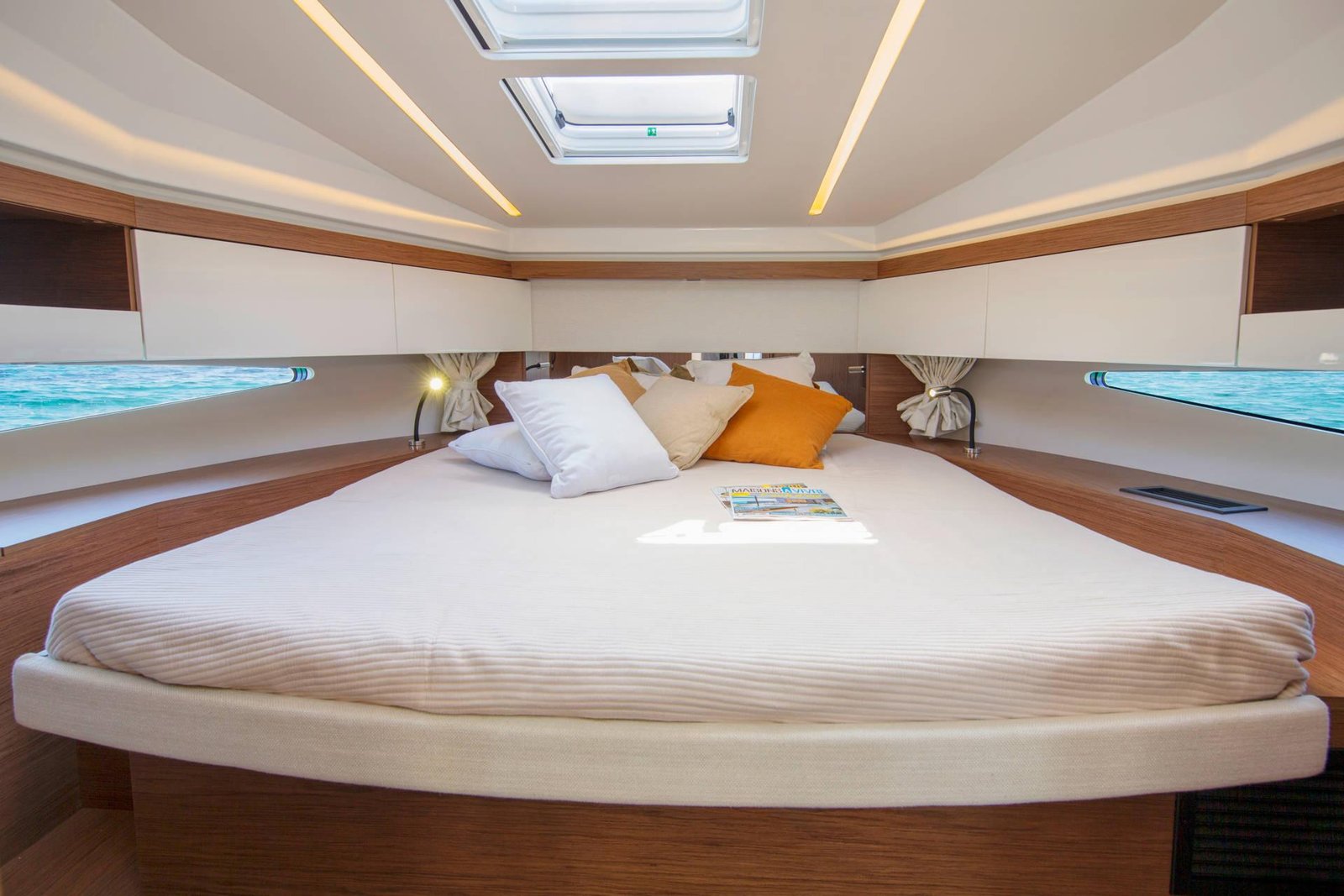 The Janneau NC 37 is a sophisticated motor yacht that embodies the perfect balance between comfort and performance. Designed primarily for family cruising, this model provides a spacious and luxurious experience on the water. With an overall length of approximately 11.92 meters (39 feet), the NC 37 offers an intelligent layout that maximizes space both inside and on deck. Its open-plan design makes it ideal for socializing and enjoying the sea views, with large windows flooding the interior with natural light. The yacht features two well-appointed cabins, providing accommodation for up to six guests, including convertible options in the saloon. The modern galley is fully equipped, making onboard dining a pleasure. Powered by twin Volvo Penta D4 engines, this model achieves a cruising speed of around 22 knots and can reach a maximum speed of 30 knots, delivering both efficiency and exhilarating performance. With a fuel capacity of 650 liters, the NC 37 offers a significant cruising range, perfect for extended voyages. The yacht’s hull is constructed from GRP, providing a robust yet lightweight structure that enhances its planning hull configuration for smooth and stable navigation. Designed by Jeanneau’s in-house team, the NC 37 stands out with its sleek exterior and stylish interiors, ensuring both functionality and elegance. The yacht is manufactured in France, reflecting a high standard of craftsmanship. With a new price starting around 300,000 euros, this model represents excellent value in its class. For those seeking a pre-owned option, used models range from 200,000 to 250,000 euros depending on condition and specifications.