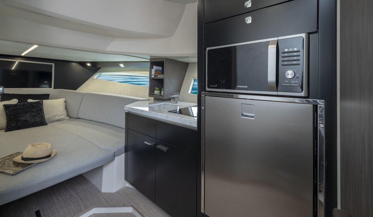 The Key Largo KL 40 stands as a testament to Italian craftsmanship and innovative yacht design. This open yacht is engineered for those who demand style, performance, and comfort on the water. With a length of 13.5 meters, the KL 40 seamlessly combines elegance and functionality, making it a perfect choice for day cruising or extended voyages. The vessel is constructed with a GRP hull, ensuring a lightweight yet sturdy build that accommodates its planning hull configuration. This design choice not only enhances the yacht’s speed and agility but also provides a smooth and stable ride even in choppy waters. Powered by twin inboard engines, the KL 40 delivers an impressive cruising speed of 28 knots, with the capability to reach a top speed of 40 knots, offering thrilling performance for speed enthusiasts. The spacious deck layout is designed for socializing, featuring ample seating and lounging areas that can comfortably host up to 12 guests during the day. Below deck, the yacht offers two well-appointed cabins, providing sleeping accommodations for up to four guests, making it ideal for weekend getaways. The interior reflects modern luxury, with high-quality materials and meticulous attention to detail evident in every corner. Designed by Key Largo’s in-house team, the KL 40 embodies the brand’s commitment to excellence in both form and function. With a fuel capacity of 1300 liters, the yacht offers a substantial cruising range, ensuring longer adventures without frequent refueling stops. The Key Largo KL 40 is not just a yacht; it’s a lifestyle statement for those who appreciate the finer things in life.