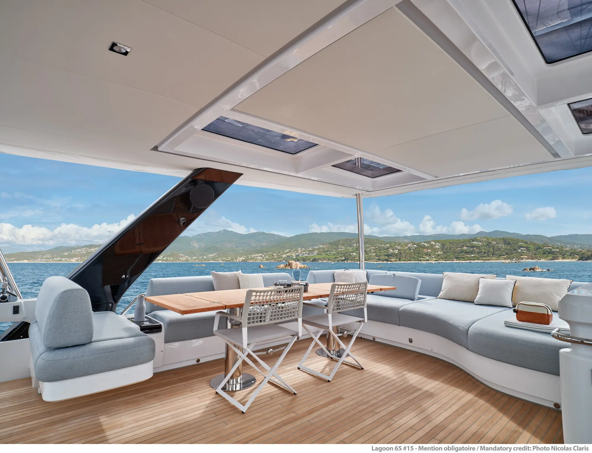 The Lagoon Sixty 5 is a pinnacle of luxury in the world of sailing catamarans, offering an exquisite blend of comfort, performance, and space. Designed by the renowned naval architecture team of VPLP Design, the Sixty 5 stands out with its sleek lines and innovative design features. The exterior, crafted by Patrick Le Quément, boasts a distinctive modern aesthetic that is both visually striking and functionally efficient. The interior, conceived by Nauta Design, provides an environment of unparalleled elegance, with spacious living areas that offer both privacy and a sense of openness. Measuring approximately 20.55 meters in length and with a beam of 10 meters, the Lagoon Sixty 5 offers ample space for relaxation and entertainment. The draft of 1.55 meters allows for easy access to shallow waters, expanding cruising possibilities. The yacht is powered by twin 150 HP engines, ensuring a smooth and reliable sailing experience. With a fuel capacity of 1,300 liters, the Sixty 5 is designed for extended voyages, offering a cruising range that caters to long-distance exploration. Inside, the catamaran can accommodate up to 8 guests in luxurious staterooms, supported by a crew of 2, ensuring a personalized and attentive service. The Lagoon Sixty 5 is not just a sailing vessel; it is a lifestyle choice for those who seek adventure without compromising on luxury. Priced at approximately 2,300,000 EUR new, with used models ranging from 1,700,000 to 2,000,000 EUR, the Sixty 5 represents a significant investment in maritime excellence.