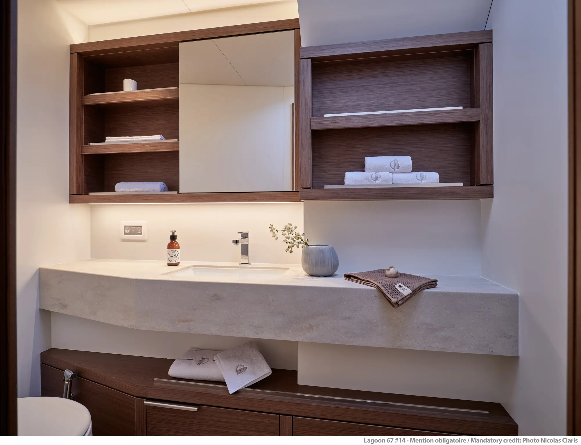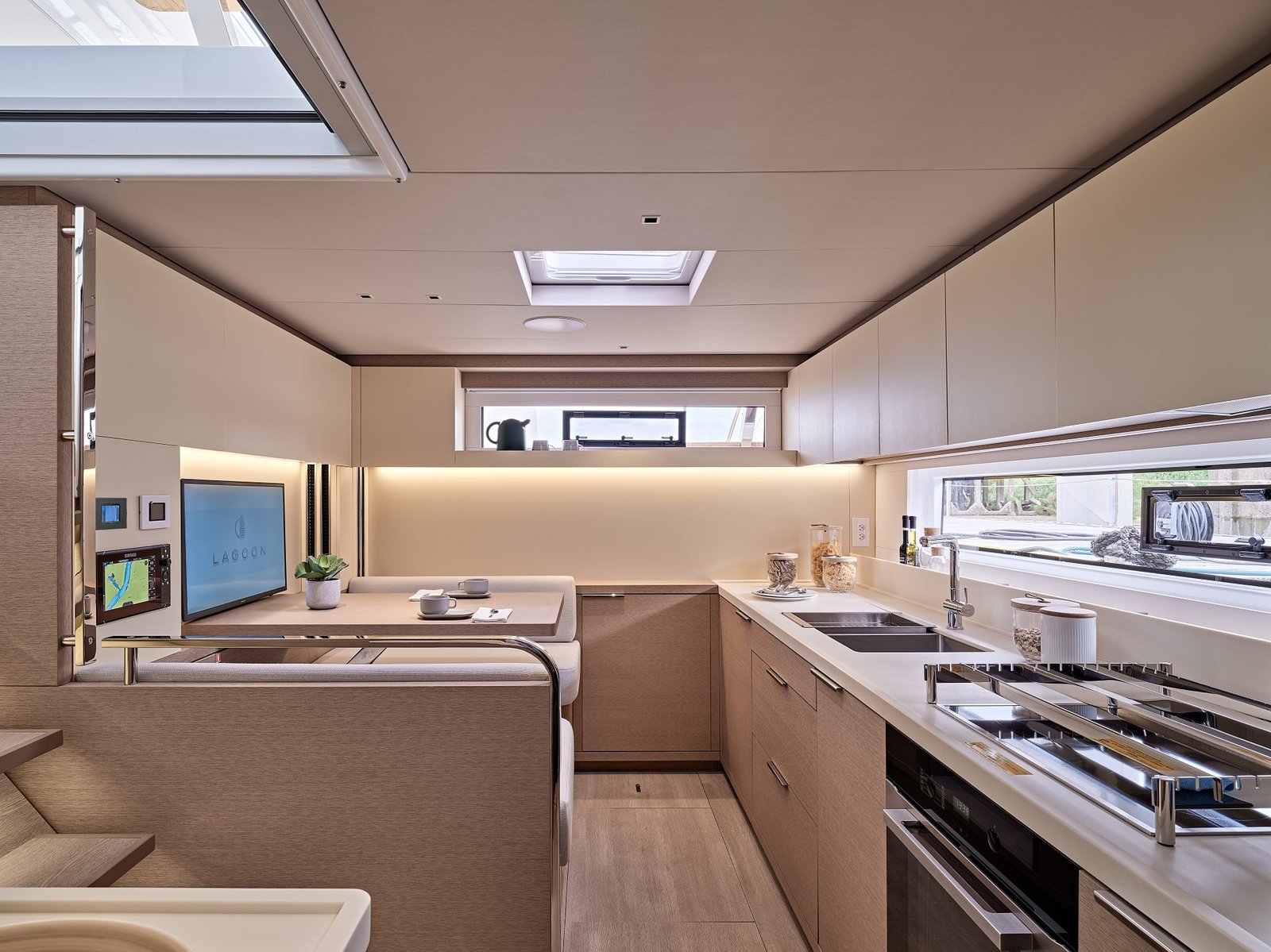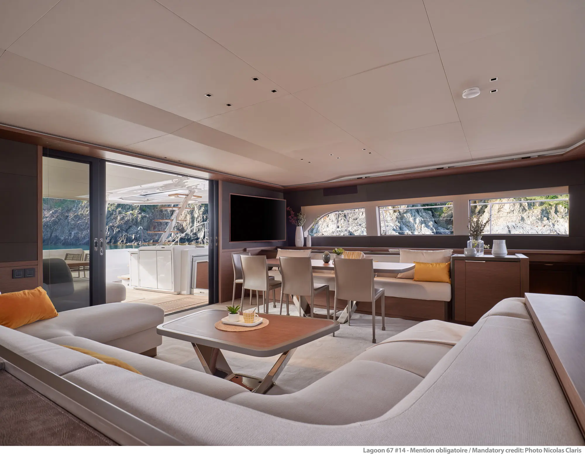 The Lagoon Sixty 7 is a sophisticated motor yacht that redefines luxury on the water, offering an exceptional blend of style, comfort, and performance. Measuring 20.15 meters in length, this elegant catamaran is designed for those who appreciate exquisite craftsmanship and an unparalleled yachting experience. With its expansive beam of 10 meters, the Sixty 7 provides ample space for relaxation and entertainment, featuring a spacious flybridge, a comfortable aft cockpit, and a luxurious main saloon. The interior, designed by Nauta Design, epitomizes modern elegance, with high-quality finishes and an abundance of natural light. The yacht offers several layout options to suit different needs, with the capacity to accommodate up to 8 guests in 4 well-appointed cabins, each with its own ensuite bathroom. Powered by twin Volvo D4 engines, the Lagoon Sixty 7 delivers a smooth and efficient cruising experience, capable of reaching a maximum speed of approximately 20 knots and a comfortable cruising speed of 12 knots. Its fuel capacity of 4,800 liters ensures extended voyages without frequent refueling. With naval architecture by VPLP Design and exterior styling by Patrick Le QuĂ©ment, the Sixty 7 is a testament to Lagoon’s commitment to innovation and quality. Whether you’re exploring remote islands or enjoying a leisurely cruise along the coast, the Lagoon Sixty 7 offers a luxurious and unforgettable yachting experience.