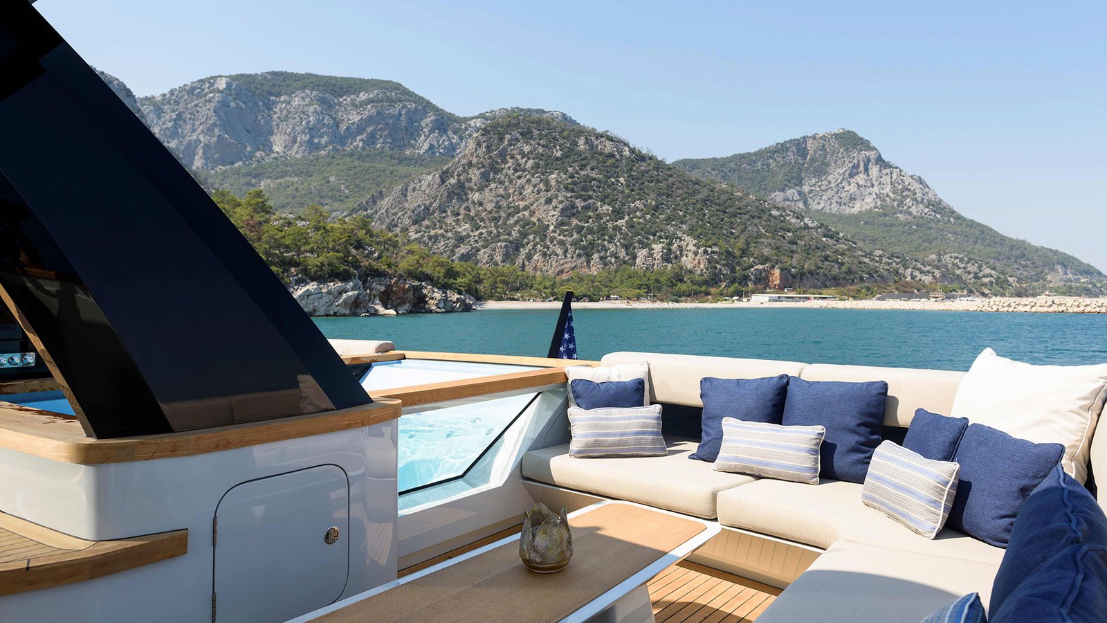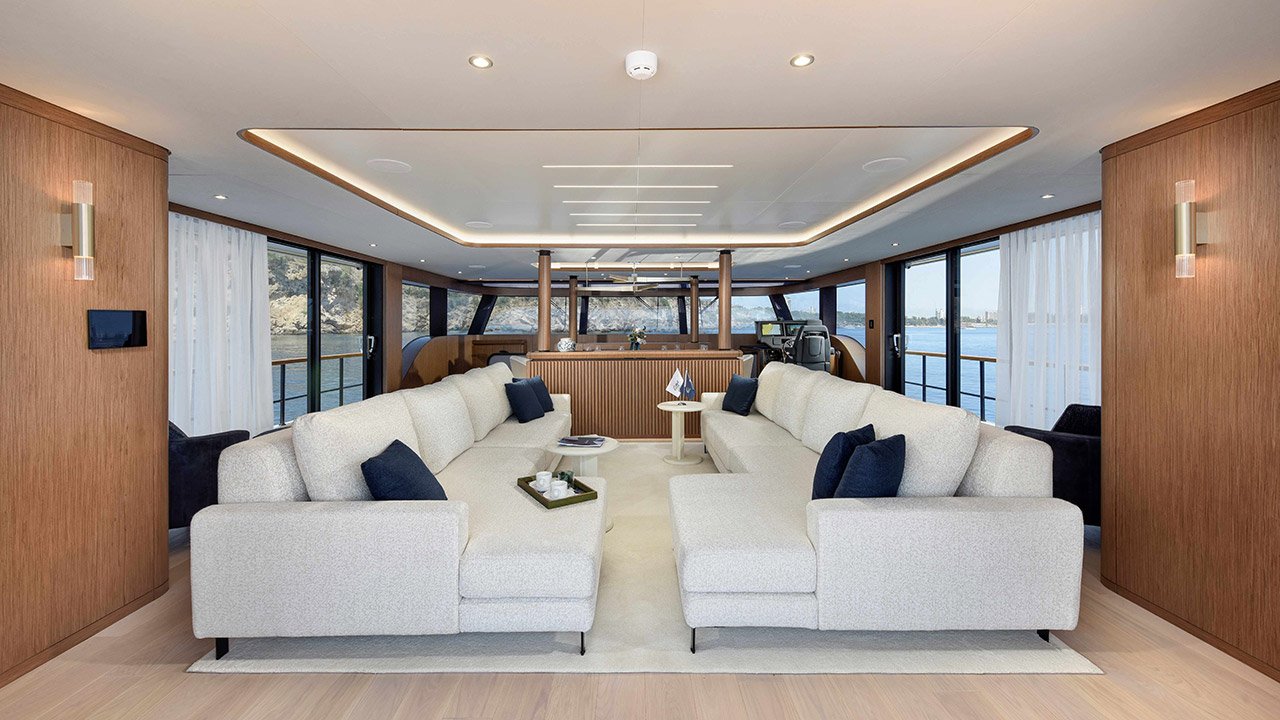 The Lazzara LPC 300 stands as a testament to modern yacht design, seamlessly blending luxury, style, and performance. Measuring approximately 22 meters in length, this stunning vessel offers an impressive combination of space and comfort, making it an ideal choice for those seeking an elevated yachting experience. Its sleek exterior, crafted from durable GRP, showcases the visionary work of Lazzara’s in-house design team, ensuring that every curve and line enhances both aesthetics and aerodynamics. The yacht’s planning hull configuration allows for smooth and efficient cruising, making it perfect for both leisurely voyages and adventurous explorations.