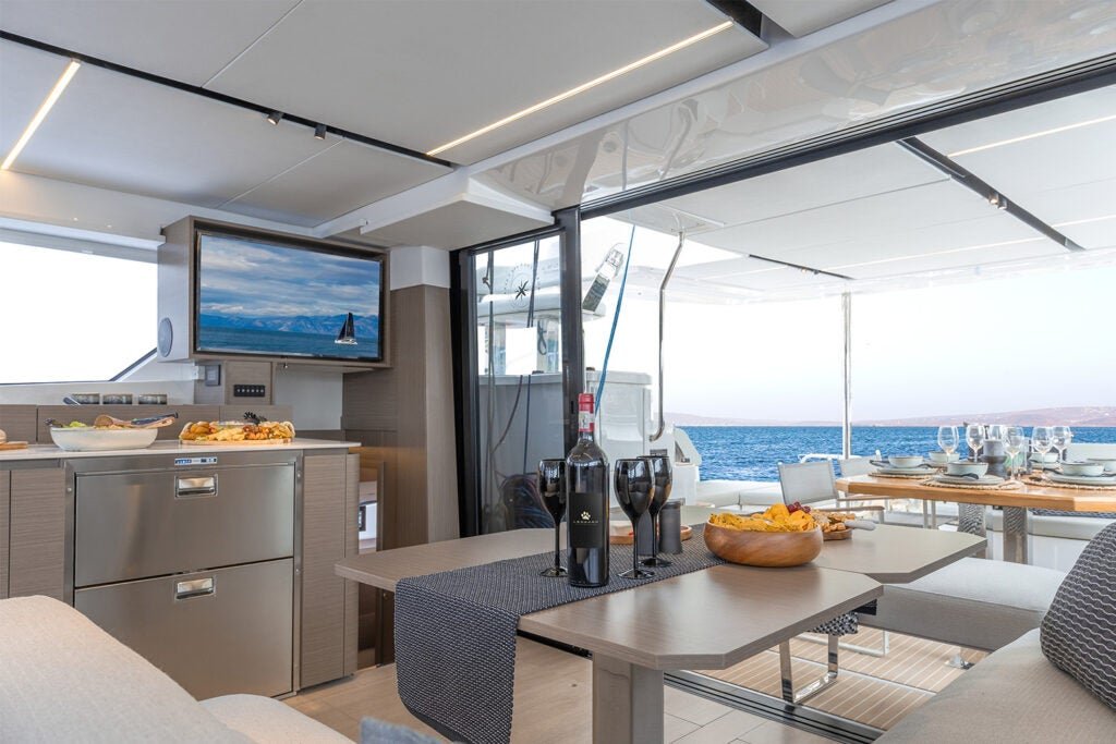 The Leopard 46 is a stunning catamaran that embodies a perfect blend of luxurious comfort and high-seas performance. Manufactured by Leopard, a brand known for its quality and innovation, this model is crafted to enhance your cruising experience. With a length of 14 meters, the Leopard 46 offers expansive living spaces that are both functional and elegant. The open-plan saloon and galley are flooded with natural light, providing a welcoming environment for relaxation and entertainment. The yacht features four spacious cabins, each with en-suite facilities, ensuring privacy and comfort for all guests. Designed by a team of expert naval architects and interior designers, the Leopard 46 boasts sleek lines and a contemporary aesthetic. The hull is constructed of GRP, contributing to its lightweight yet robust structure. The catamaran is powered by twin inboard engines, offering a cruising speed of 8 knots and a maximum speed of 10 knots, which ensures a smooth and efficient journey. The Leopard 46 is equipped with ample fuel capacity, allowing for extended range and long-distance cruising without compromise. With a beam of 7.57 meters, the yacht offers stability and spacious deck areas perfect for sunbathing and socializing. Whether navigating coastal waters or exploring distant destinations, the Leopard 46 promises a superior sailing experience. With its thoughtful design and attention to detail, this yacht is a testament to Leopard’s commitment to excellence and luxury.