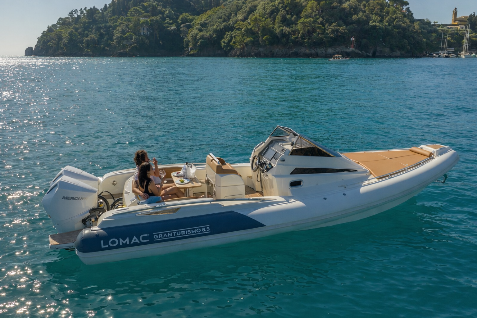 The Lomac GranTurismo 8.5 is an exceptional RIB (Rigid Inflatable Boat) that combines luxury, performance, and versatility. Crafted by the renowned Italian shipyard Lomac, this model is designed for those who appreciate both style and functionality in their maritime adventures. Measuring approximately 8.5 meters in length, the GranTurismo 8.5 offers ample space and comfort for up to 12 passengers, making it perfect for family outings or entertaining friends on the water. The hull is constructed from high-quality GRP, ensuring durability and a smooth ride, while the inflatable tubes provide stability and safety. Under the hood, the GranTurismo 8.5 is equipped with a powerful outboard engine option, typically featuring twin Mercury Verado 250 HP engines, which deliver impressive performance and a thrilling experience on the open sea. The boat’s planning hull configuration allows it to reach a maximum speed of around 50 knots, with a comfortable cruising speed of 30 knots. This makes it ideal for both long-distance cruising and exhilarating high-speed runs. The exterior design of the GranTurismo 8.5 is sleek and modern, with ergonomic seating and a well-laid-out cockpit that enhances comfort and usability. The interior offers a small but practical cabin space, providing shelter and storage for personal belongings. Designed with the discerning boater in mind, the Lomac GranTurismo 8.5 stands out as a premium choice for those who demand excellence in their marine experiences. With a fuel capacity of 400 liters, the GranTurismo 8.5 offers a considerable range for extended voyages, ensuring that your adventures are only limited by your imagination.