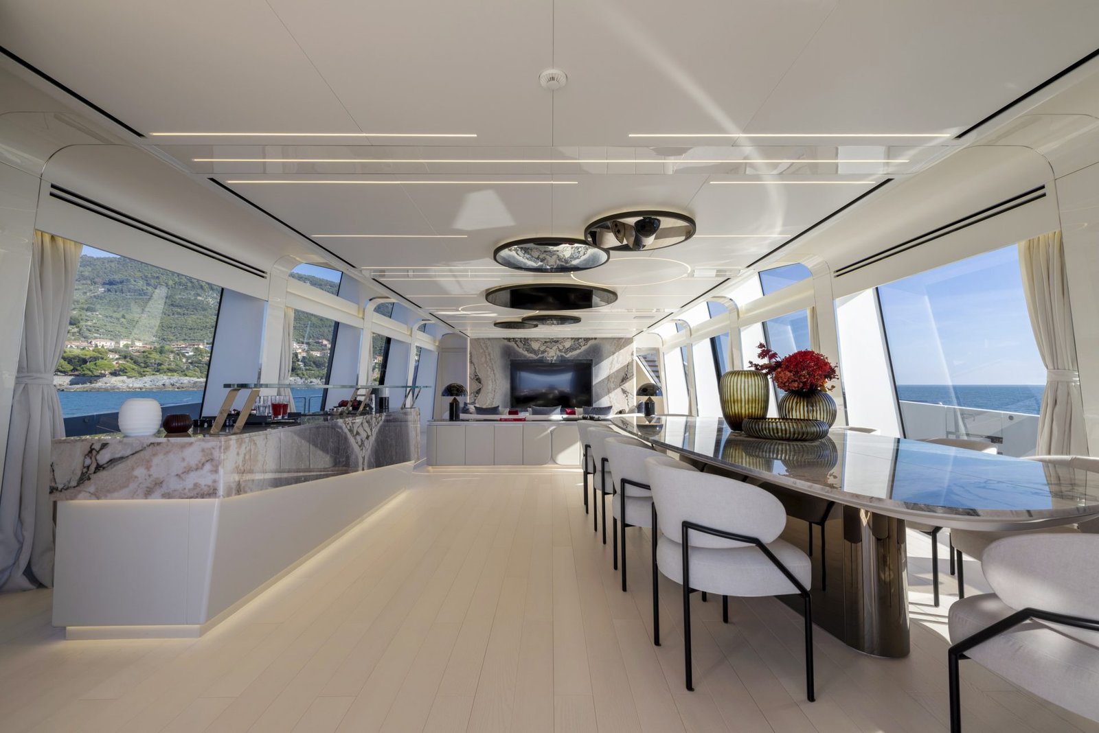 The Mangusta 165 REV, a pinnacle of nautical design and performance, represents a new era in luxury yachting. Designed by the renowned Alberto Mancini, this yacht combines elegant aesthetics with cutting-edge technology, offering a seamless cruising experience. Measuring approximately 50 meters in length, the Mangusta 165 REV is engineered for both speed and comfort, making it ideal for long-range voyages. Its sleek, streamlined profile is complemented by a spacious interior, designed by Overmarine Group, which features a blend of modern and classic elements to create an inviting, sophisticated ambiance. The yacht accommodates up to 12 guests in six well-appointed cabins, ensuring a luxurious stay for all aboard. Powered by state-of-the-art engines, the Mangusta 165 REV can reach impressive speeds, with a cruising speed of 30 knots and a top speed of up to 34 knots, making it one of the fastest yachts in its class. The naval architecture and engineering, executed by Overmarine Group, ensure that the vessel not only performs at high speeds but also maintains stability and safety. With a fuel capacity designed for extended journeys, this yacht offers a range that allows for transatlantic travel without sacrificing comfort. The Mangusta 165 REV is a testament to Italian craftsmanship, where every detail is meticulously crafted to provide an unparalleled yachting experience. Its exterior spaces offer ample relaxation areas, including a sun deck with a jacuzzi and a spacious beach club, perfect for enjoying the sea breeze. For those seeking an extraordinary blend of luxury, speed, and style, the Mangusta 165 REV stands as a beacon of marine excellence.