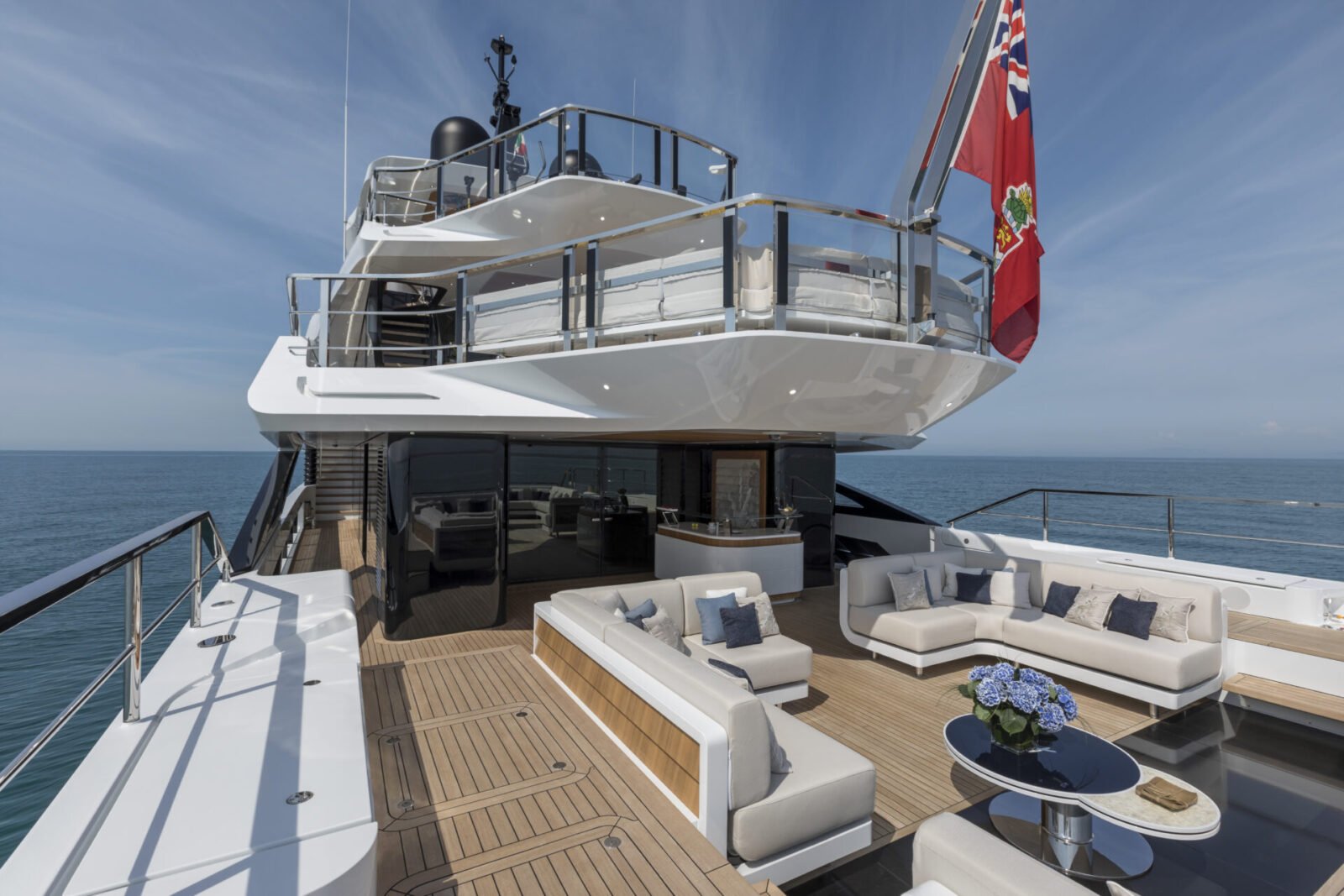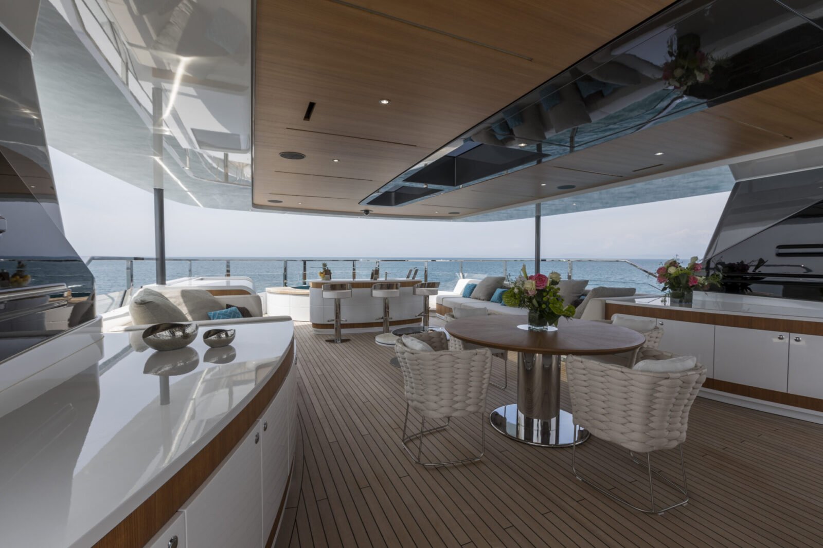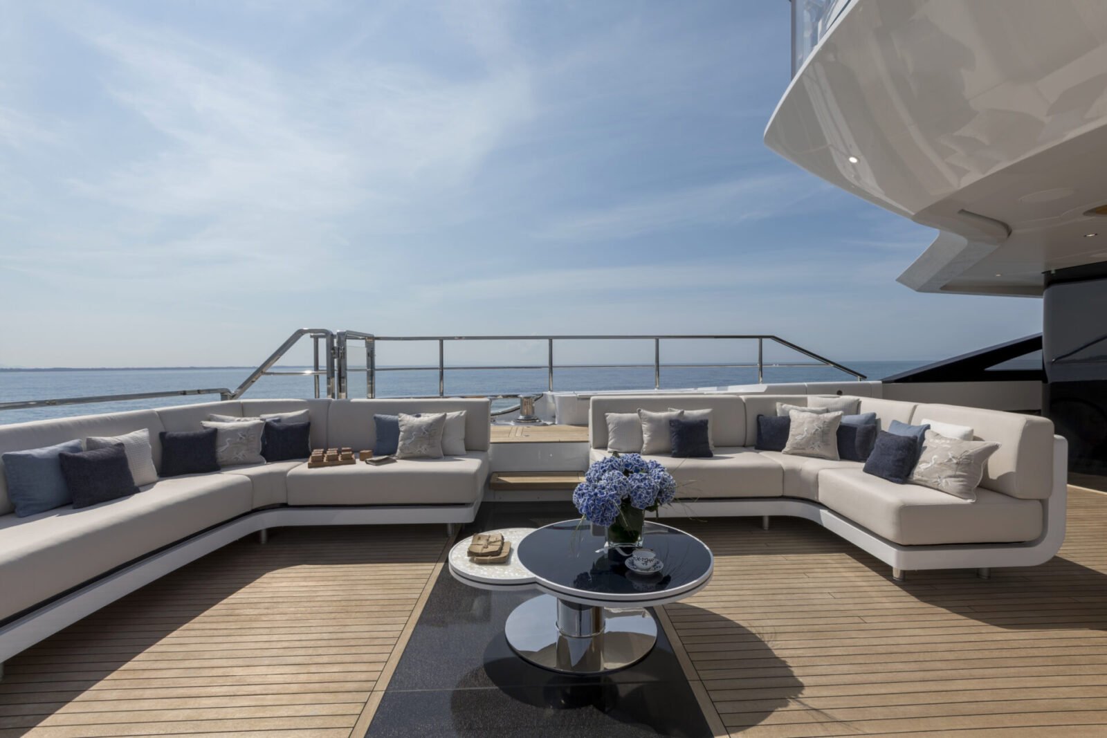 Accommodation on board is luxurious and spacious, with room for up to 12 guests across five lavish cabins, including a full-beam owner’s suite. The yacht also accommodates a crew of 11, ensuring a high level of service and attention to detail. The Oceano 50 offers an array of amenities, such as a beach club, a jacuzzi, and multiple dining and lounging areas, providing a seamless blend of indoor and outdoor living. This yacht is not just a means of transport, but a statement of elegance and sophistication, setting a new standard in the luxury yachting industry.