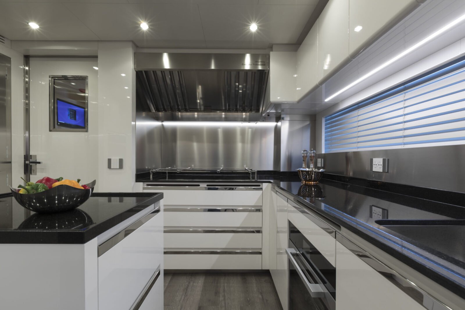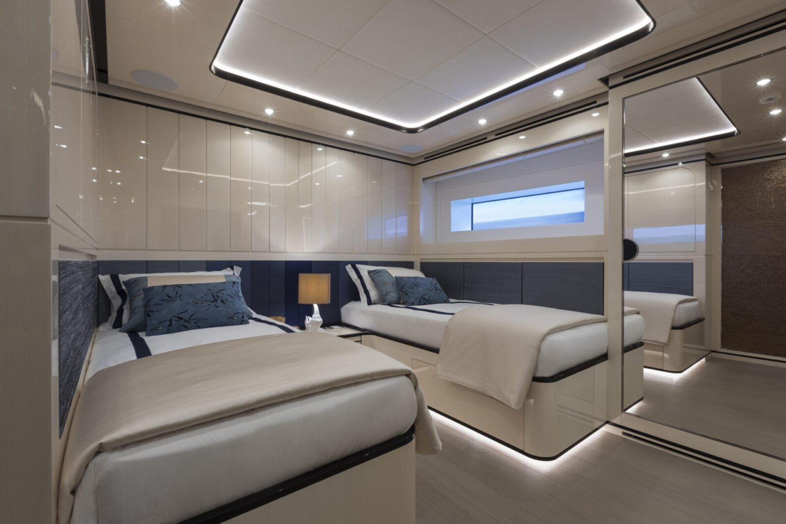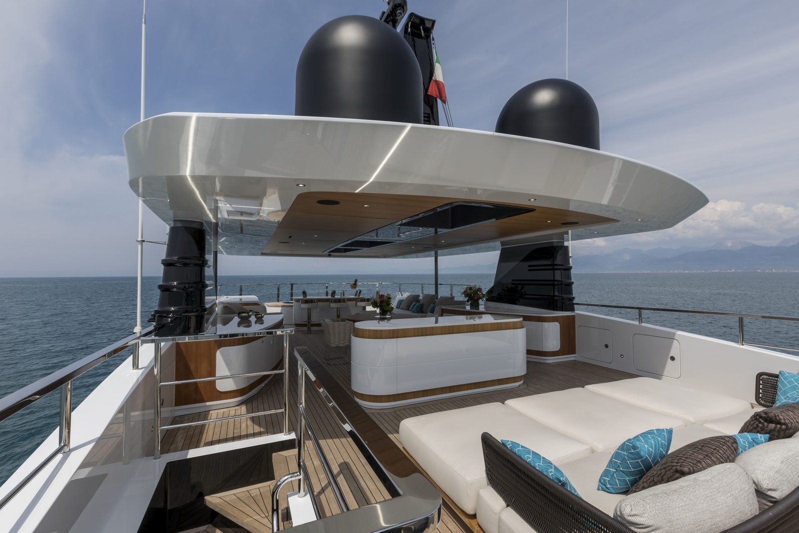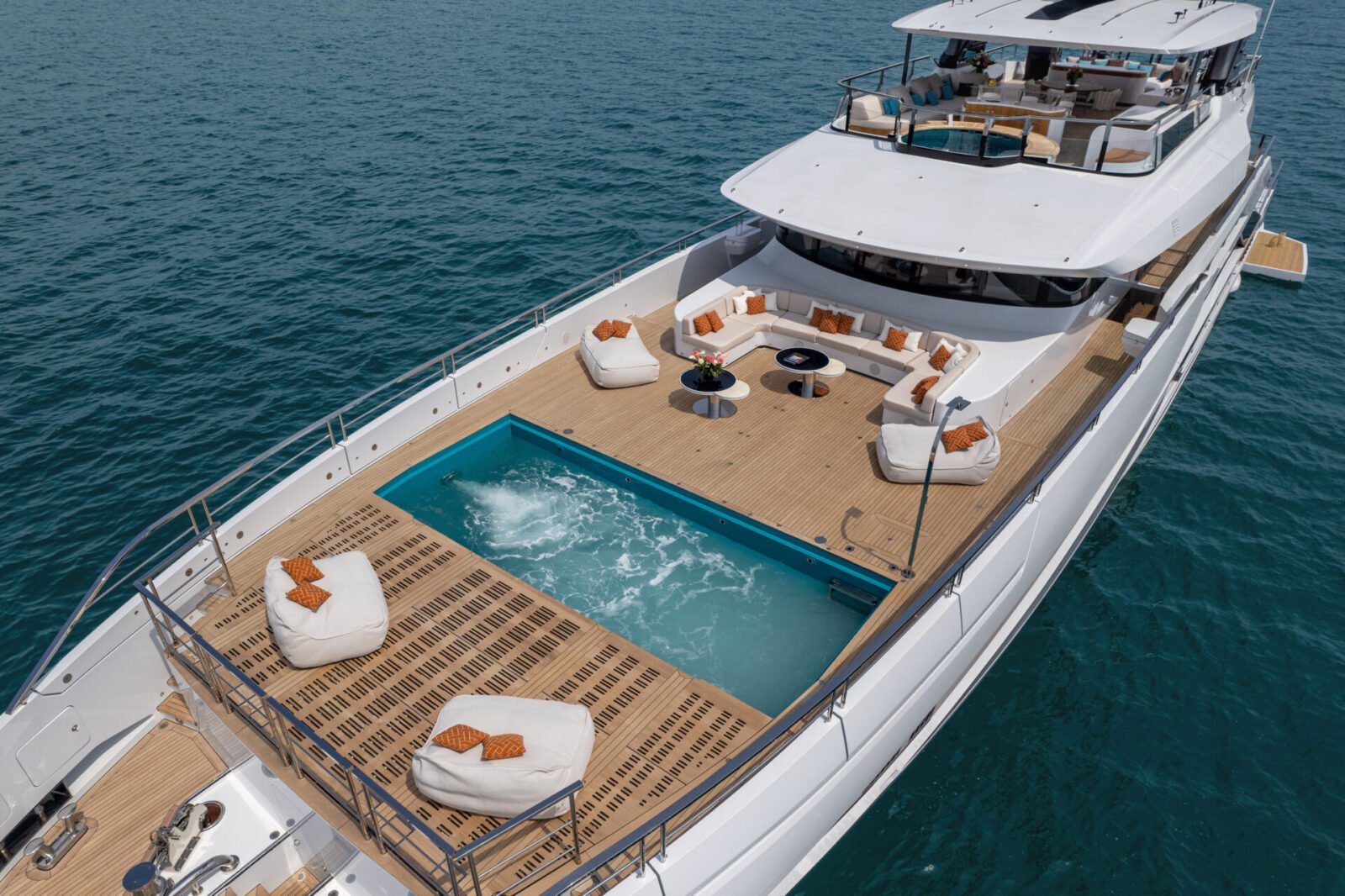 Accommodation on board is luxurious and spacious, with room for up to 12 guests across five lavish cabins, including a full-beam owner’s suite. The yacht also accommodates a crew of 11, ensuring a high level of service and attention to detail. The Oceano 50 offers an array of amenities, such as a beach club, a jacuzzi, and multiple dining and lounging areas, providing a seamless blend of indoor and outdoor living. This yacht is not just a means of transport, but a statement of elegance and sophistication, setting a new standard in the luxury yachting industry.