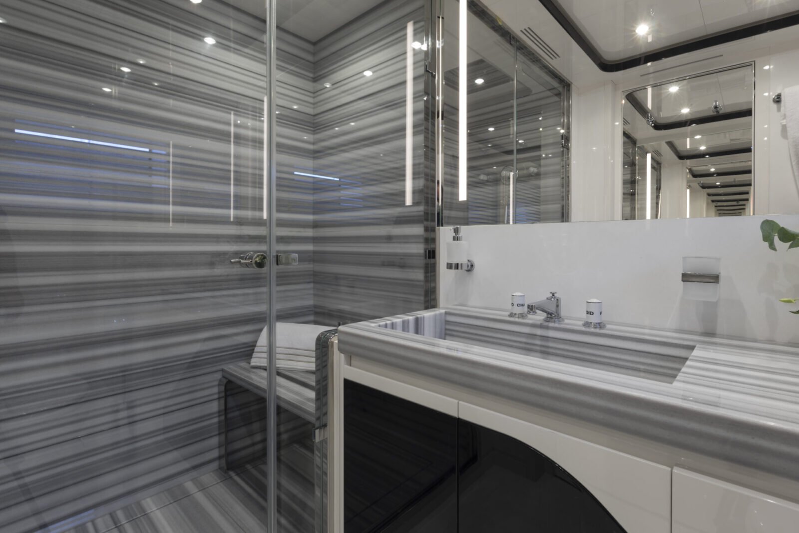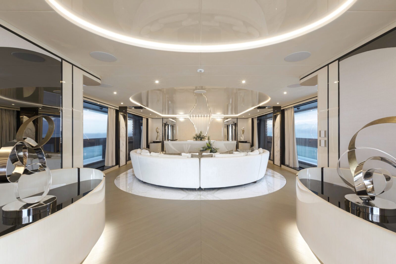 The Mangusta Oceano 50 is an exemplary model in the world of luxury yachts, showcasing an innovative design and unmatched craftsmanship by the renowned Italian shipyard, Mangusta. This tri-deck yacht measures 49.9 meters in length, providing ample space for socializing and relaxation. Designed by Alberto Mancini, the exterior boasts sleek lines and a striking profile that is both contemporary and timeless. The interior design, executed by Overmarine Group’s in-house team, reflects a modern yet cozy ambiance, allowing for personalization to suit the owner’s tastes.