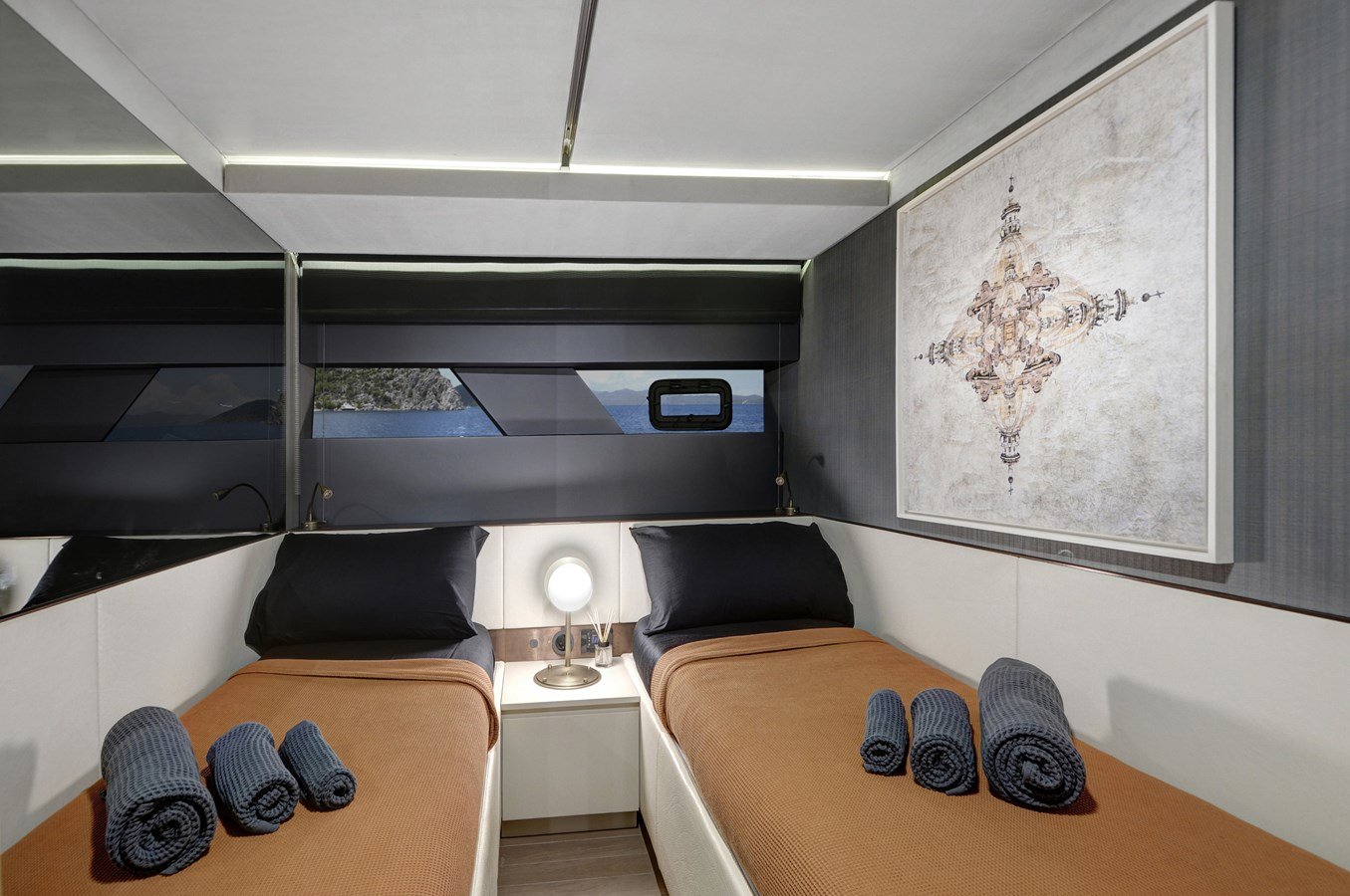 The interior of the Mazu 82 is a masterpiece of contemporary design, offering a luxurious and comfortable environment. Designed to accommodate up to 8 guests, it features two spacious cabins, each with en-suite facilities, ensuring privacy and relaxation. The open-plan salon is elegantly appointed with high-quality materials and state-of-the-art amenities, creating a perfect space for socializing and entertaining.