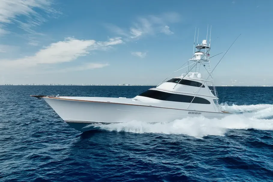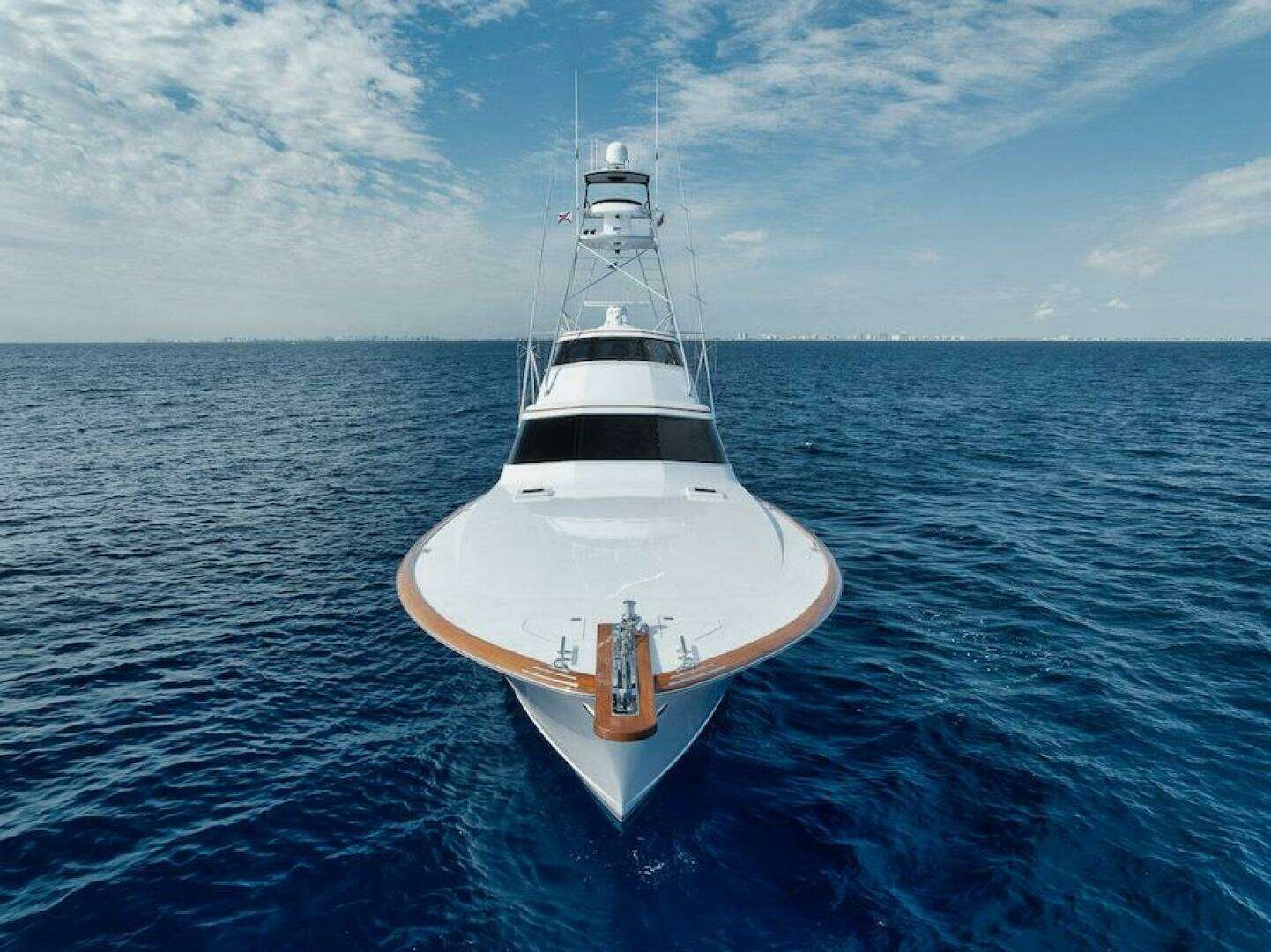 The Merritt 86′ Enclosed Flybridge Sportfish is the epitome of craftsmanship and performance in the world of sportfishing yachts. This vessel stands out with its sleek design, impressive capabilities, and luxurious amenities. Built by the renowned Merritt, this 86-foot yacht is engineered to deliver both power and comfort, making it an ideal choice for serious anglers who also appreciate the finer things in life. The enclosed flybridge provides a commanding view and protection from the elements, while the spacious cockpit is designed with fishing enthusiasts in mind, featuring ample space and state-of-the-art equipment. Inside, the yacht boasts a sumptuous interior with elegant finishes and modern conveniences. The salon is a haven of relaxation, offering plush seating and entertainment options. The galley is fully equipped for gourmet meals, and the dining area is perfect for hosting guests in style. Accommodations on board include multiple staterooms, providing sleeping quarters for up to eight guests, with each cabin meticulously designed for maximum comfort. The Merritt 86′ is powered by twin inboard engines, delivering a cruising speed of 30 knots and a top speed of 35 knots, ensuring quick and efficient travel to the best fishing spots. With a robust fuel capacity, this yacht offers a substantial range, making it suitable for extended voyages. Whether on a short excursion or a long-distance adventure, the Merritt 86′ Enclosed Flybridge Sportfish promises an unforgettable experience, combining performance, luxury, and style in one exceptional package.