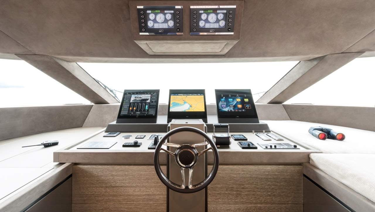 The Monte Carlo Yachts MCY 96 represents the pinnacle of modern luxury yacht design, seamlessly integrating the timeless elegance and innovative spirit that the brand is renowned for. This stunning vessel, with its sleek and sophisticated lines, is a testament to the craftsmanship and attention to detail that defines Monte Carlo Yachts. With a length of 29.26 meters, the MCY 96 offers ample space for relaxation and entertainment, featuring a spacious flybridge, expansive outdoor areas, and luxurious interiors designed to the highest standards. The yacht can comfortably accommodate up to eight guests in four exquisitely appointed cabins, each boasting its own en-suite bathroom and state-of-the-art amenities. The main salon is a masterpiece of contemporary design, blending elegance and functionality to create a welcoming and serene environment. Powered by twin MTU 16V 2000 M86 engines, the MCY 96 delivers a maximum speed of 27 knots, with a cruising speed of 21 knots, allowing for smooth and efficient navigation across the open seas. The yacht’s advanced naval architecture, crafted by Monte Carlo Yachts’ in-house team, ensures a stable and comfortable journey, even in challenging conditions. With a fuel capacity of 11,000 liters, the MCY 96 is well-equipped for extended voyages, offering a range of approximately 1,500 nautical miles. As a signature of Monte Carlo Yachts, the MCY 96 combines innovative technology with Italian style, offering a truly exceptional yachting experience.