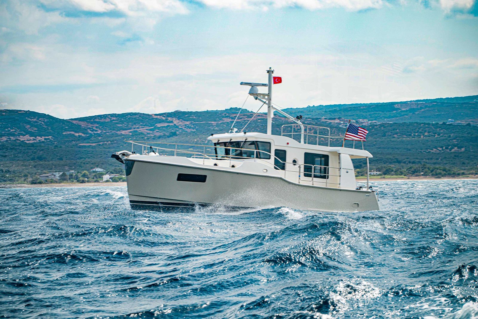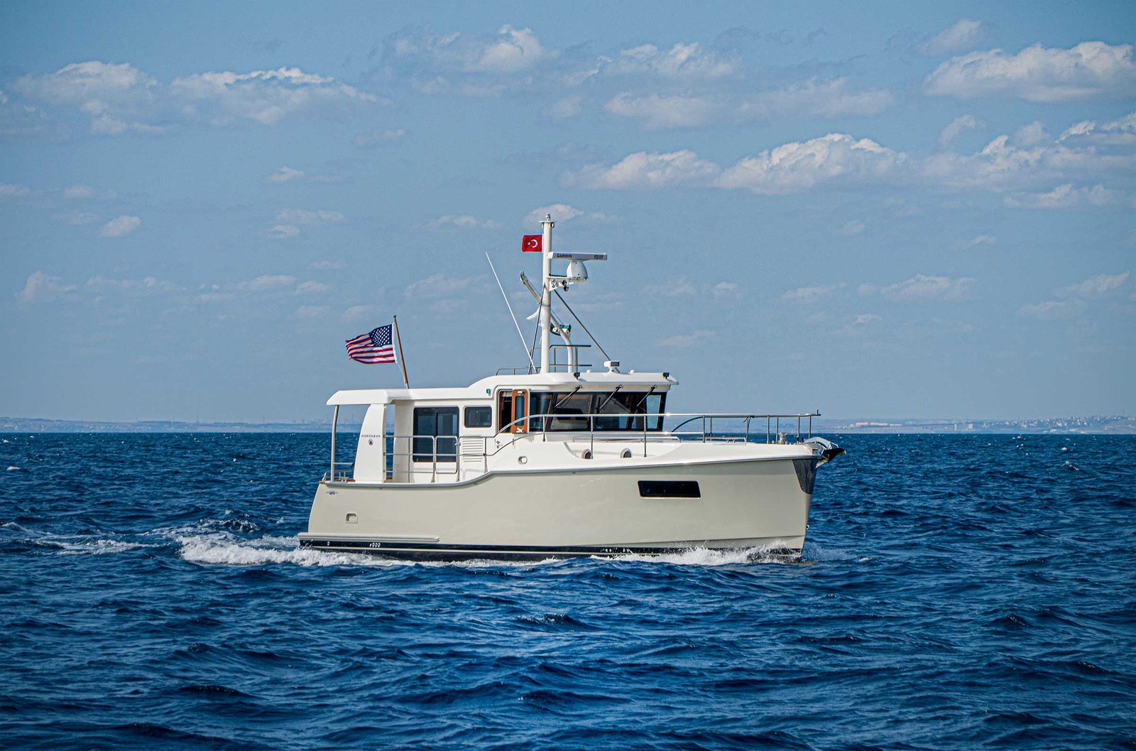 The Nordhavn 41 is a testament to modern maritime engineering, offering an unparalleled combination of efficiency, comfort, and capability. Designed for long-range cruising, this trawler stands out with its robust construction and attention to detail, ensuring that it can handle the open seas with ease. Measuring 12.52 meters in length, the Nordhavn 41 is engineered with a full-displacement hull that promises a smooth and stable ride, even in rough waters. This yacht is powered by twin Beta Marine diesel engines, each delivering 75 HP, allowing for a cruising speed of 7 knots and a maximum speed of 9 knots. With a fuel capacity of 1,514 liters, it offers a remarkable range, making it ideal for extended voyages without frequent refueling stops.