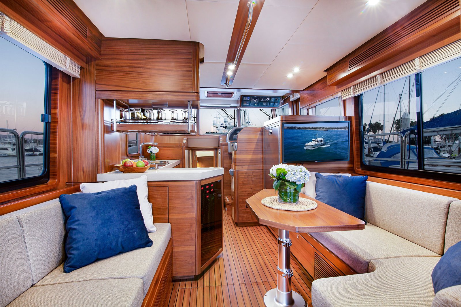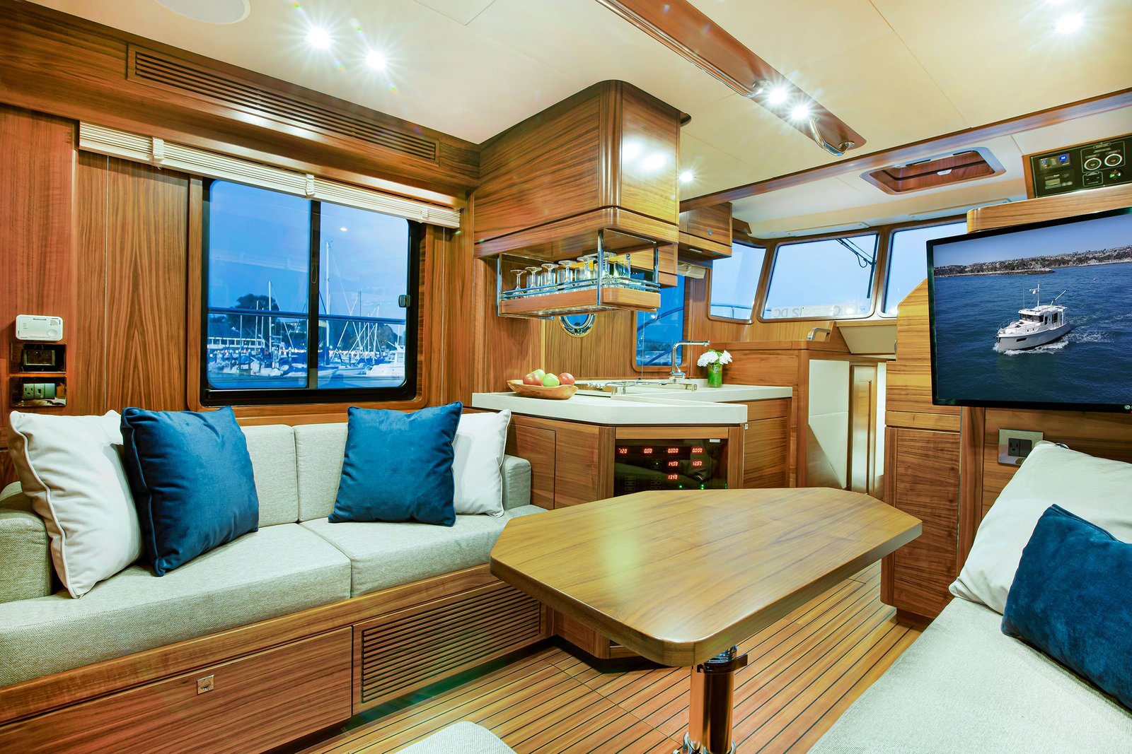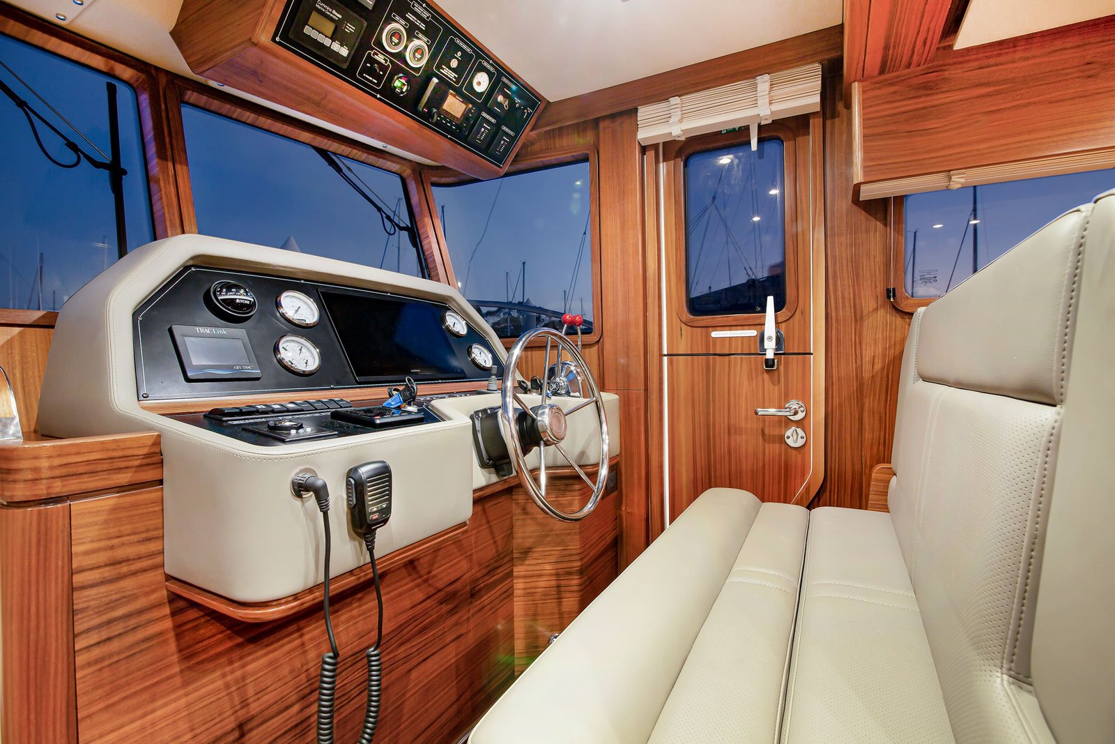 The exterior design is both practical and elegant, with a spacious aft deck and walk-around side decks that ensure safety and ease of movement. Equipped with state-of-the-art navigation and communication systems, the Nordhavn 41 ensures that you are always in control, no matter the journey. Whether you’re planning a coastal cruise or an ocean-crossing adventure, the Nordhavn 41 is your perfect companion, offering unmatched reliability and comfort.
