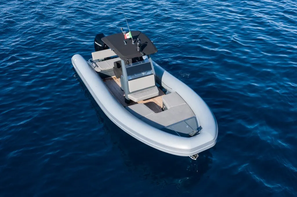 The Novamarine RH 800 is a remarkable RIB (Rigid Inflatable Boat) that seamlessly combines versatility, performance, and durability, making it an ideal choice for both leisure and professional maritime activities. With a length of 8 meters, this model stands out for its robust construction and superior handling capabilities, ensuring a smooth and stable ride even in challenging sea conditions. Designed and crafted in Italy, the RH 800 embodies the high standards and attention to detail synonymous with Italian marine engineering. The hull is constructed from high-quality GRP, providing strength and resilience while maintaining a lightweight structure that enhances speed and fuel efficiency. Powering the RH 800 is a reliable inboard engine option, typically featuring a diesel-powered unit that delivers impressive speed and efficiency. With a cruising speed of around 30 knots and a maximum speed of up to 45 knots, the RH 800 ensures swift and exhilarating voyages. It is equipped to accommodate up to 8 guests comfortably, making it perfect for family outings or small group excursions. The RH 800’s design highlights include a spacious deck layout with comfortable seating, ample storage space, and optional customizations to suit specific needs. Whether you’re seeking a vessel for recreational cruising, water sports, or even as a tender for a larger yacht, the Novamarine RH 800 provides unmatched versatility and performance. The attention to detail in its design, combined with its robust performance capabilities, makes it a standout choice in the RIB category, appealing to a wide range of boating enthusiasts.
