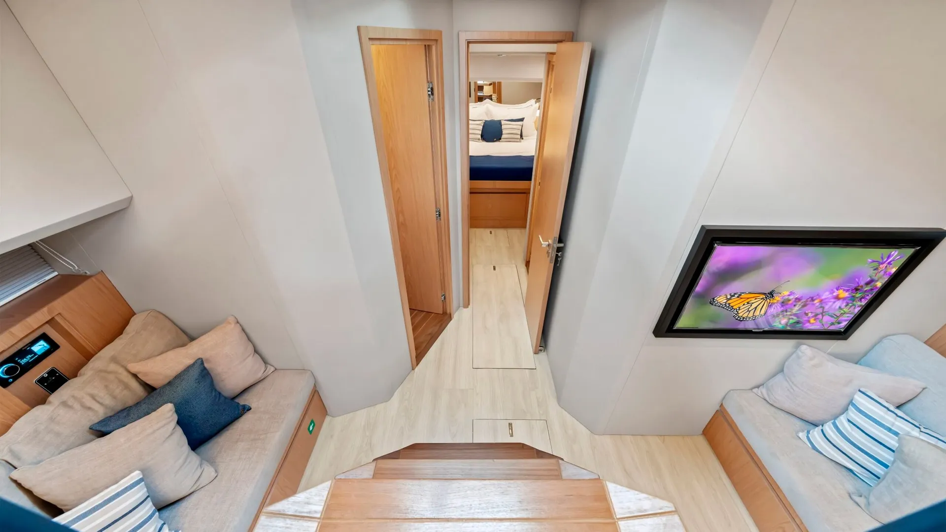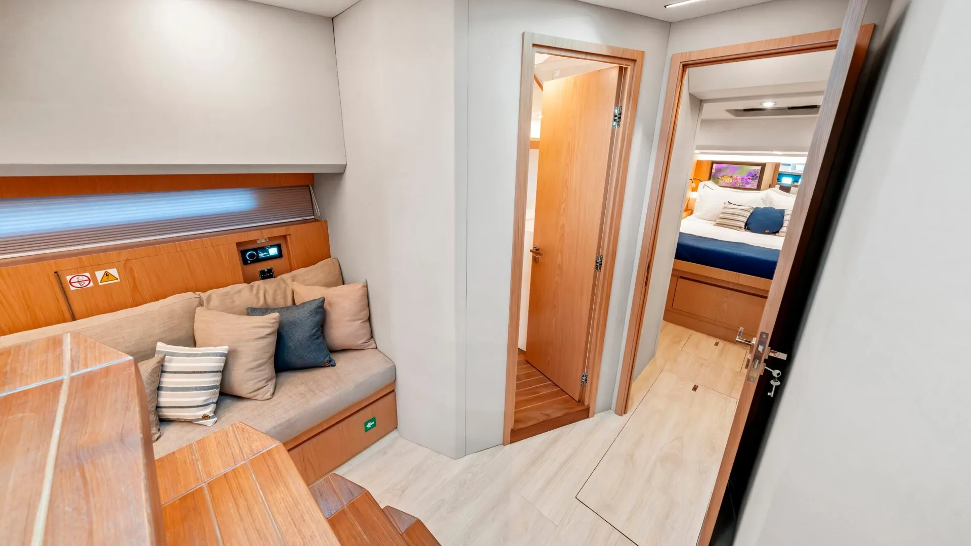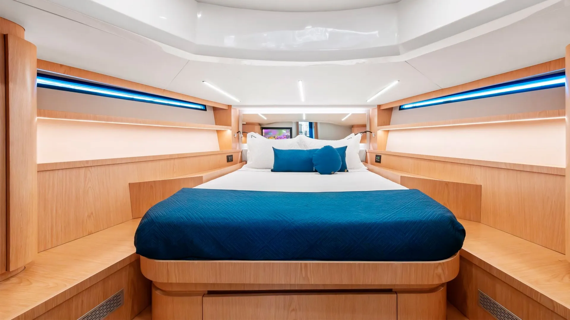 Powered by efficient inboard engines, the Okean 57 delivers a cruising speed of 24 knots and a maximum speed of 30 knots, ensuring swift and comfortable travel. With a fuel capacity of 2,400 liters, it boasts an impressive range for extended voyages. Accommodating up to 8 guests in 2 well-appointed cabins, this yacht also provides ample space for a crew of 1, ensuring personalized service and attention to detail.