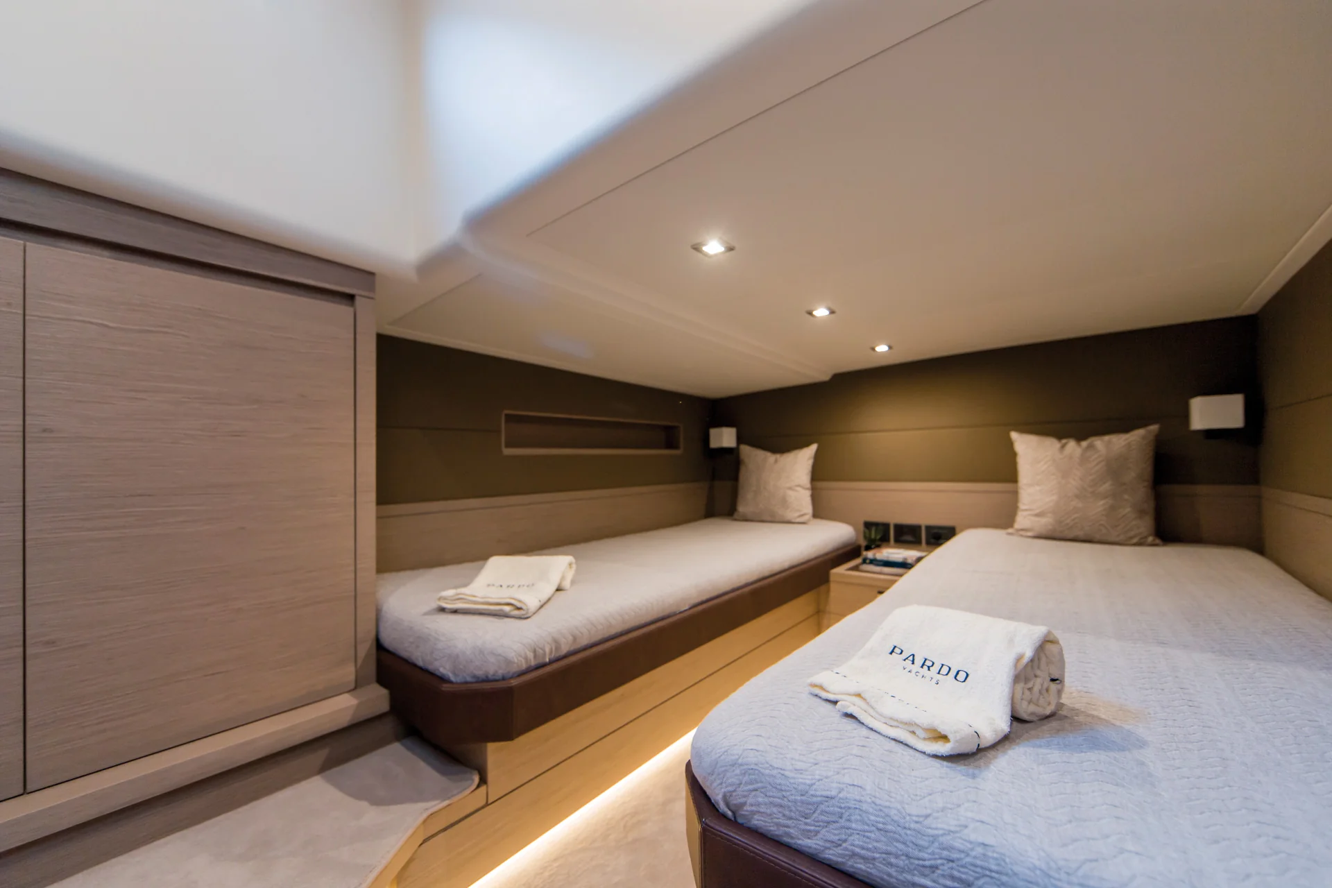 The yacht is equipped with powerful Volvo Penta IPS engines, offering a choice between the IPS 600 or IPS 700, ensuring a smooth and efficient ride. The Pardo 50 can reach a maximum speed of 35 knots and has a comfortable cruising speed of 25 knots, making it ideal for both short coastal trips and longer journeys. With a fuel capacity of 2000 liters, it promises an impressive range for extended cruising.