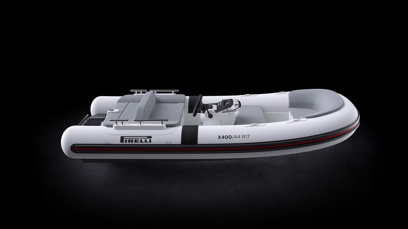 The Pirelli X400 is a marvel of modern marine engineering, merging cutting-edge technology with luxurious design to offer an unparalleled boating experience. Measuring approximately 3,9 meters in length, this RIB (Rigid Inflatable Boat) is crafted with precision to provide both comfort and performance. The X400’s design is characterized by sleek lines and a sporty profile, making it a head-turner in any marina. Built with a GRP hull, the boat is robust yet lightweight, allowing it to navigate through waters with ease and agility.