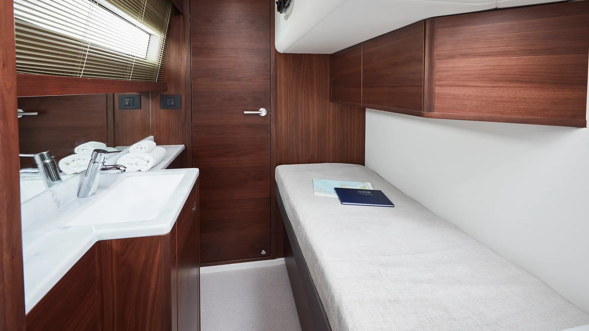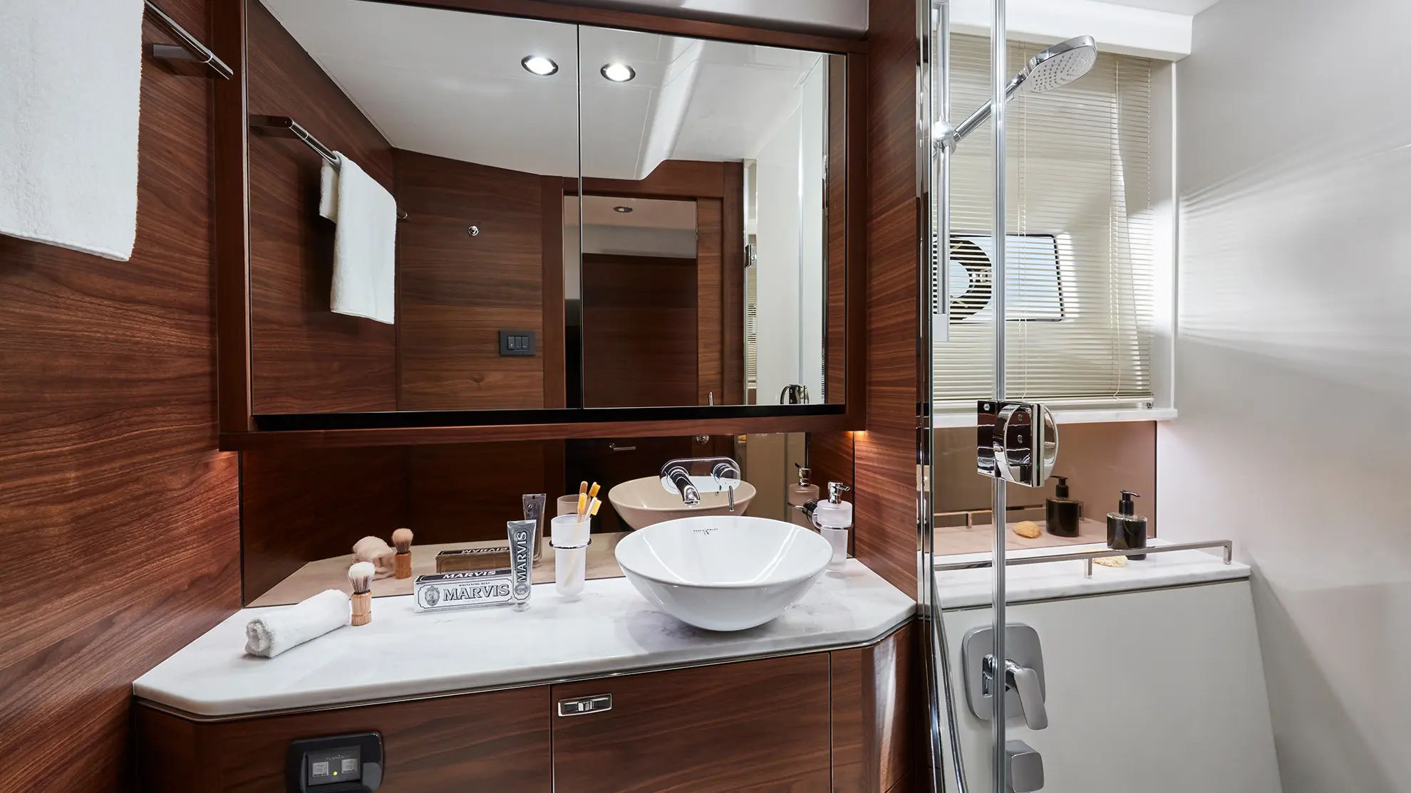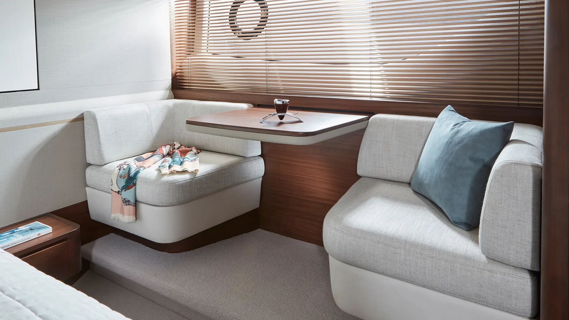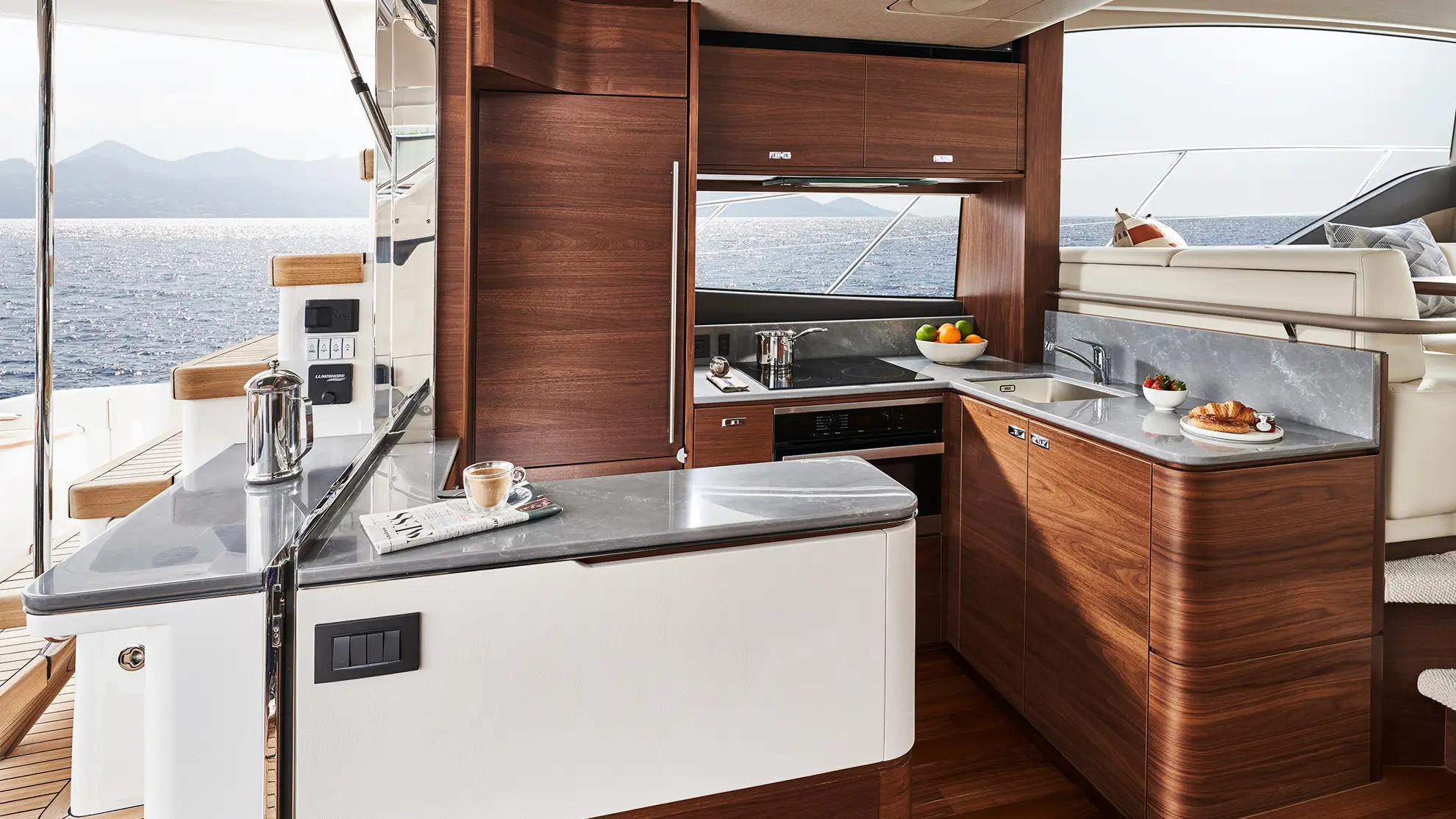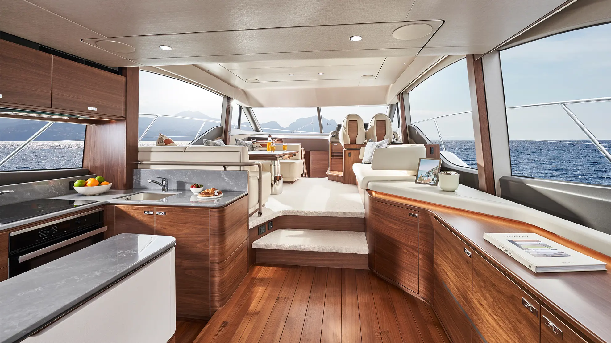 The Princess F55 is a stunning embodiment of luxury and performance, meticulously crafted by Princess Yachts to deliver an unparalleled cruising experience. With a length of 17.6 meters, the F55 is designed to offer a harmonious blend of style, comfort, and functionality. Its sleek profile and sophisticated lines are complemented by a spacious flybridge, providing an exceptional vantage point for enjoying the open sea. The yacht is powered by twin Volvo D13-800 engines, ensuring a smooth and powerful ride, with a cruising speed of 24 knots and a maximum speed of 33 knots. Inside, the F55 boasts a beautifully appointed interior, featuring the finest materials and craftsmanship. The main deck offers an expansive saloon with panoramic windows, a fully equipped galley, and a dining area that seamlessly extends to the cockpit. Below deck, the accommodation comprises three luxurious cabins, including a full-beam master suite, a forward guest cabin, and a twin cabin, providing comfortable sleeping arrangements for up to six guests. With a displacement of 24,600 kg, the F55 is built with a GRP hull and a planning configuration, ensuring stability and superior handling. The yacht’s fuel capacity of 2,750 liters allows for extended voyages, while the water capacity of 608 liters ensures ample supply for onboard amenities. Designed by the talented in-house team at Princess Yachts, the F55 is a masterpiece of naval architecture, engineering, and interior design. Whether cruising along coastal waters or embarking on offshore adventures, the Princess F55 promises an unforgettable yachting experience.