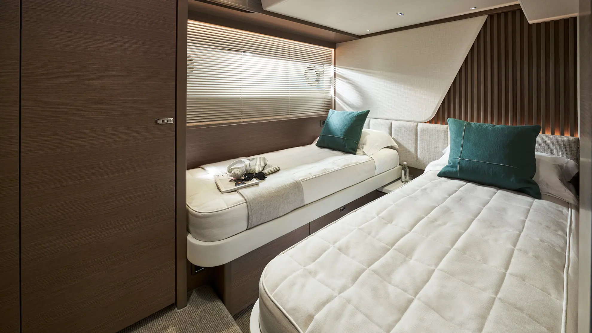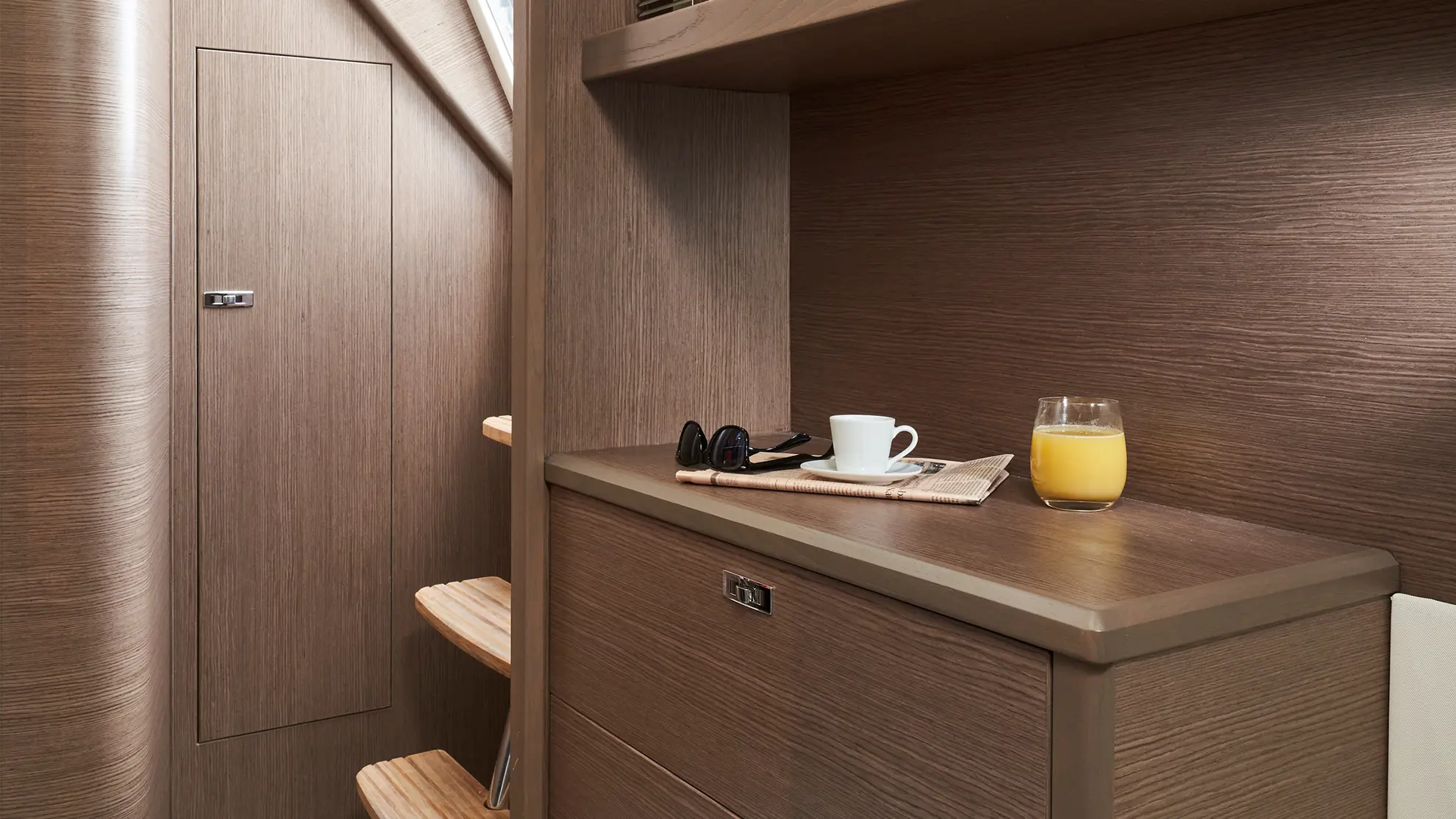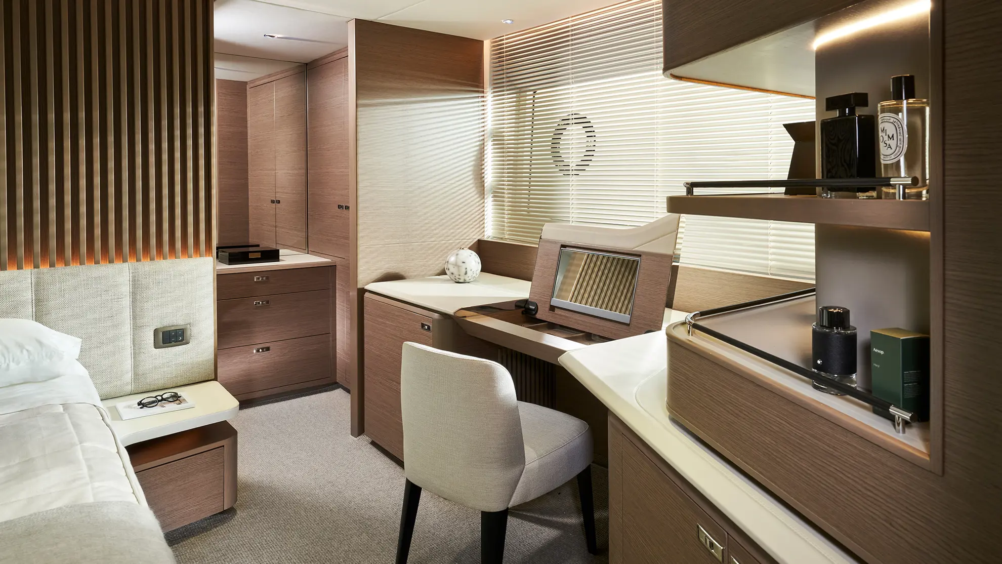 Powered by twin MAN V12 engines, the Y72 boasts impressive speeds, reaching a maximum of 34 knots and a comfortable cruising speed of 26 knots. The inboard engine configuration provides reliability and efficiency, perfect for long-range voyages. The yacht’s spacious layout includes accommodation for up to 8 guests across 4 well-appointed cabins, ensuring each guest experiences the utmost comfort and privacy during their stay. Additionally, the yacht accommodates 2 crew members, ensuring a seamless and personalized service onboard.