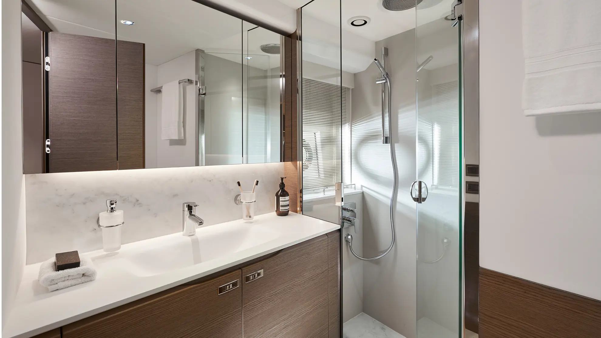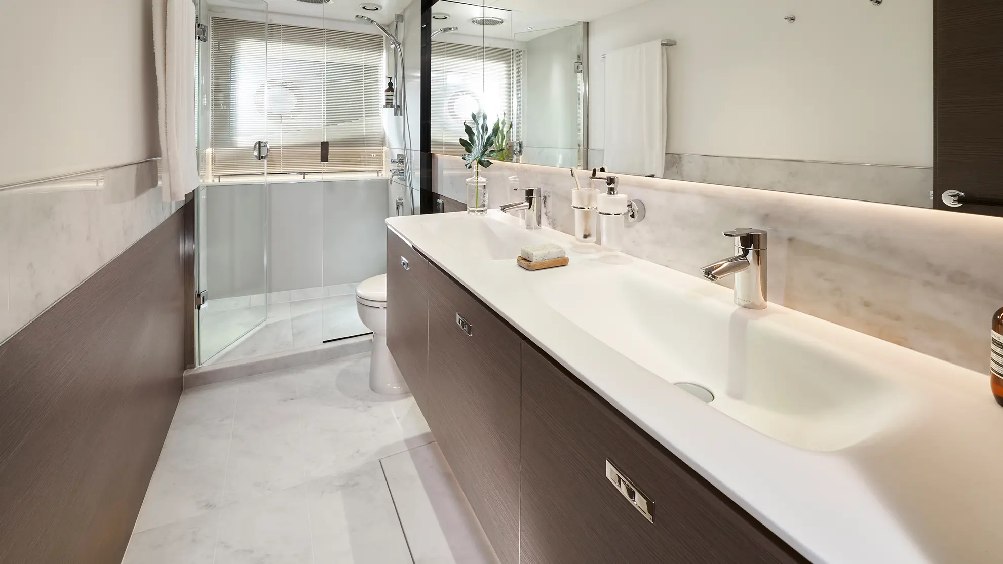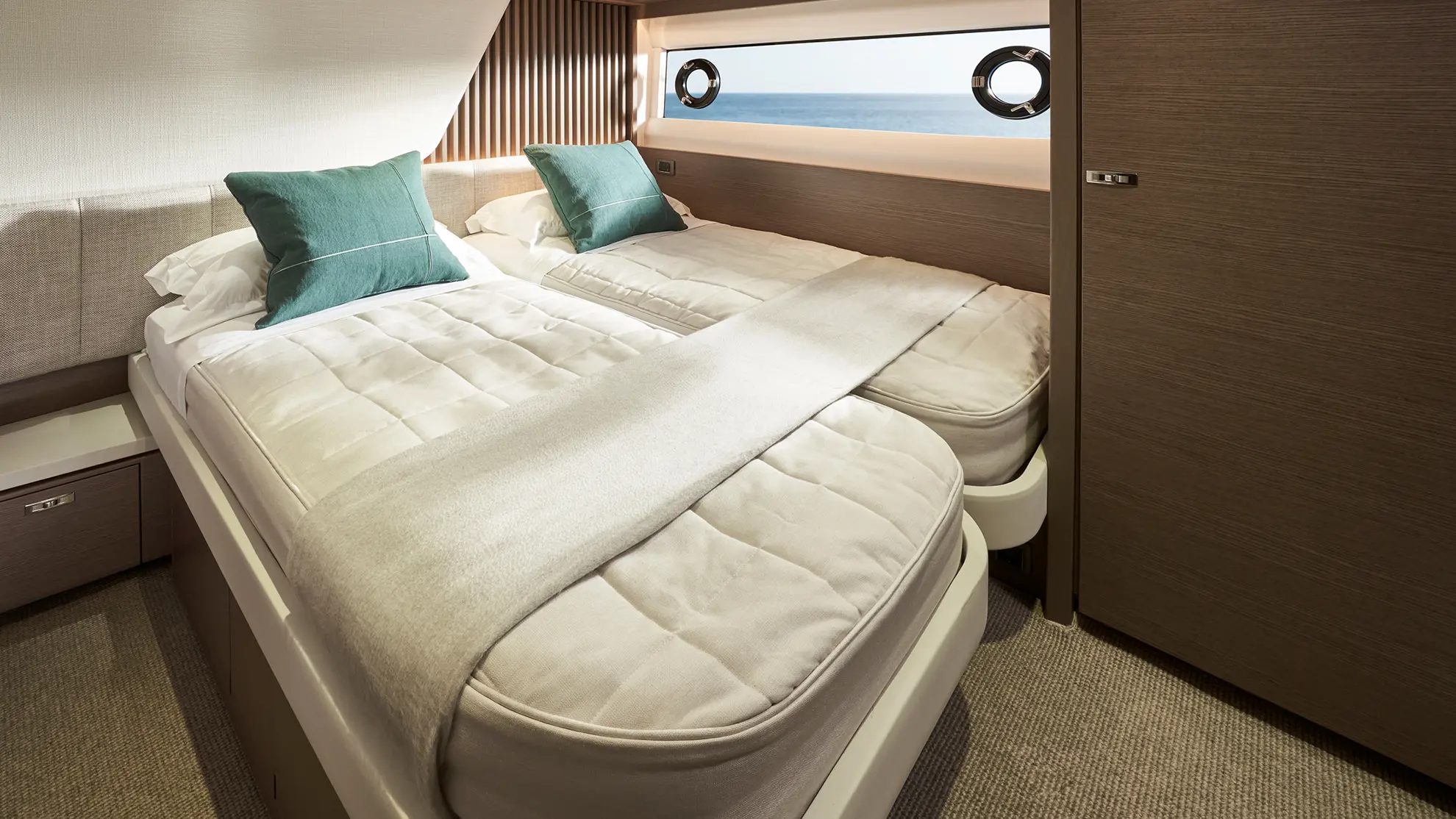 Powered by twin MAN V12 engines, the Y72 boasts impressive speeds, reaching a maximum of 34 knots and a comfortable cruising speed of 26 knots. The inboard engine configuration provides reliability and efficiency, perfect for long-range voyages. The yacht’s spacious layout includes accommodation for up to 8 guests across 4 well-appointed cabins, ensuring each guest experiences the utmost comfort and privacy during their stay. Additionally, the yacht accommodates 2 crew members, ensuring a seamless and personalized service onboard.