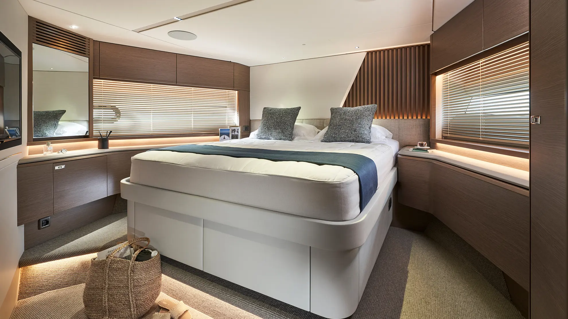 The Princess Y72 represents the pinnacle of modern yacht design, seamlessly blending elegant aesthetics with performance and comfort. Measuring approximately 22 meters, this impressive yacht is crafted with a GRP hull and features a planning hull configuration, ensuring smooth and agile navigation across the seas. The exterior is designed by the renowned Princess in-house team, reflecting the brand’s commitment to sleek and timeless design. Inside, the yacht is a sanctuary of luxury, featuring interiors crafted by the skilled hands of Princess’s design team, known for their attention to detail and use of high-quality materials.
