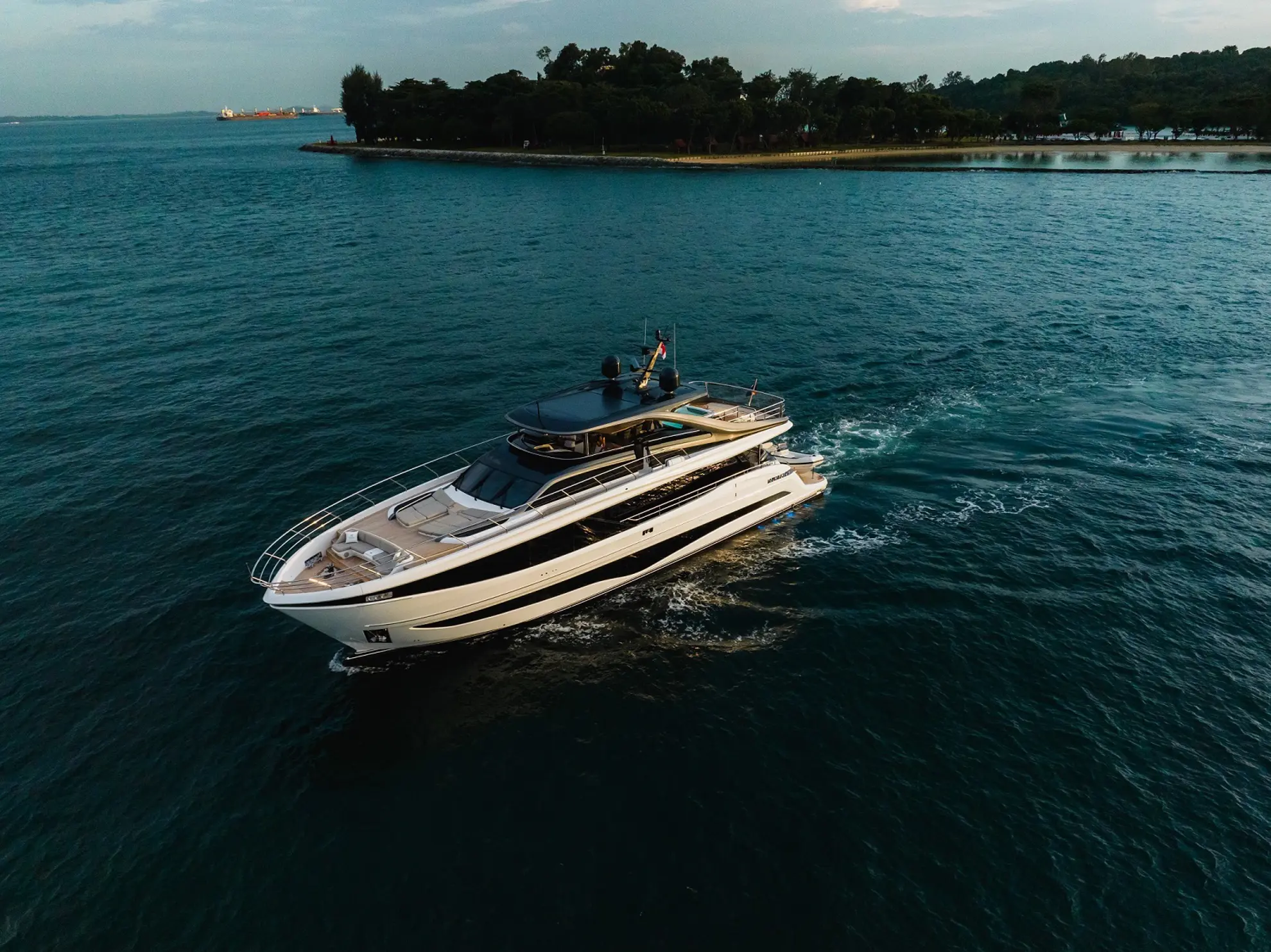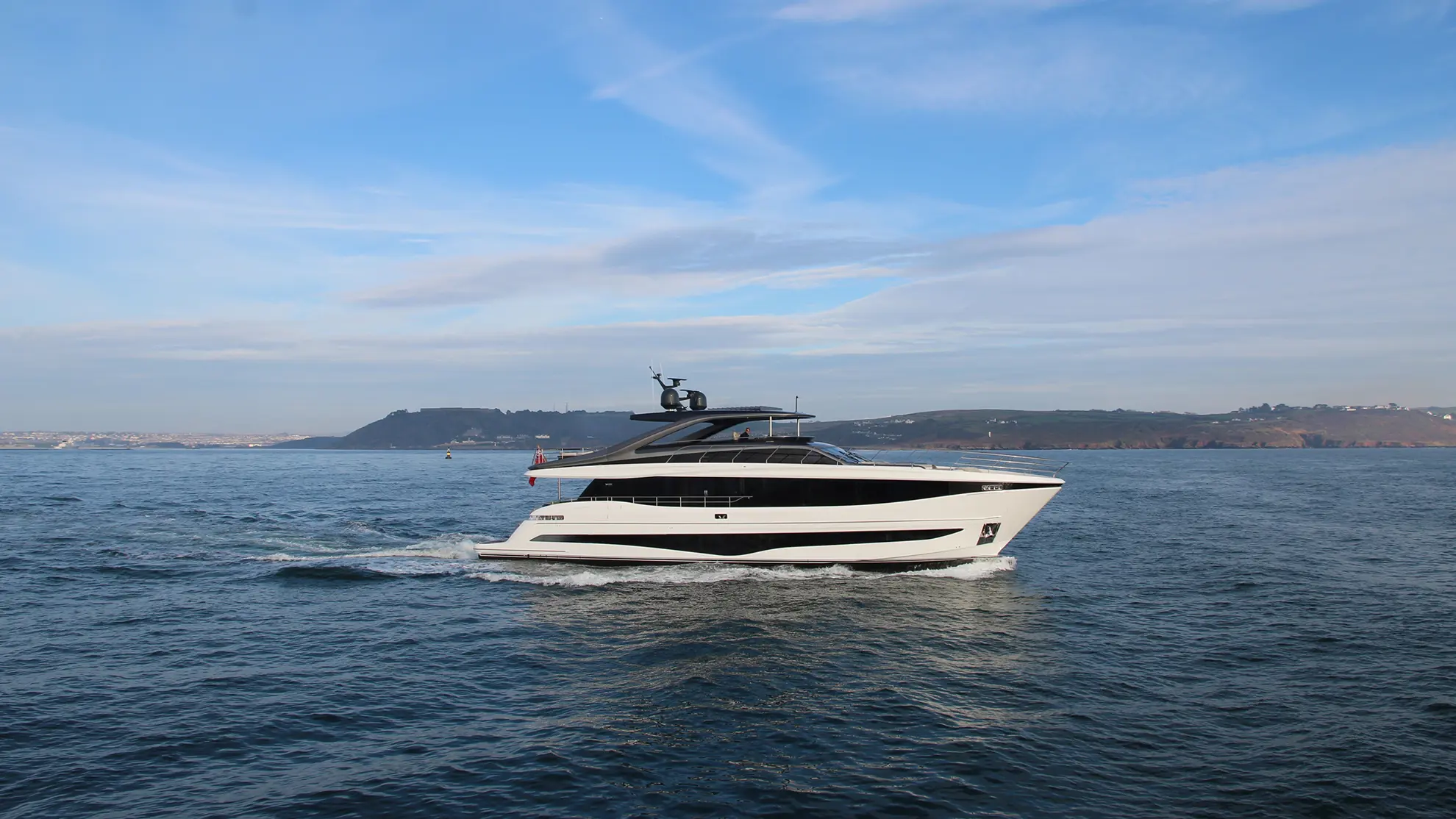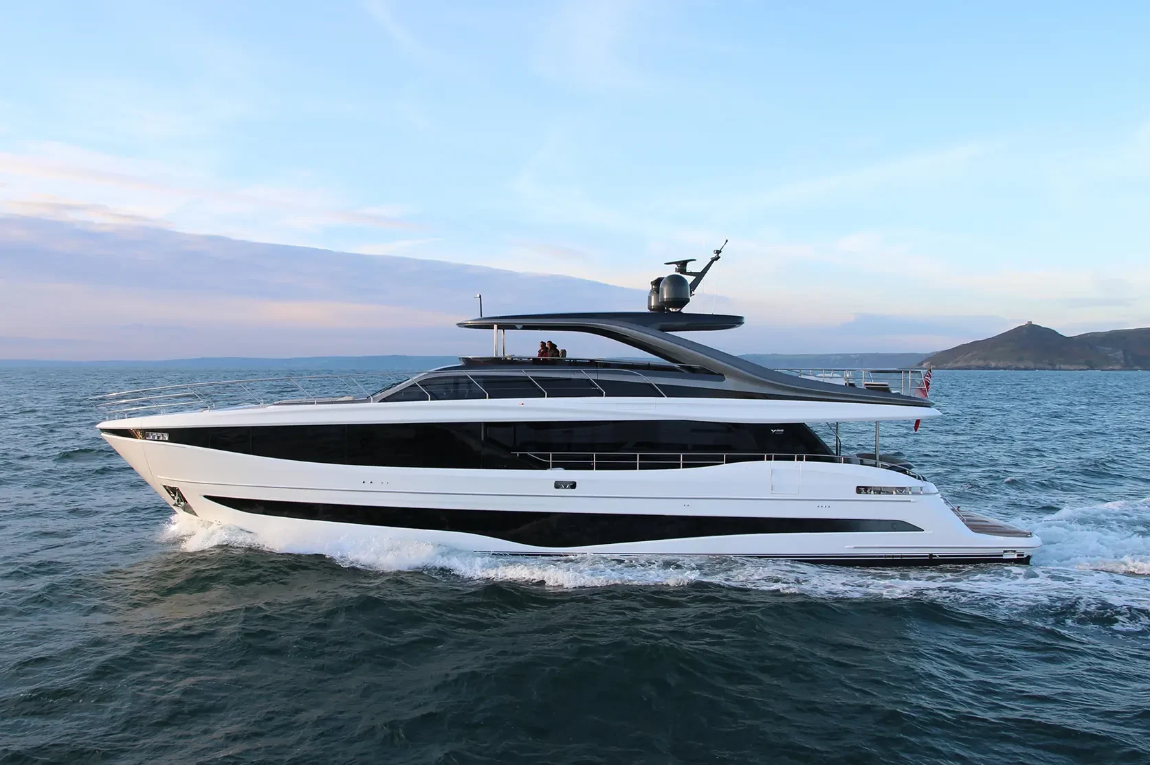 The Princess Y95 is a masterpiece of modern yacht design, epitomizing luxury and performance in every aspect. This flagship model from Princess is meticulously crafted to deliver an exceptional cruising experience. With a length of 29.1 meters, the Y95 offers expansive living spaces, including a spacious flybridge, large aft deck, and a luxurious foredeck seating area. The yacht’s exterior is designed by the renowned Princess Design Studio, showcasing sleek lines and a contemporary aesthetic that stands out in any marina. Inside, the Y95 boasts a sophisticated interior, meticulously crafted by Princess in-house designers, featuring high-quality materials and state-of-the-art amenities. Accommodating up to 10 guests in five lavish cabins, each room offers the utmost in comfort and privacy. The full-beam master suite is a sanctuary of relaxation, complete with a large en-suite bathroom. Powered by twin MAN V12 engines, the Y95 achieves a top speed of approximately 24 knots, while offering a cruising speed of 20 knots. This ensures a smooth and efficient voyage, whether island hopping in the Mediterranean or exploring remote coastlines. The yacht’s advanced engineering and hull design provide stability and performance, enhancing both speed and fuel efficiency. With a range of approximately 1,200 nautical miles, the Princess Y95 is equipped for long-distance voyages. The attention to detail in every element of the Y95 underscores Princess’s commitment to crafting yachts of excellence, making it a prime choice for those who demand the best.
